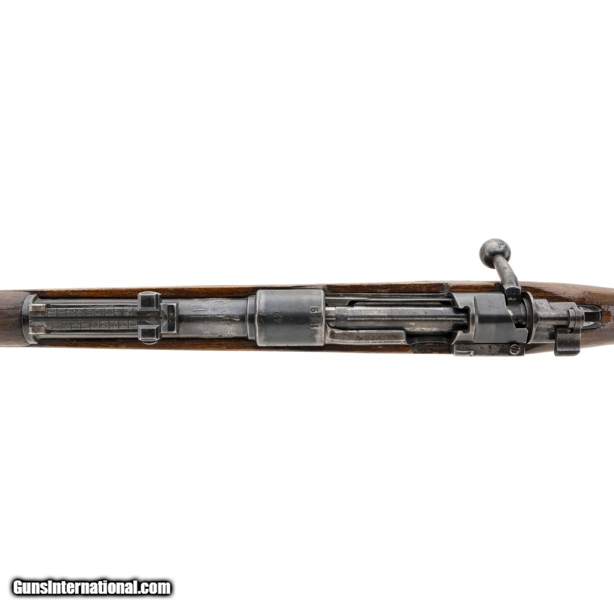 Description: " Serial No. 1275, chambered in 8mm circa 1939, serial numbers are non-matching. WWI forward barrel band is noted on the rifle. Bore is good with bright and shiny rifling noted. Wood has heavy varnish applied. Receiver and barrel show signs of partial Waffenamt removalĀ SOLD Curio/Relic: Yes |