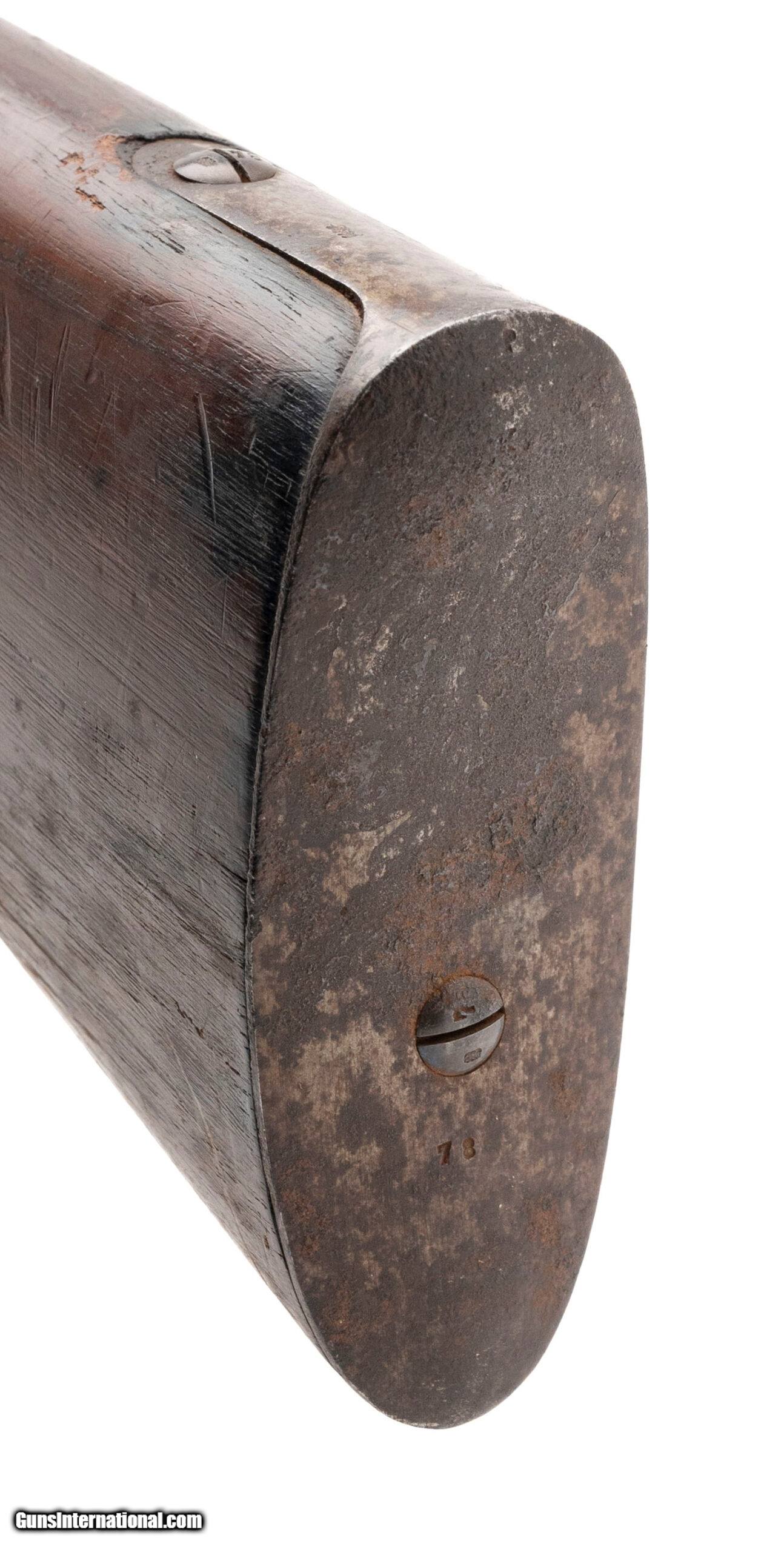 Description: "Serial No. 7478, manufactured in 1888 by Spandau Arsenal, 11mm, 31½" round barrel. Barrel finish is thinning to a smooth grey patina with scattered light oxidation visible. Receiver has turned to a light grey patina, and factory markings remain sharp and legible. Serial numbers are matching throughout.Stock displays light handling marks consistent with age and service. Action is smooth and functions correctly. A well-preserved example of the Mauser Model 1871/84, the last black-powder repeating rifle issued to the Imperial German Army, marking the transition toward the smokeless powder era. Curio/Relic: Yes Price: $1,295.00 Contact Seller |