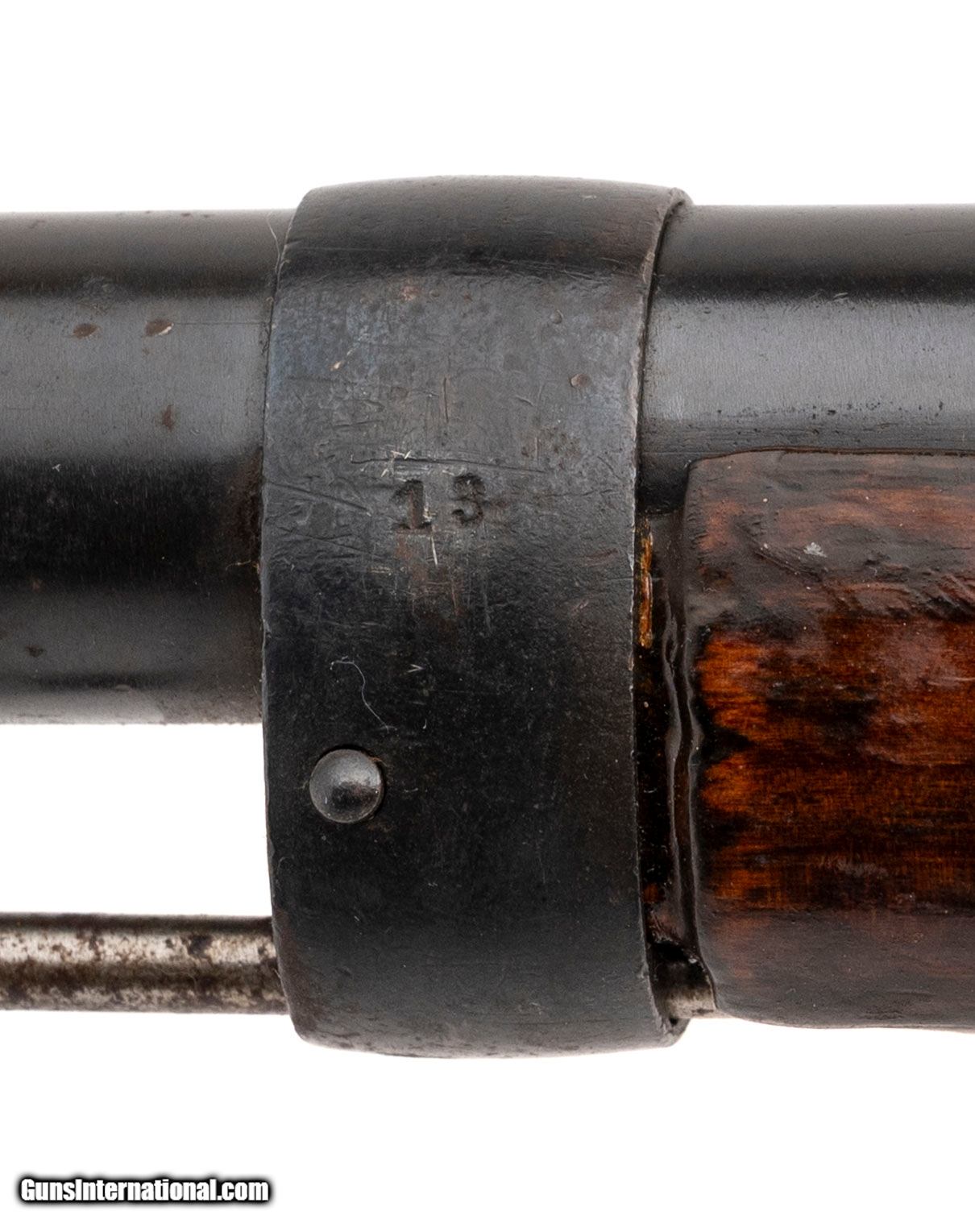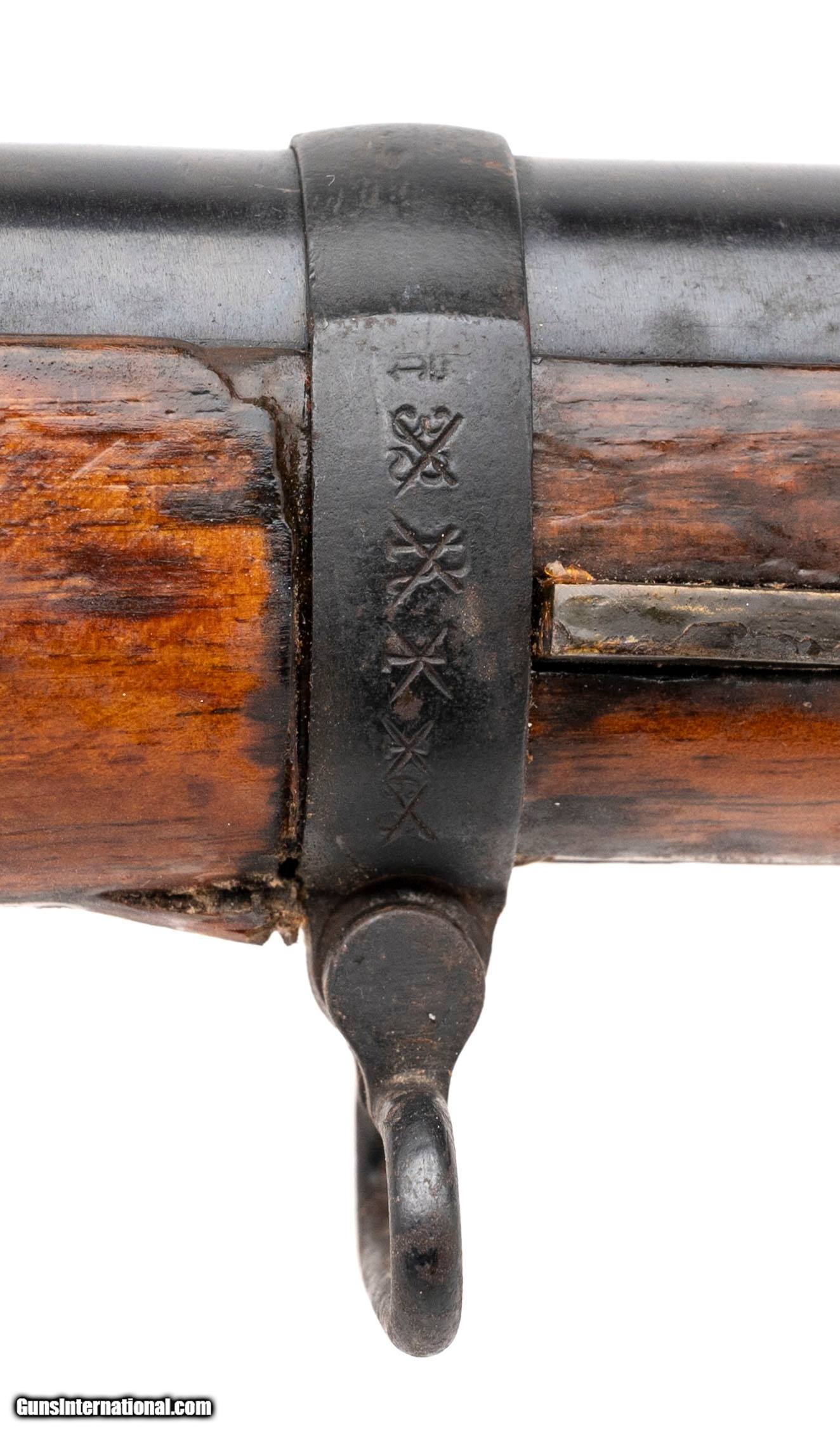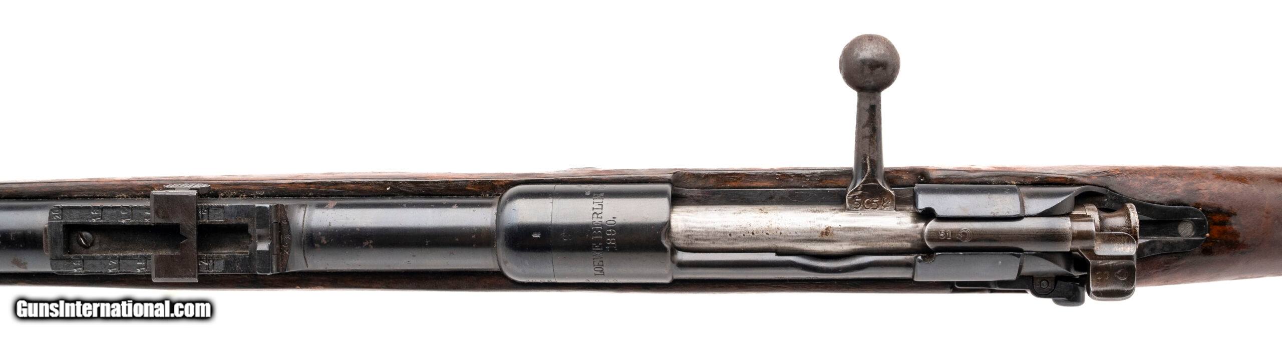Description: "Serial No. 3002, manufactured in 1890, chambered in 8mm with a 29½" round barrel. The bore remains bright with light frosting in the grooves, and the rifling is strong. Serial numbers are non-matching, and the bolt bears a Turkish crest, indicating later service outside Imperial Germany. The stock shows expected handling and service wear and has had a light coat of varnish applied. Unit markings on the barrel band have been “X" out, consistent with later reissue or transfer. Overall presentation is honest and well-used. Action is smooth and functions correctly. SOLD Antique: Yes |