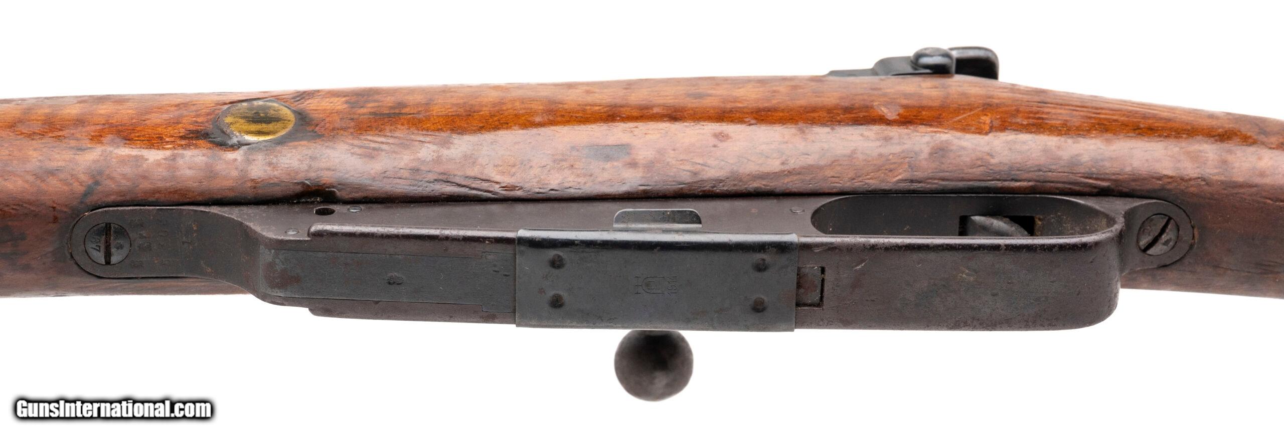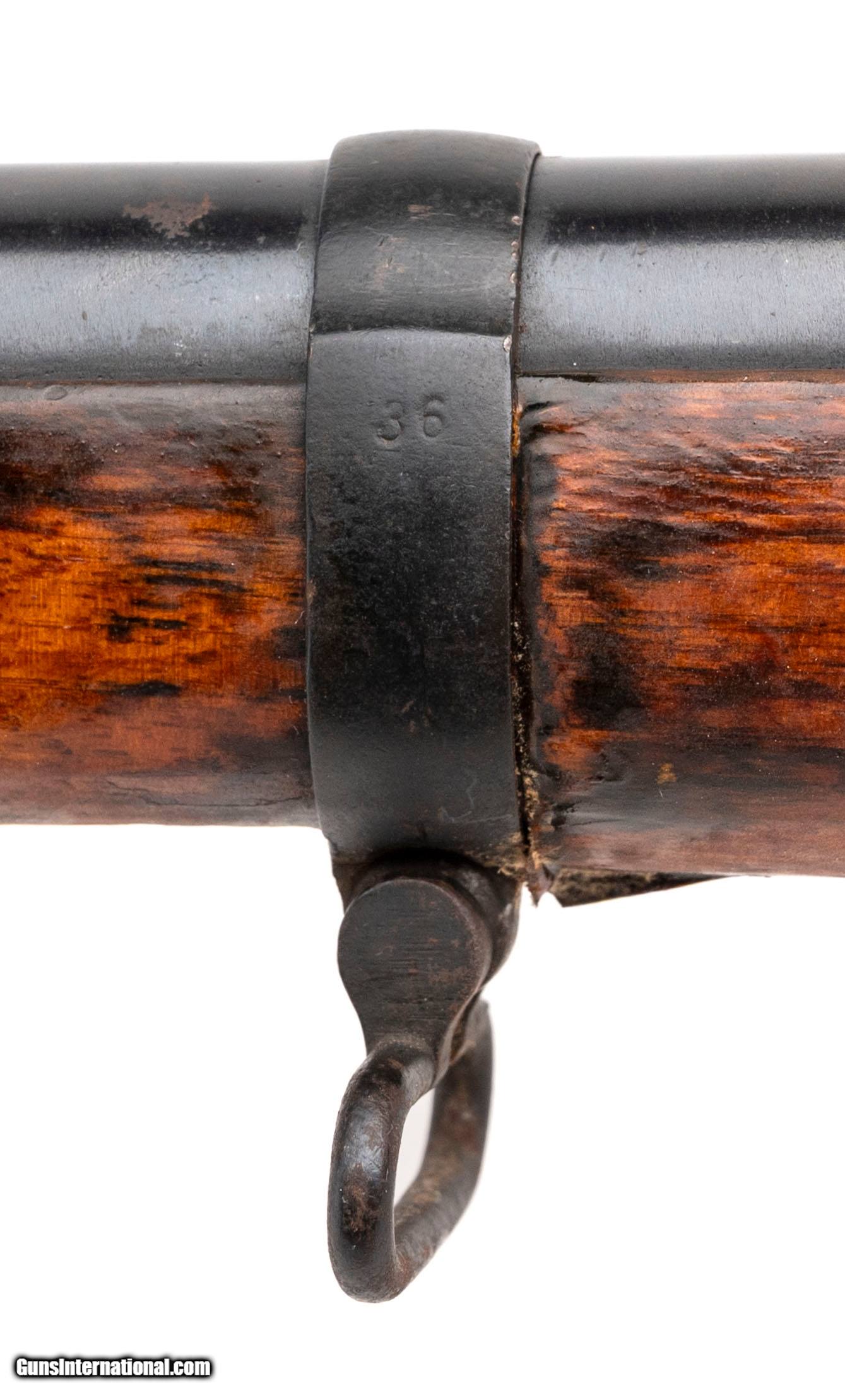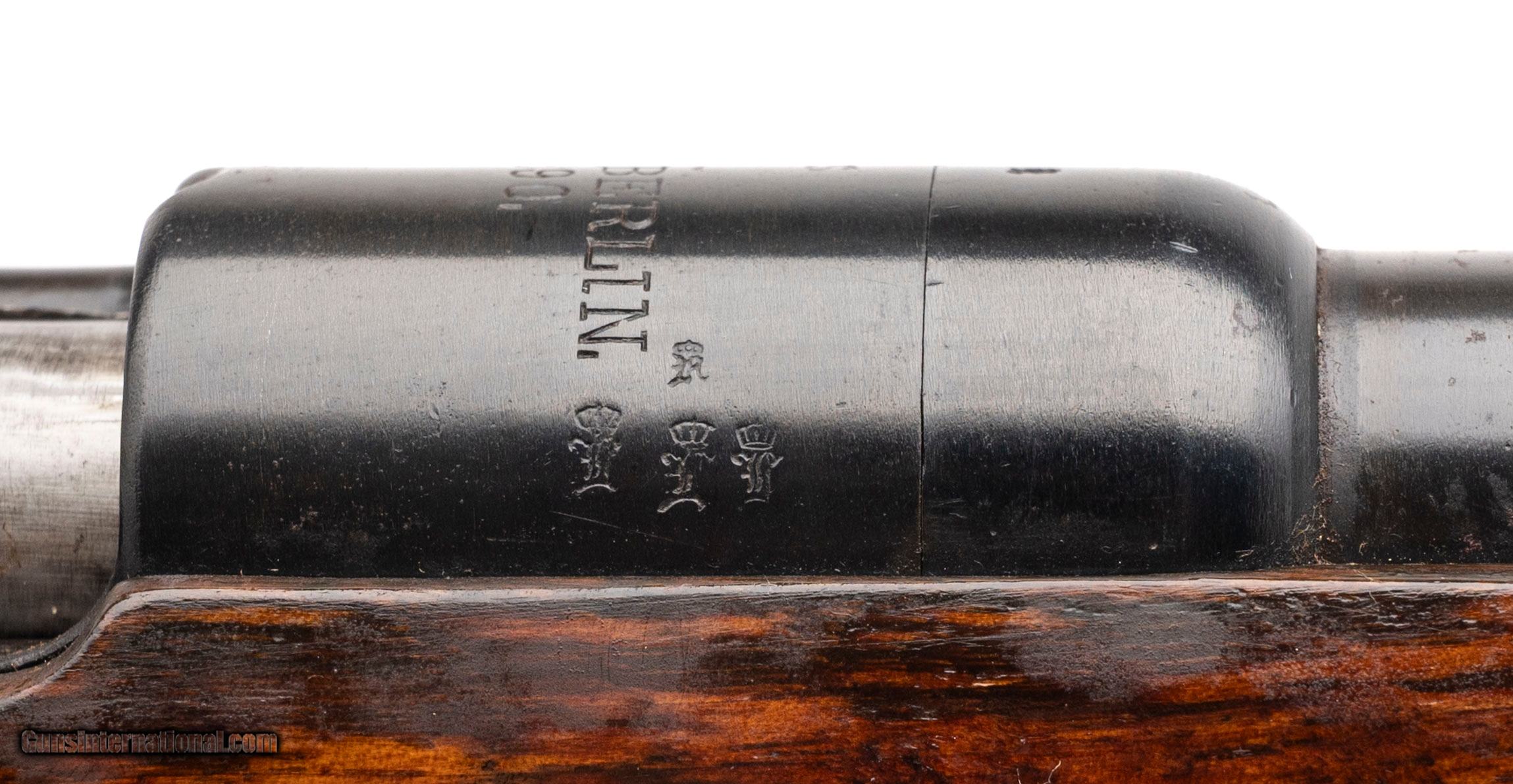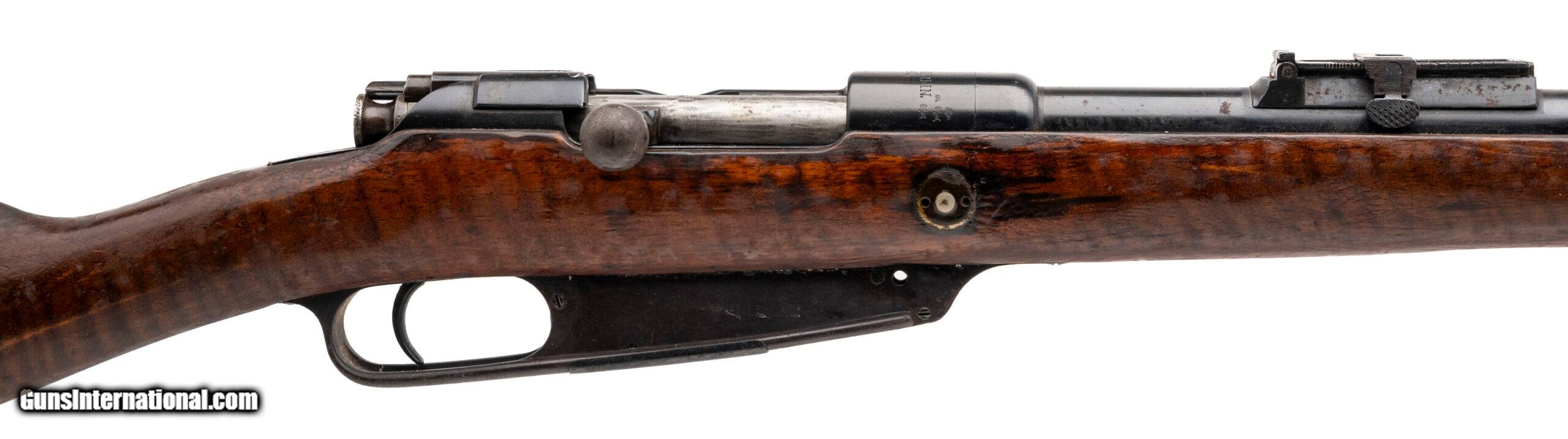 Description: "Serial No. 3002, manufactured in 1890, chambered in 8mm with a 29½" round barrel. The bore remains bright with light frosting in the grooves, and the rifling is strong. Serial numbers are non-matching, and the bolt bears a Turkish crest, indicating later service outside Imperial Germany. The stock shows expected handling and service wear and has had a light coat of varnish applied. Unit markings on the barrel band have been “X" out, consistent with later reissue or transfer. Overall presentation is honest and well-used. Action is smooth and functions correctly. SOLD Antique: Yes |