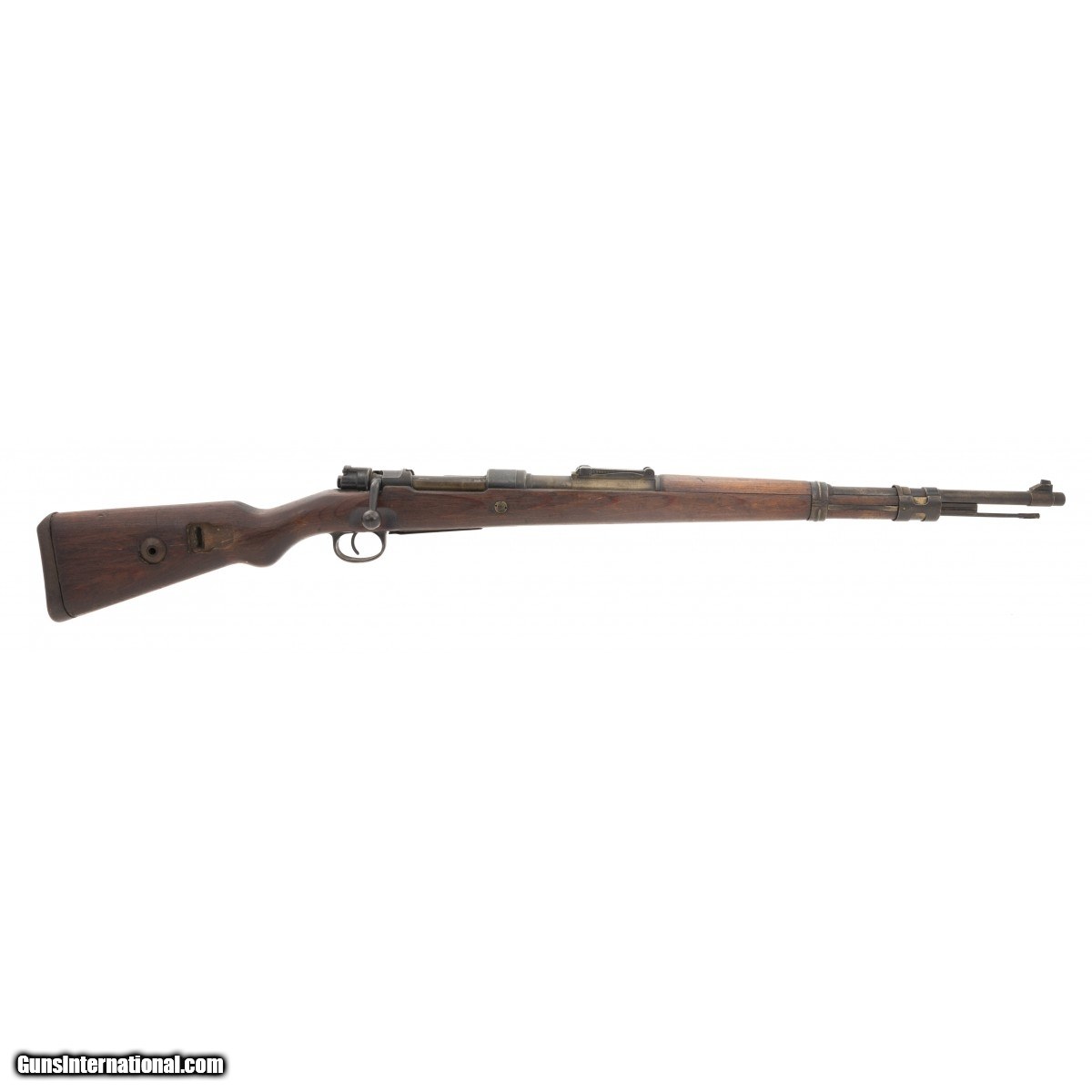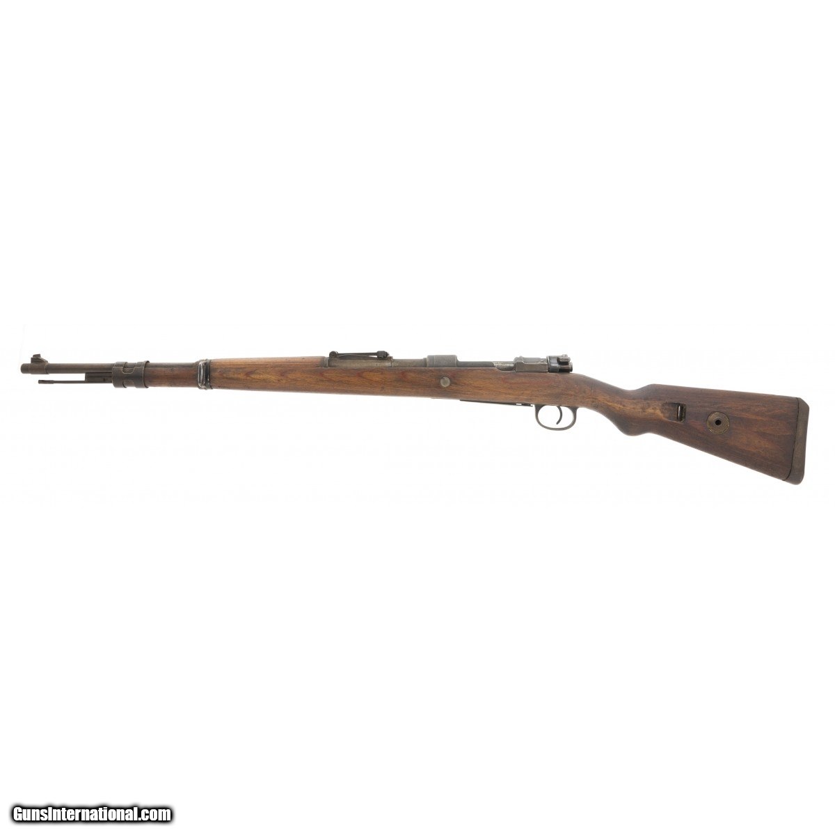 Description: " WWII German K98. DOU code 1943 dated receiver. Serial numbers are non-matching. Bore is excellent. Metal has a thinning blue turning to a brown patina. Good overall condition. A popular military rifle. SOLD |