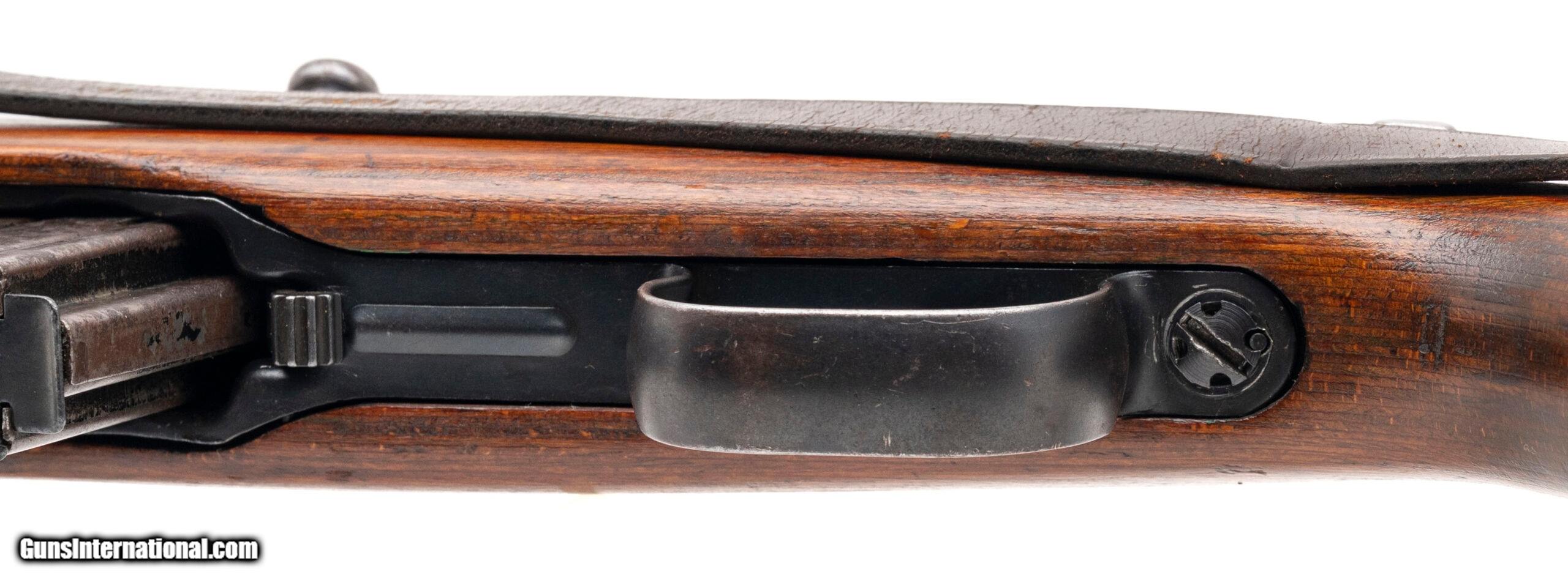 Description: "SN: 6190C Made in 1944. German issued sami-auto 8mm rifle with a 22"" threaded barrel, laminated wood stock, detachable 10 round magazine and original leather sling. All numbered metal parts match and the stock is also numbered to the gun with 6190 visible on the bottom. Overall in very good condition. Dallas Location SOLD Curio/Relic: Yes |