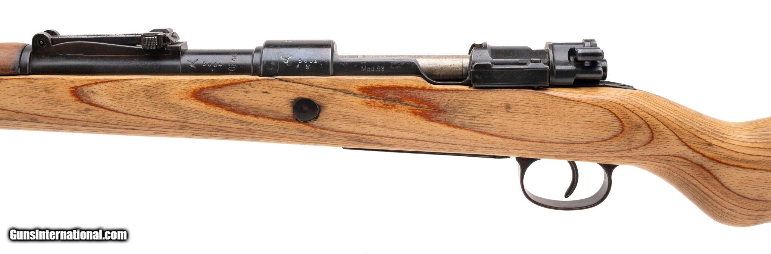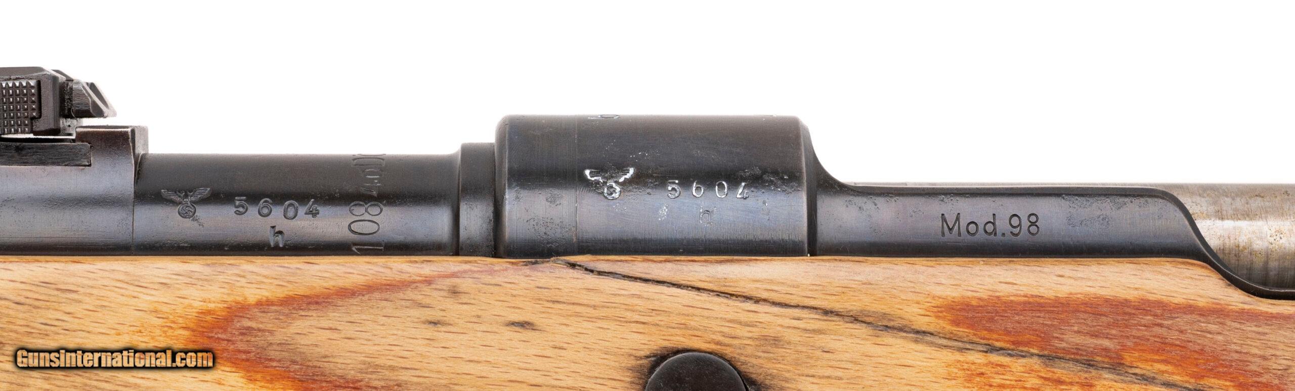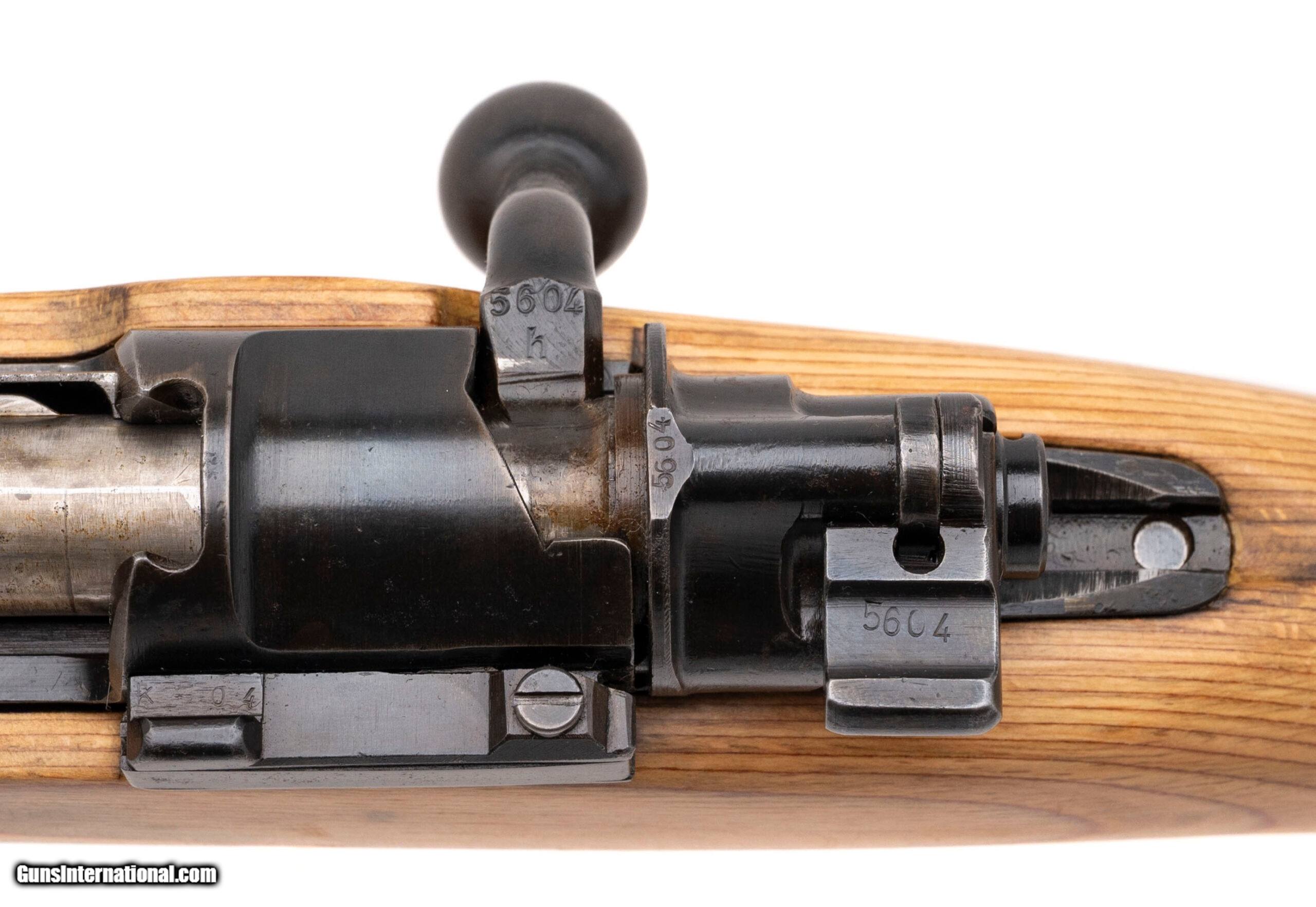 Description: "Serial No. 5604h, manufactured in 1941, chambered in 8mm with a 24"" round barrel. This rifle has been l refurbished and remains in very good overall condition, with matching serial numbers throughout and waffenamts present. Approximately 95% of the reblued finish remains, giving the metal a clean and uniform appearance. The stock is likewise excellent, having been sanded, showing only faint waffenamts and minimal handling wear. Action is smooth and functions correctly. A very attractive example of a 1941-coded bcd K98. Curio/Relic: Yes Price: $1,395.00 Contact Seller |