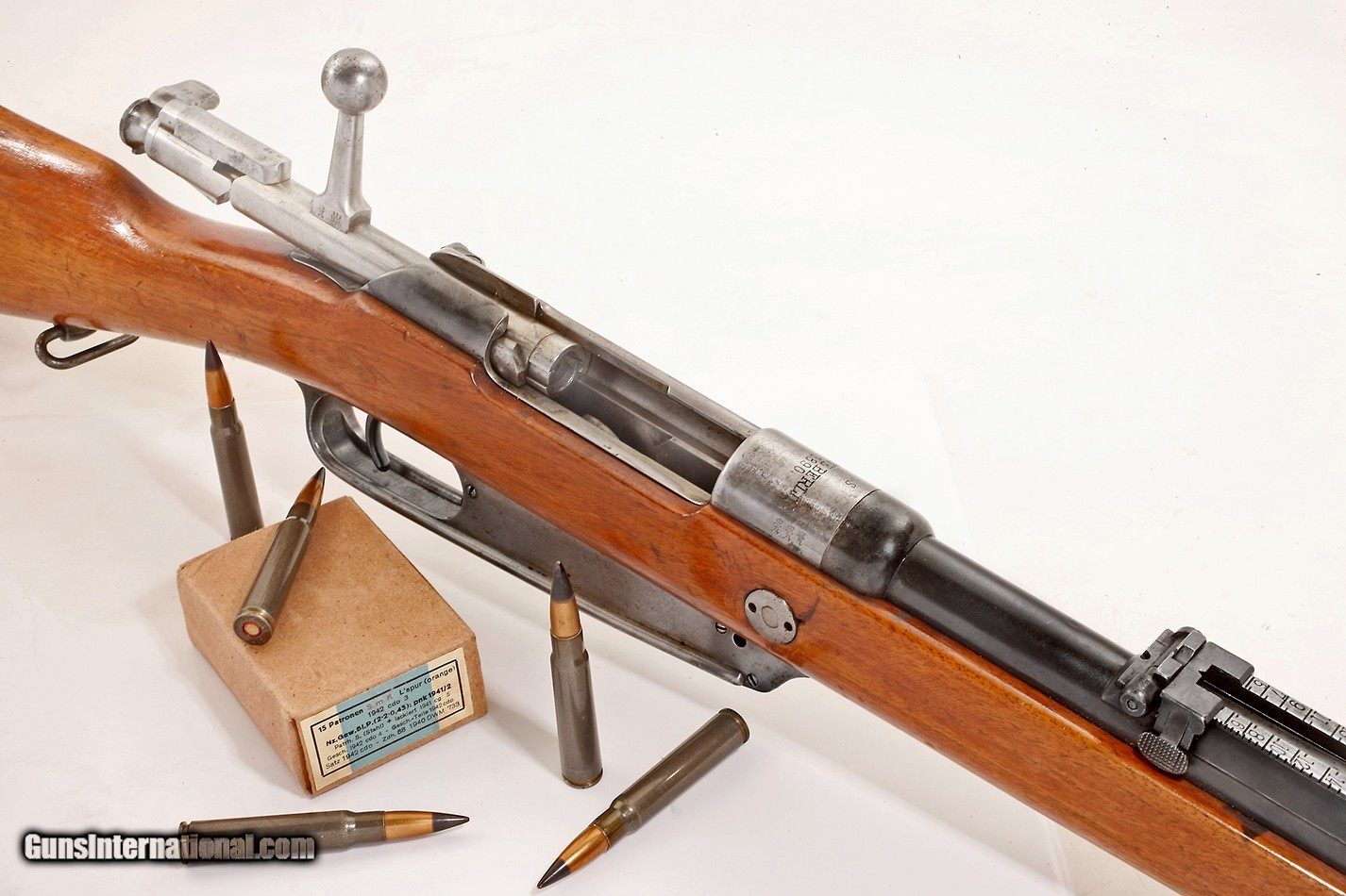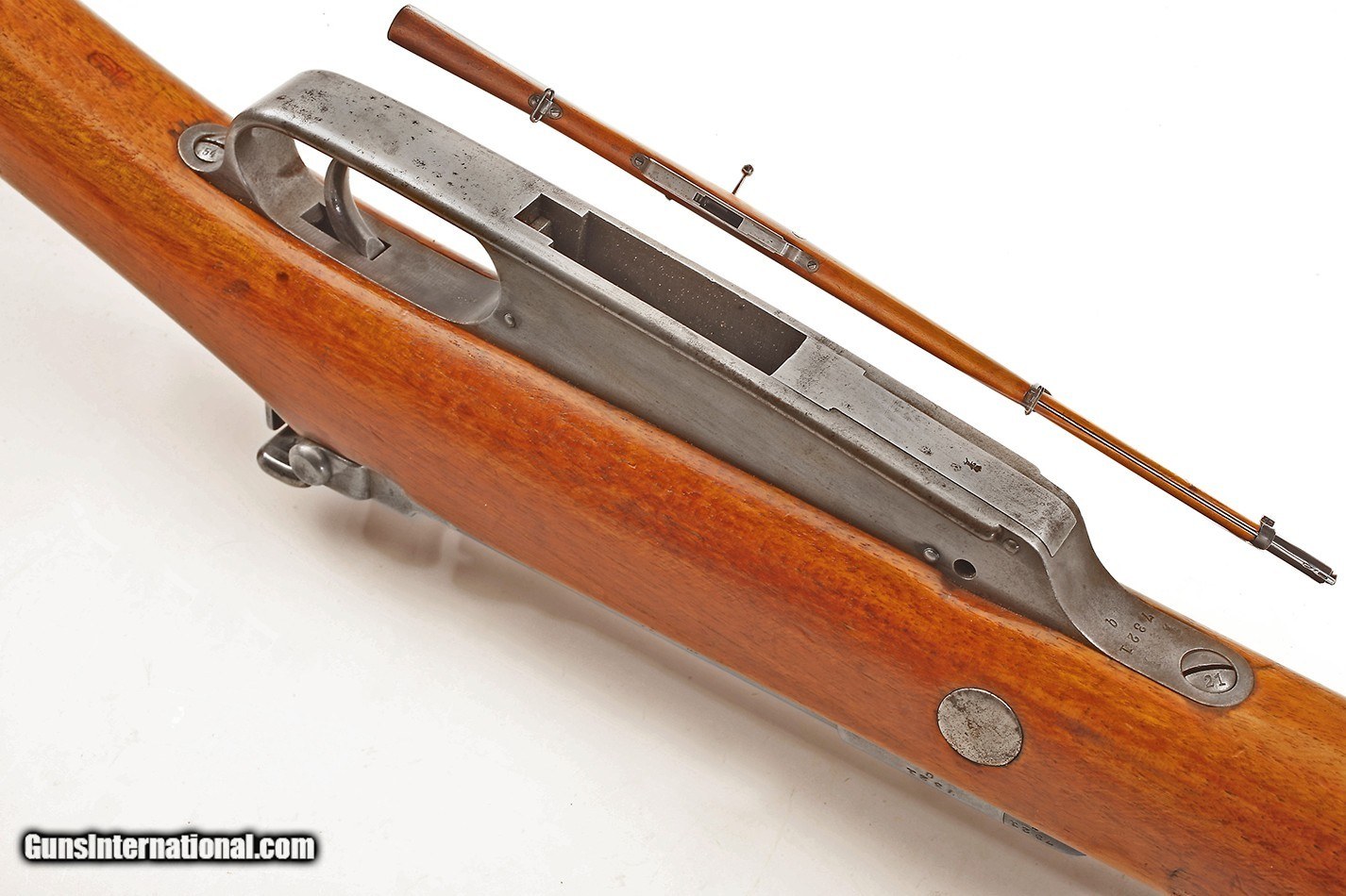 Description: I'm selling my collection. Here is an Antique Commissioned Gewehr Model1888 manufactured in 1890 by the famous Imperial factory Loewe Berlin. Antique no FFL required. It’s chambered in 7.92mmx57 caliber Mauser modified for the new "S" bullet (stands for spitzer). With all the military Imperial approval & acceptance markings, issued regiment "17 B" marked on the butt plate. Found in good condition: bore is shinning good with sharp rifling. Serial numbers "7321" are'nt matching as usual on these Gew 88 served in so many conflicts. Original cleaning rod. The wood of the stock shows a good use. The original factory blue finish rates 65-70% turning patina with some pin pricked erosion, small dents on the shroud all visible on the pictures and are accuratly photographed. The action is firm and smooth. Those are fun to shoot and very accurate with its 30" shrouded barrel with available proper reloads. Old ammunitions on one of the picture are Not for sale. I haven't shot this one. What is not written on the description would be on the pictures. I described it to the best of my knowledge. Please don't ask for extra pictures. Buyer is responsible for knowing all laws pertaining to this transaction. $795 + $75 insured shipping to your door if you are over 21, payable by cashier check, P.M.O or credit card. Please have look on my other antique pieces. Thank you. SOLD Antique: Yes Rifle Caliber: 7.92x57mm Mauser |