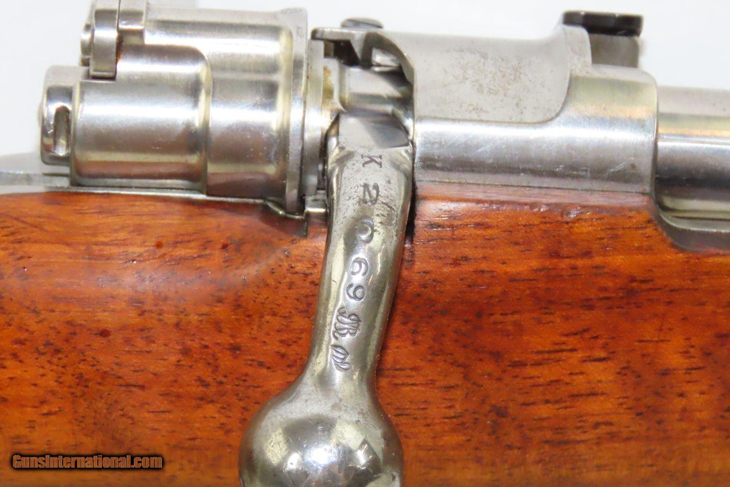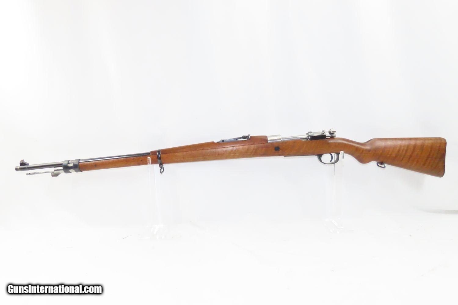 Description: DMW ARGENTINE Contract Model 1909 7.65 Cal. Bolt Action INFANTRY RIFLE C&R Military Rifle Produced in Berlin with BAYONET & SCABBARD! Here we present a C&R DMW Argentine Contract Model 1909 Mauser Rifle manufactured at Deutsche Waffen und Munitionsfabriken, or DMW, circa the 1930s in Berlin, Germany. There were approximately 285,000 of these rifles produced between Germany and Argentina over the production run of 1909 through 1959. The Argentine Mauser Model 1909s were Gewehr 98 pattern bolt-action battle rifles designed for the Argentine Army. They were produced both in Germany and in Argentina. The M1909 was also able to use the bayonet of the Mauser 1891 it replaced. The main producer in Germany was Deutsche Waffen und Munitionsfabriken that delivered 200,000 rifles while around 85,000 rifles were manufactured by the Fabrica Militar de Armas Portatiles, governmental plants in Rosario and Santa Fe, Argentina. The Model 1909s were replaced by FN FALs without having seen combat The overall condition is fine. Excellent action. Bright bore. The stock is nicely grained with little wear. Original finish on barrel and receiver is still in the white! Numbers match on the rifle, but the bayonet is numbered differently. Sharp, clear markings. Argentine marked bayonet and crest on the receiver. This firearm is classified as a Curio & Relic. Barrel is 29-1/2 inches. Caliber: 7.65mm Argentine Overall condition as seen in photos. Very Fast. Very Safe. FREE SHIPPING. Will need to be sent to your local FFL or C&R licensee. This firearm is classified as a Curio & Relic. Guaranteed AUTHENTIC & Includes CERTIFICATE OF AUTHENTICITY. ancestryguns $1425 #210211 SOLD Curio/Relic: Yes |