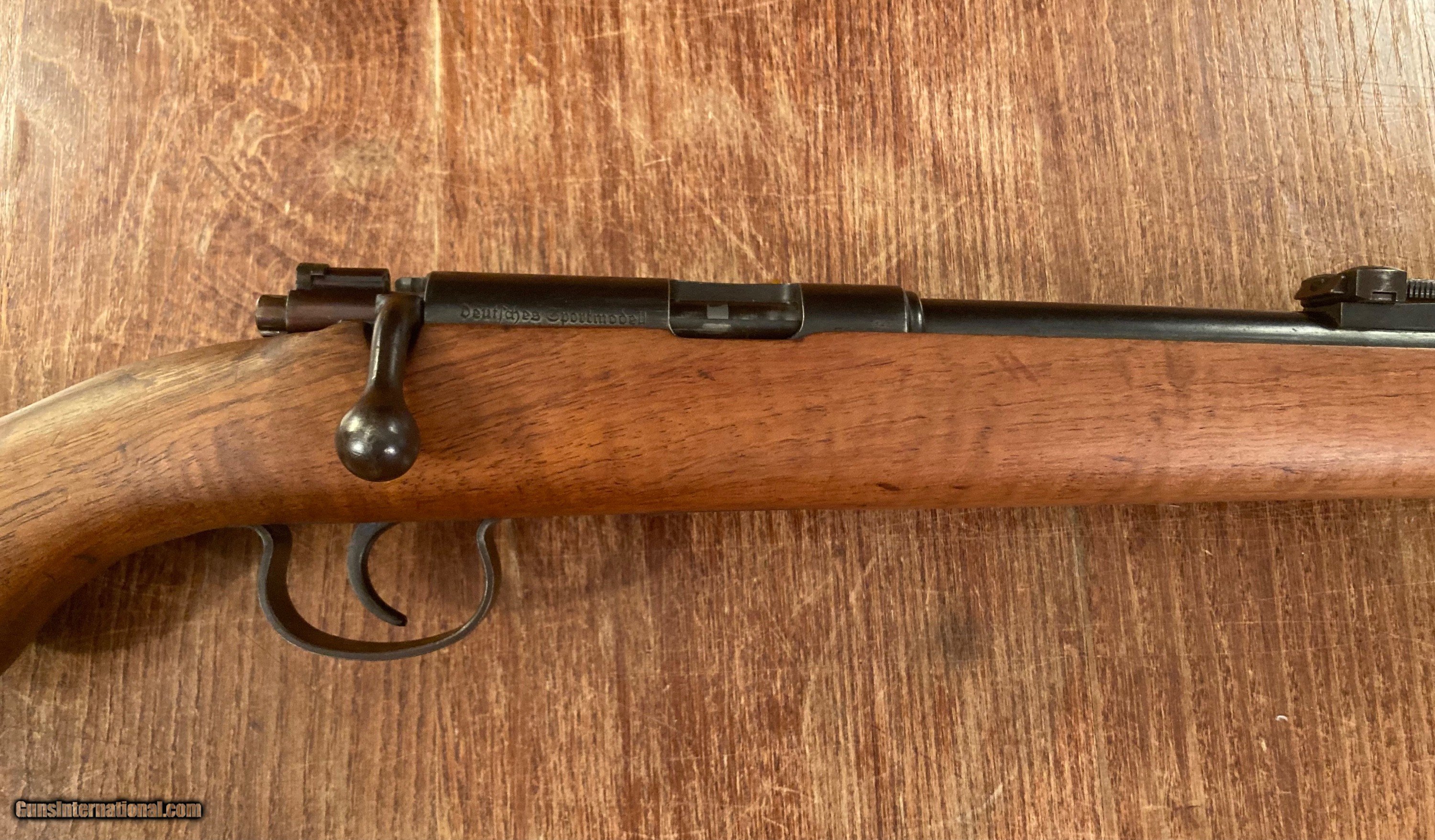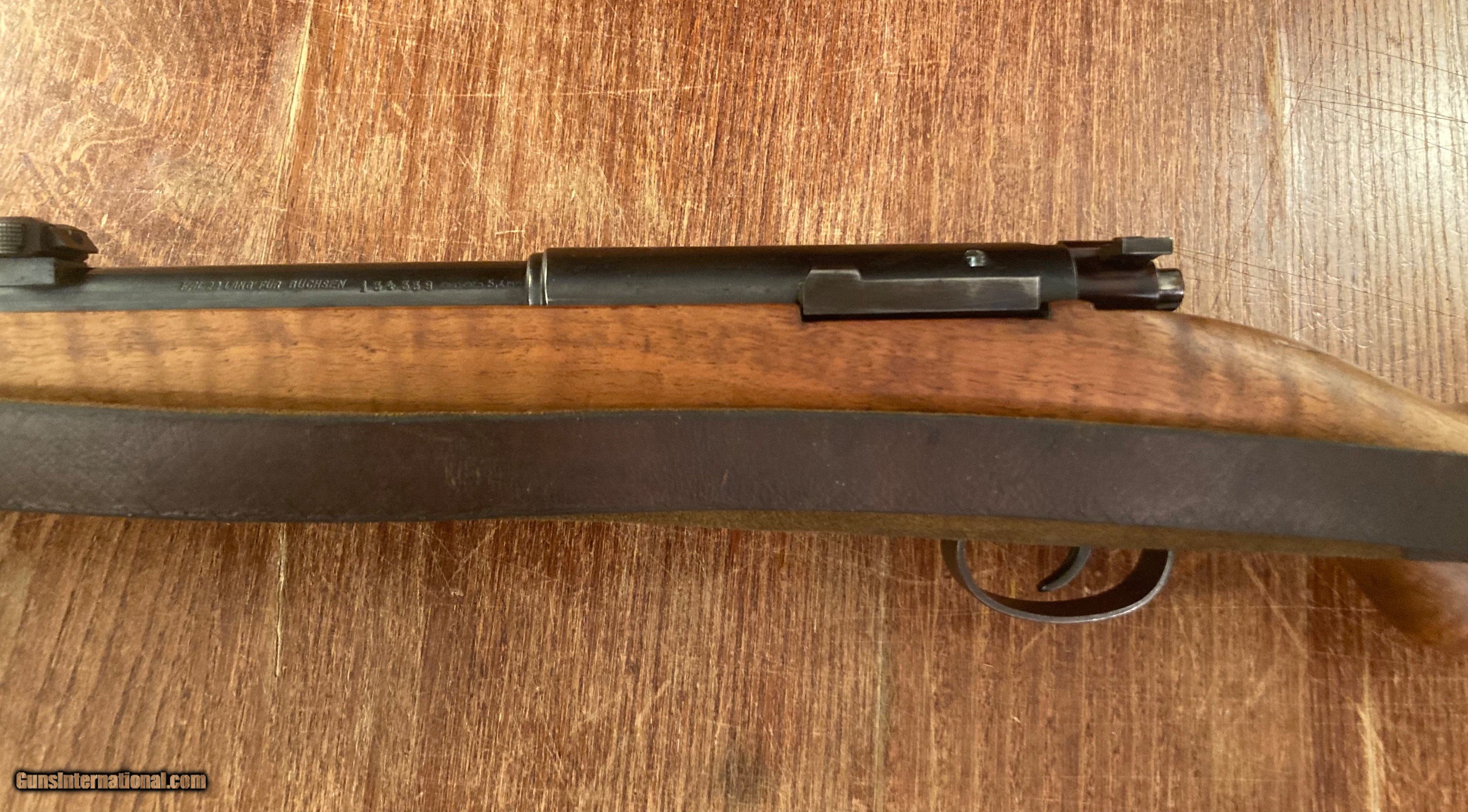 Description: Early pre-war SA used Walther K98 . 22 caliber trainer or youth training rifle. This rifle is marked for the Thuringen SA group. These were used both pre war time and during WWII to train the German youth on the K98 frame. Smaller caliber to cut costs and make shooting easier on the Hitler youth. Sports model. This is NOT a sporterized version. This is an original gun circa 1930's in very fine condition with finish, bore and wood in outstanding condition. Scarce original sling. See photos as part of the description. This is a special gun for the special collector so we will always entertain trade options and offers. Requires CR or FFL. Glad to send more photos on request. Ships for $60 Drop a note or call with questions. Matt (214) 957-7574 SOLD Curio/Relic: Yes Manufacturer: Walther Model: Sportsmodel |