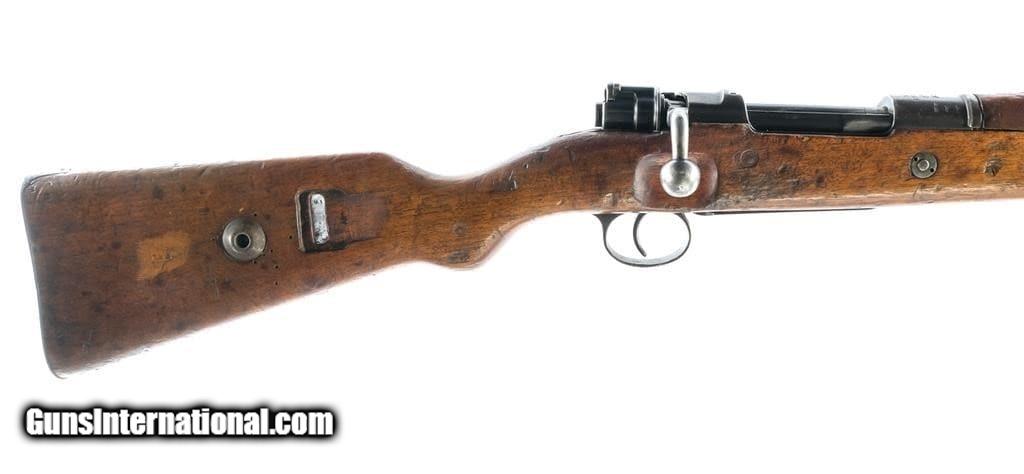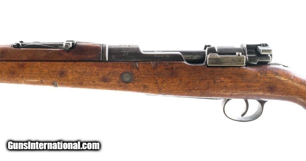 Description: Guns Listing ID: 880820 Description UPDATE: The right side of the stock has a crack in the top wood barrel cover, serial number 1668. Erfurt Karabiner 98 in 8mm with a five round capacity and a 24\" barrel. Metal butt plate. Smooth wood stock with metal ring to take firing pin out of bolt. Blued trigger guard, trigger, bolt, receiver and barrel. Rear bolt safety switch. Rear left side of receiver bolt release. Under barrel fixed bayonet lug and stacking prog. Rear flip up adjustable and front fixed blade sight. Receiver marked 1916 then restamped later 1920. Must ship to a C&R or FFL holder. Condition: Good with finish wear/loss, scratches, wood dings and handling wear. The rifled bore has rust with strong visible rifling. Barrel Length: 24\" Serial: 1668 Manufacturer: Erfurt Germany Year: 1920 Caliber: 8mm Model: Kar 98 SOLD Manufacturer: ERFURT Model: KAR 98 Caliber Info: 8MM Condition: Used - Non-Certified Barrels: 24 BARREL Finish: WOOD |