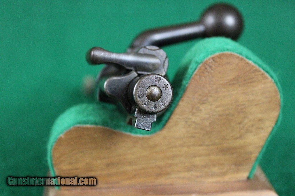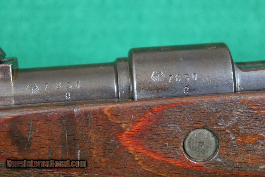 Description: For Sale a pre-war Mauser Borsigwalde manufactured K98 with receiver code 243 from 1939. Straight up bolt mismatch of an early K98, probably made in the Spring before the start of the war. The bolt is number matching to itself and is an early Mauser Oberndorf bolt with e/63 proofs. Kind of interesting the cocking piece is number matching but is marked S/42, probably an early armorer replacement. Rifle has a really nice look to it, screws aren’t buggered, everything that should be numbered and proofed is down to the locking screws. The bandspring is e/26 proofed but not numbered which I believe turns up with Borsigwalde rifles in 1939. Rifle is duffel cut, it’s completely hidden by the rear band and is tight when assembled, no wiggle on the fore piece, and wood color matches the stock nicely. Note when the soldier duffel cut the rifle he cut really close to the rod nut, it was loose when I got the rifle, I added a spot of glue to hold in place. Stock has seen use but all proofs are present, unsanded, and internal has raw wood with both handguard and barrel channel serialed. Not cut for front site hood and cleaning rod is a correct 10” one, it is marked “K” but no number I can see. Borsigwalde was a satellite plant started by Mauser Oberndorf to handle the ramp up in K98 production during the 30’s, rifle is a great example of a pre-war gun. Rifle is not import marked and comes with a 3-day non-firing inspection period. Rifle must ship to FFL or FFL C&R. I will ship to CA with proper transfer. Know your local gun laws and make sure you can receive the rifle before purchasing. Shipping is $40 SOLD Curio/Relic: Yes |