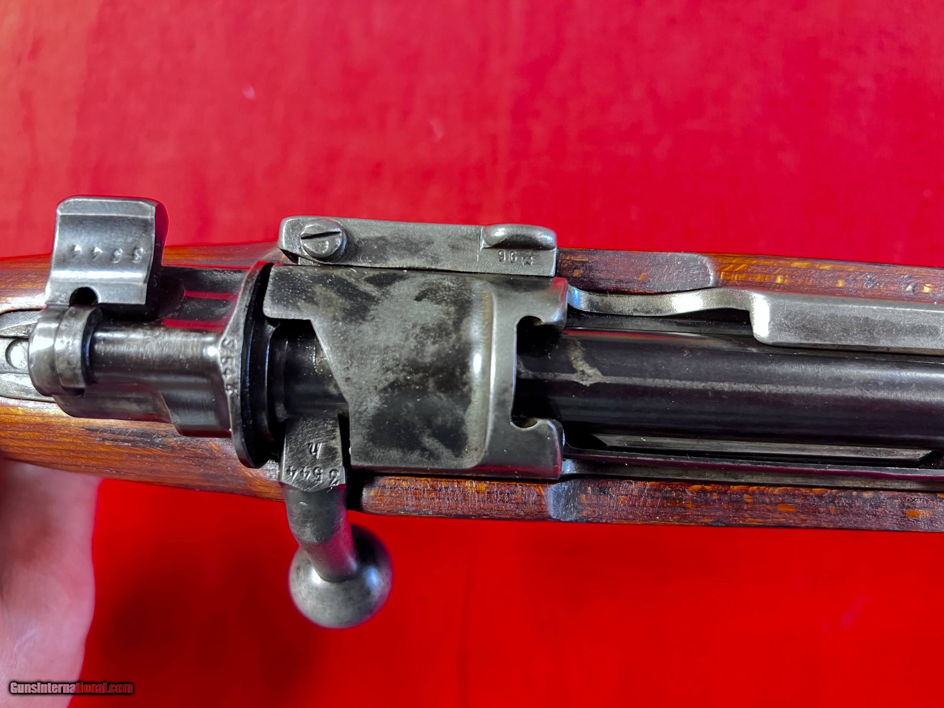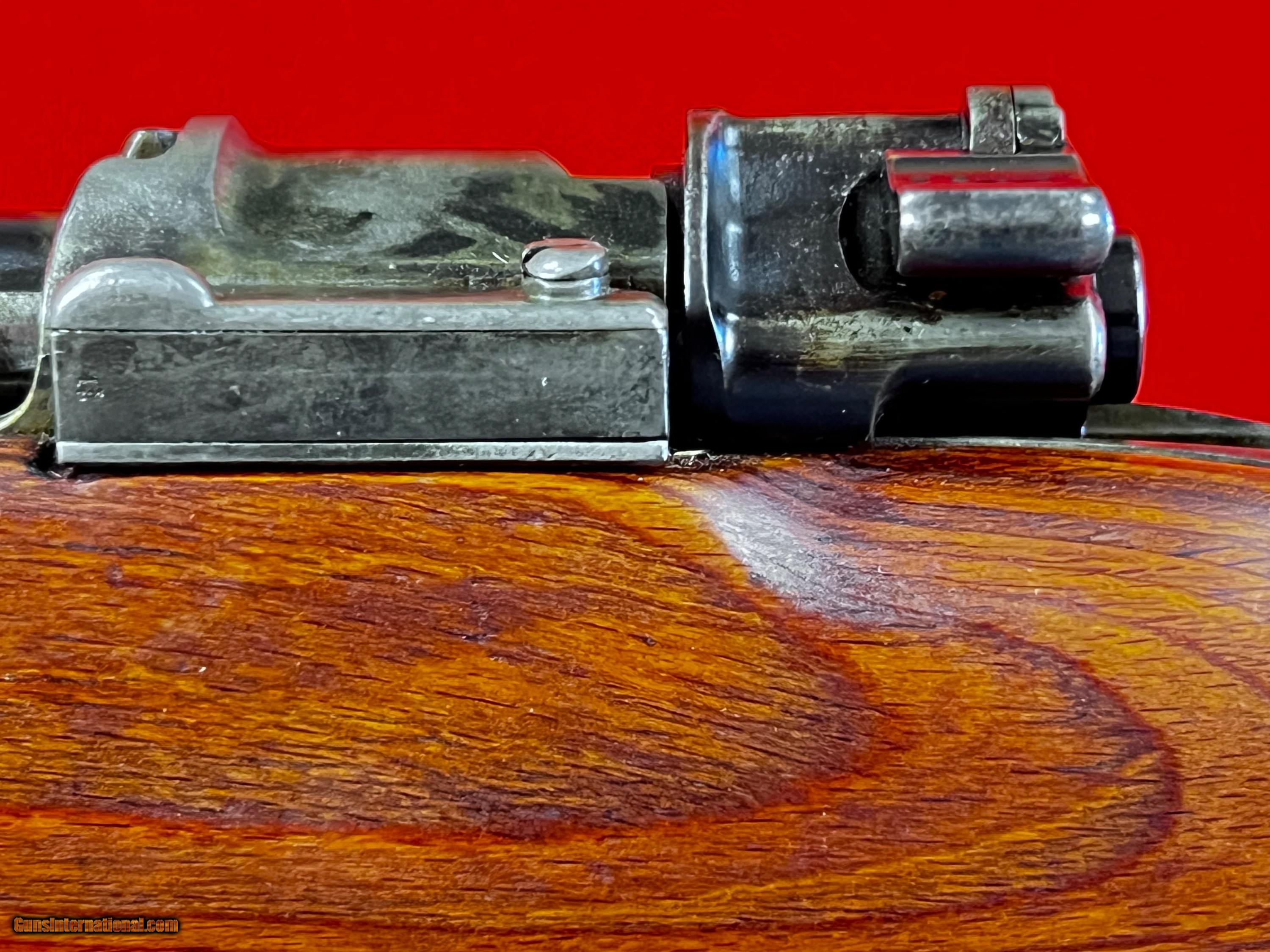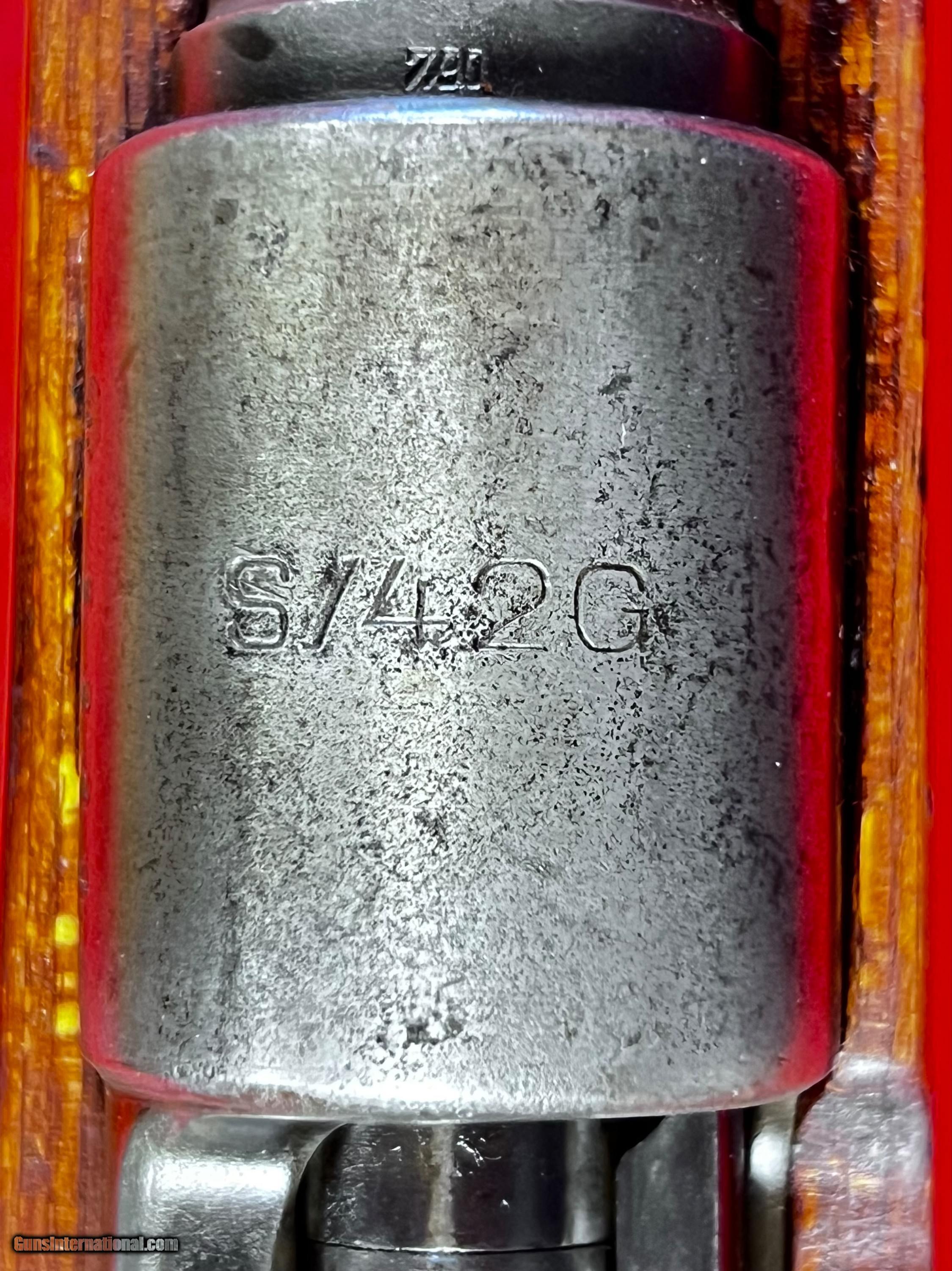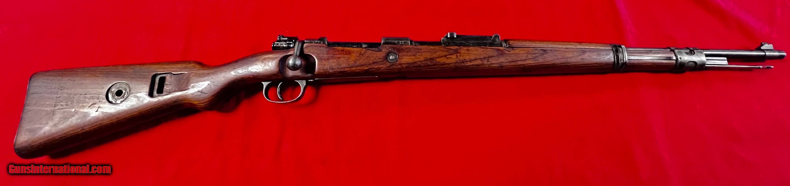 Description: Early pre K98 Mauser S42G code rifle, very good overall Weimar Eagles only no Waffenempts at all. Mostly matching except bolt assembly, buttplate and sight elevator good bore SOLD Curio/Relic: Yes |