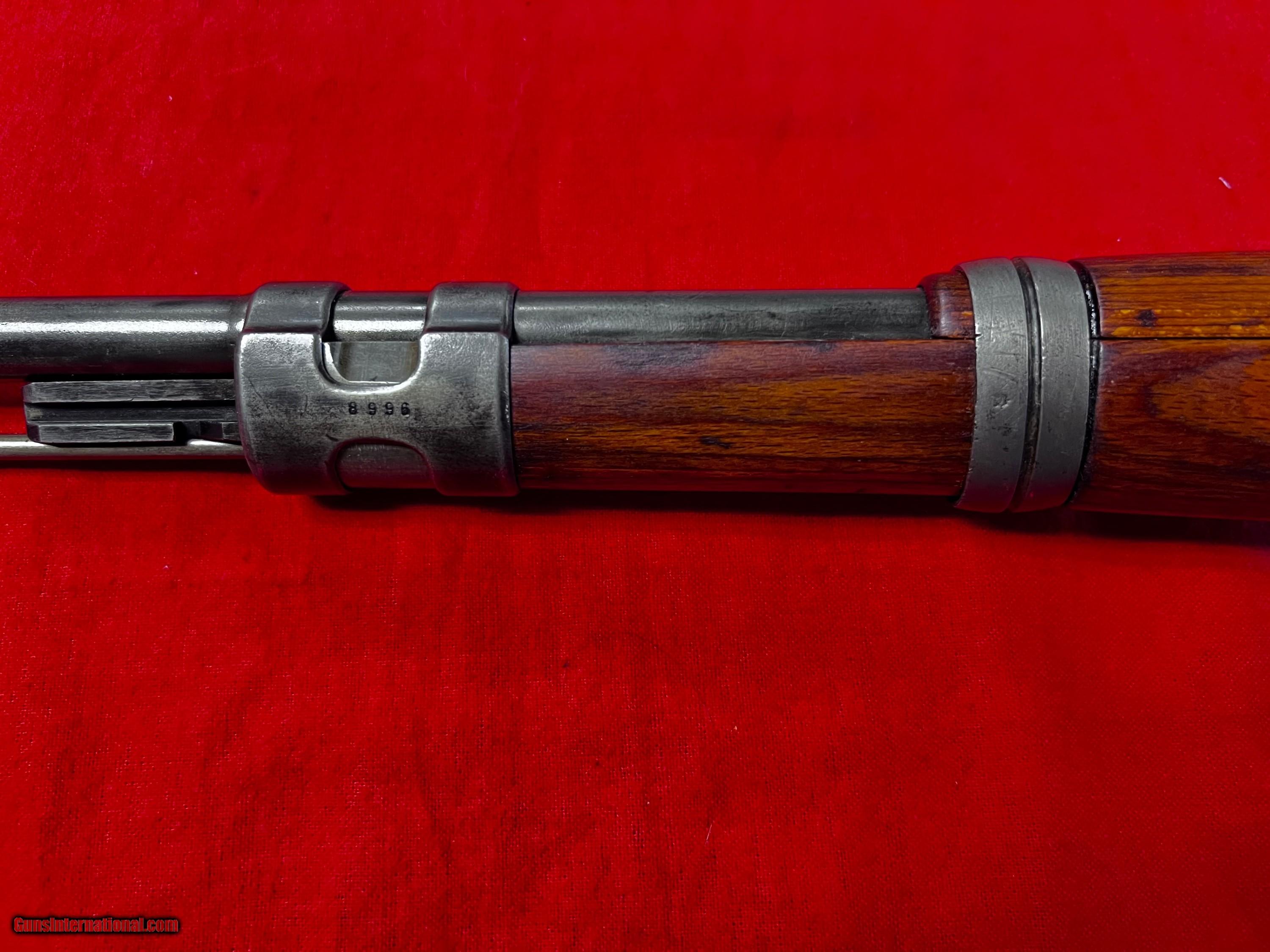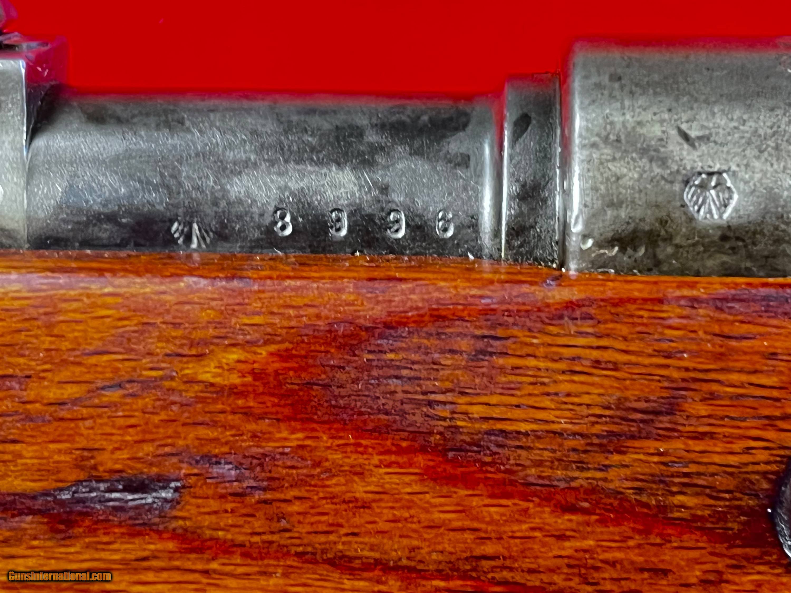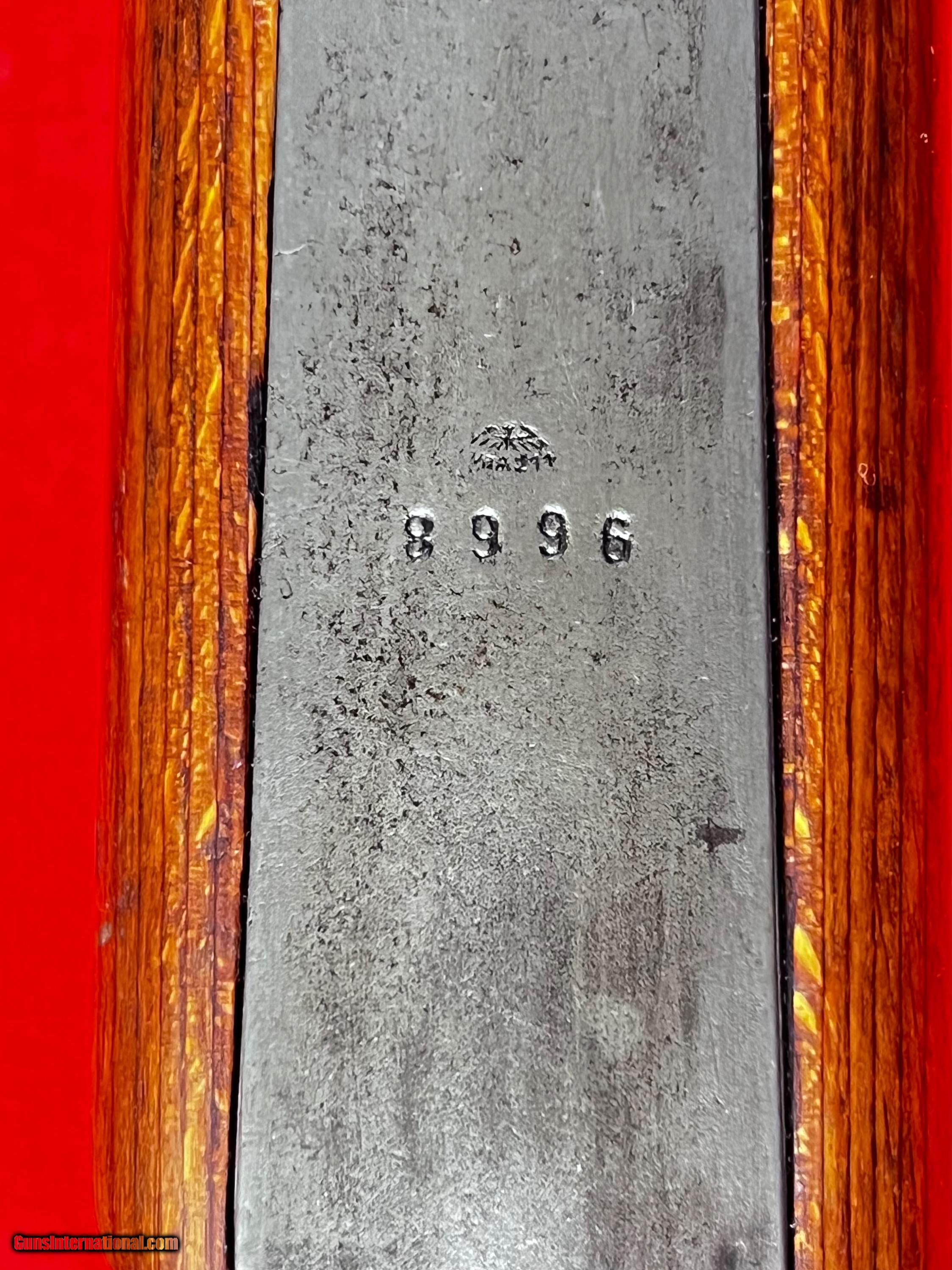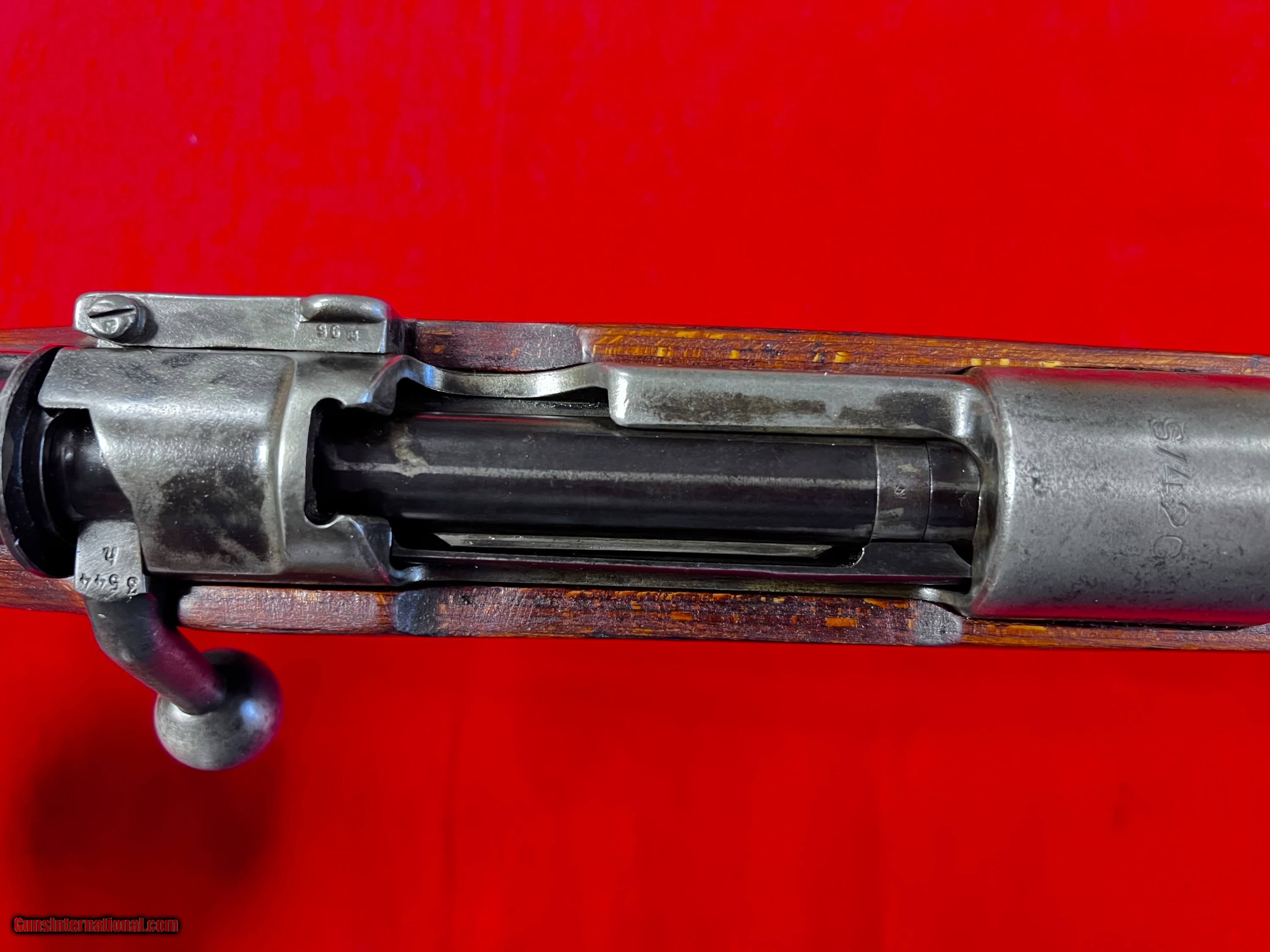 Description: Early pre K98 Mauser S42G code rifle, very good overall Weimar Eagles only no Waffenempts at all. Mostly matching except bolt assembly, buttplate and sight elevator good bore SOLD Curio/Relic: Yes |