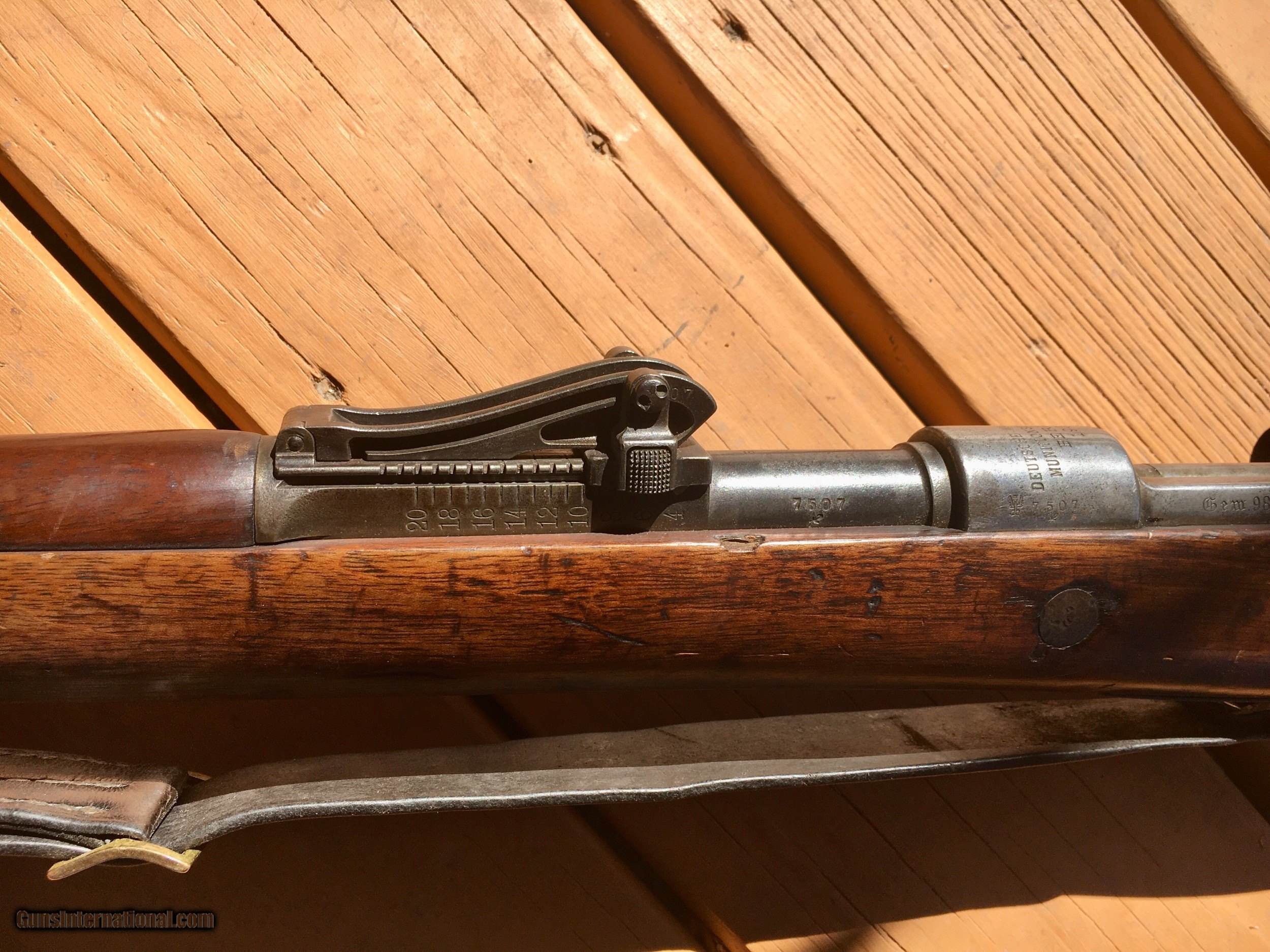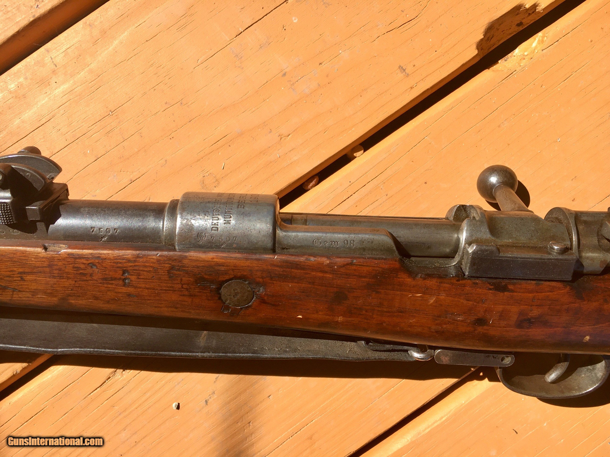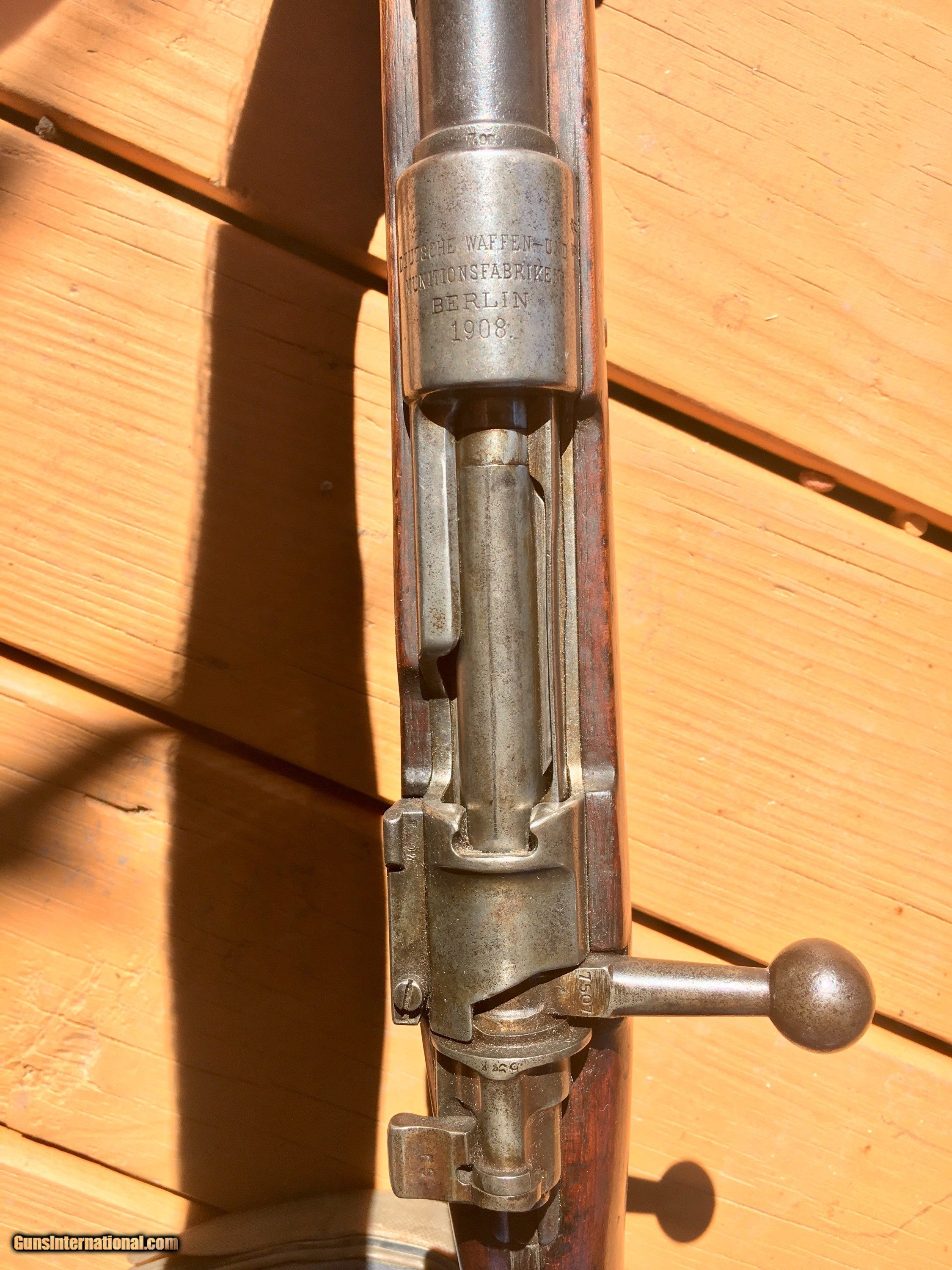 Description: Nice honest Gew 98. Berlin 1908 manufacture. Bore is dark but rifle is all matching except the safety on the bolt. Probably a field repair. Let me know it you have any questions! Thank you! SOLD Curio/Relic: Yes |