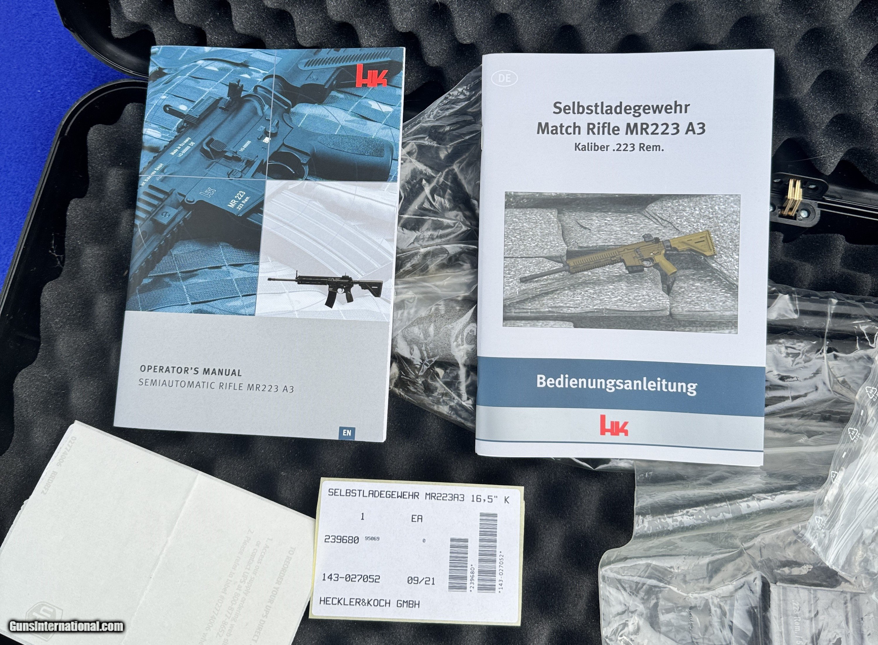 Description: No longer being imported into the United States. LNIB MR223A3 stands out due to its excellent reliability. It is the Civilian Semi-Auto equivalent to the legendary HK416A5 and it is entirely made of German parts. The Gas System was developed for military use and is well proven over the years. It's short stroke gas system reduces fouling to a minimum. The cold-hammer-forged and hard-chrome-plated precision barrels are free-floating and ensure optimum accuracy. This applies to match disciplines as well as to hunting. The Slim Line handguard with HKey interfaces fits snugly on the extended barrel nut and offers a wide range of individual options for special equipment. The extendable Slim Line buttstock makes the MR223 extremely easy to handle and can be optimally adjusted to the length of the shooter’s body by means of locking positions. The flared magazine well supports quick changing of magazines and is compatible with NATO STANAG standard magazines. The ergonomic design of the MR223, with its ambidextrous controls, represents a balanced combination of handling and control. All operating functions are designed to be user-friendly and easy to reach. This allows for quick changes from right to left-hand usage and thus also for problem-free operation by left-handed shooters. German made Heckler & Koch HR MR223. These feature the very hard to find and desirable factory German front and rear iron sights. These ship in a pistol configuration and they include the original HK slimline stock-attached. This pistol is like factory new (I do not see it was fired past factory) and it includes everything as it left the factory with in Germany. Including both English and German Manuals, Magazine and I am including a very rare magazine here in the U.S., HK gen3 PM. These Guns are very hard to come by! A must for the HK enthusiast/Collector....