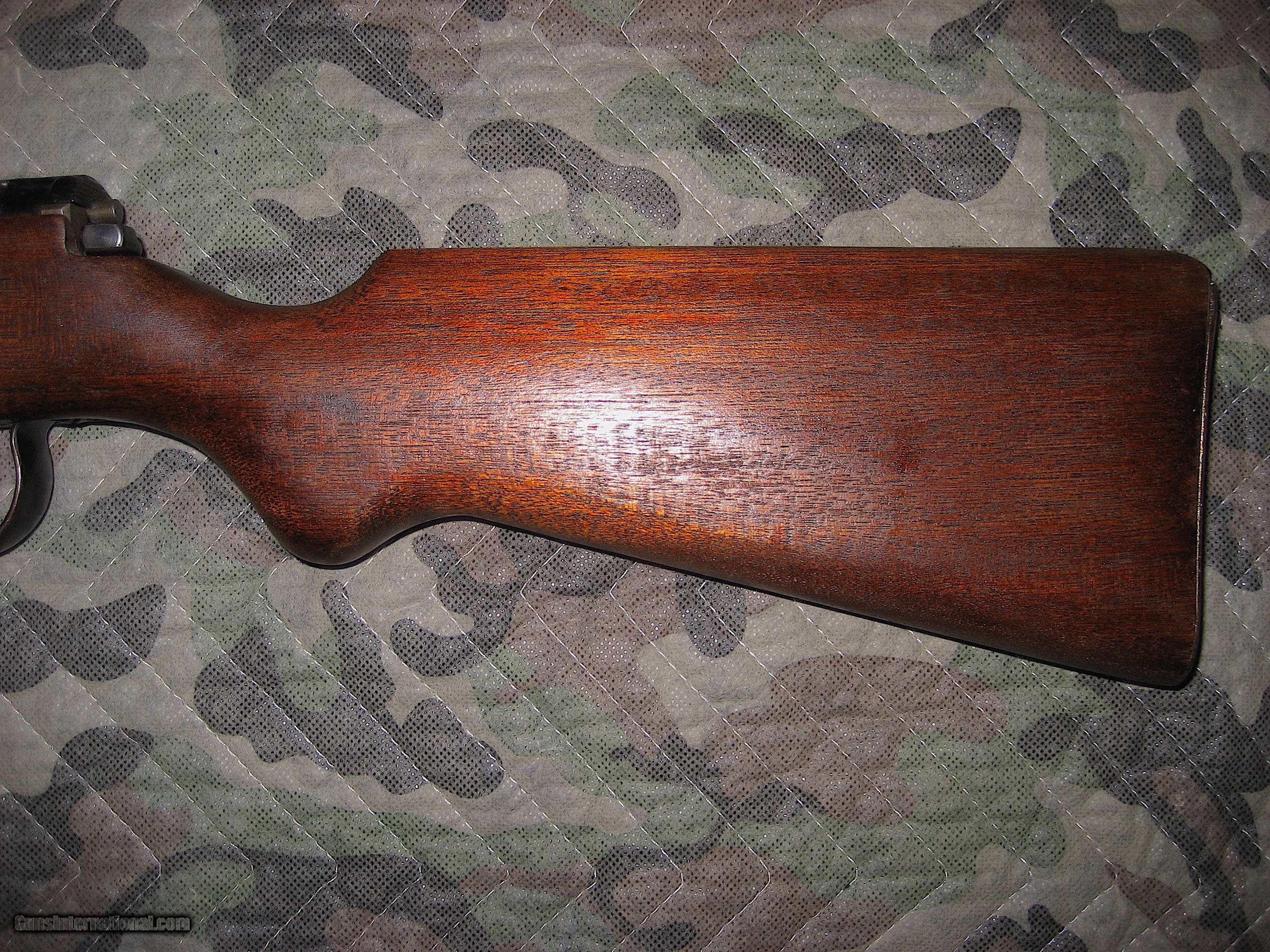 Description: German World War II Walther K43 "ac/44" Code Semi-Automatic Rifle.The Karabiner 43 (abbreviated Kar 43) is a 7.92×57mm Mauser caliber semi-automatic rifle developed by Germany during World War II to compete with the American and Russion semiautomatic rifles. Condition: "Eagle/369" marked receiver, "aye" and "WaA643" marked magazine. No front sight hood. Replacement stock butt piece. Rating Definition: Very good overall, with renumbered components, replacement wooden stock W/O sling fixture, or tool compartment. Light spotting/oxidation, handling marks. Mechanically excellent. Specifications: Mass 4.4 kg (9.7 lb) Length 1,115 mm (43.9 in) Barrel length 550 mm (21.7 in) Cartridge 7.92 ×57mm Mauser ActionGas-operated short-stroke piston Muzzle velocity746–776 m/s (2,448–2,546 ft/s)[1] 5-round stripper clips Sights Iron sights. Zelle, cashiers check, money order or personal check accepted. Layaway is four equal monthly payments. SOLD Curio/Relic: Yes Rifle Caliber: 7.92x57mm Mauser Manufacturer: Walther Model: Karabiner K43 Serial Number: 8892o Barrel Length: 21.7 inches Ejectors: excellent Condition: Excellent Metal Condition: Excellent Wood Condition: Excellent Bore Condition: Excellent Manufacture Date: 1943-1945 |