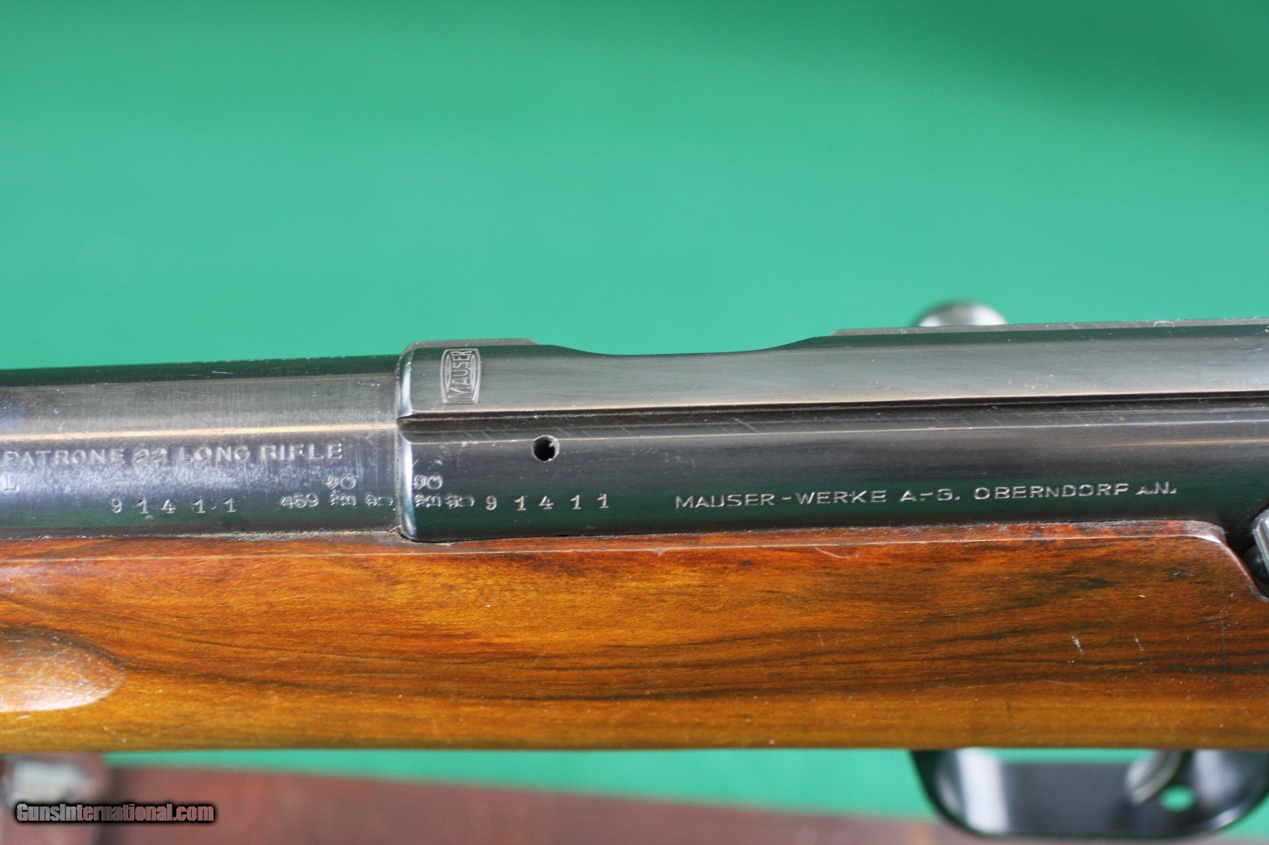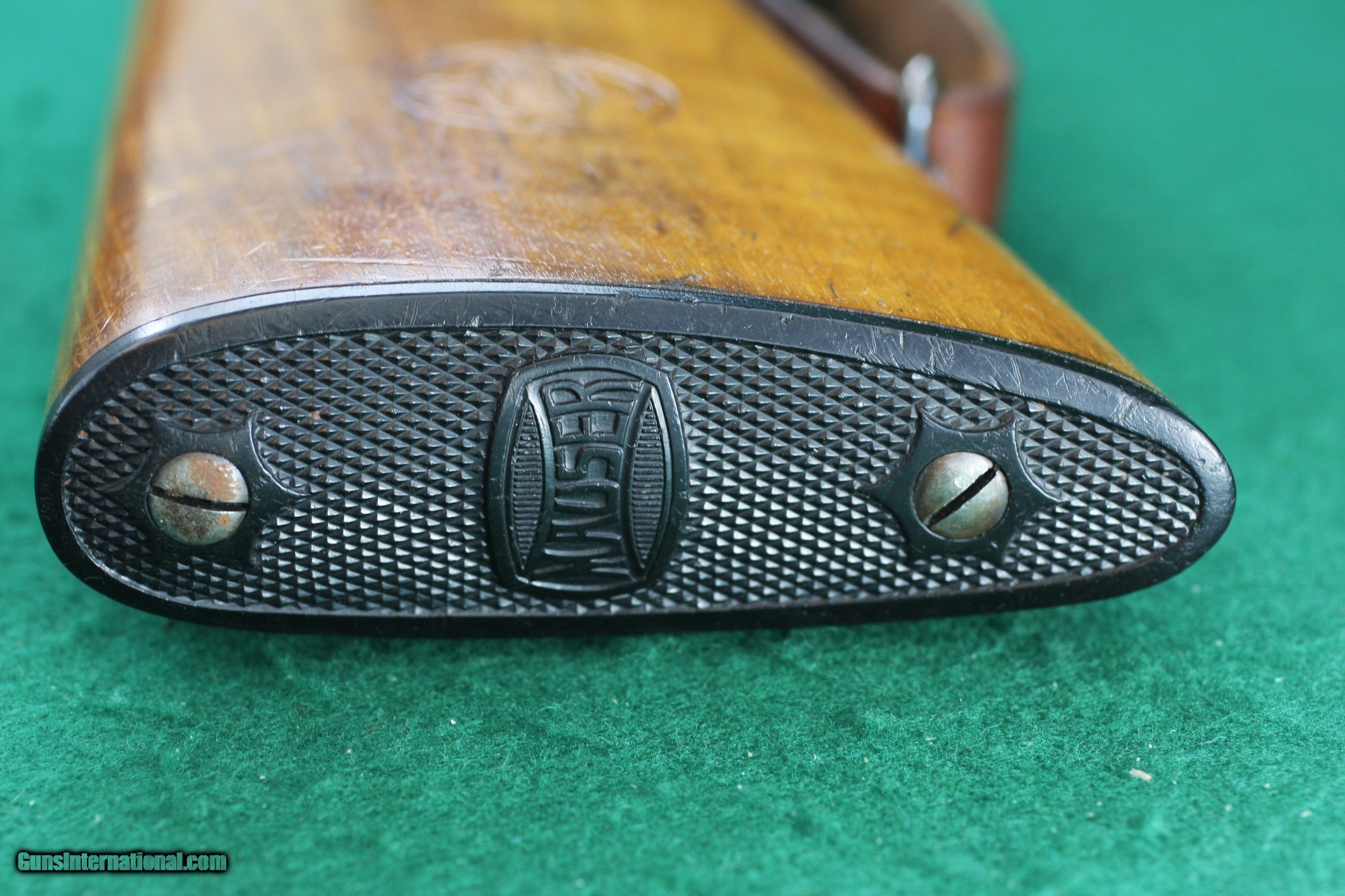 Description: ******SOLD!!!!!These fine quality German training & target rifles remain among the finest of .22’s. Known for accuracy, this Pre WWII rifle is in very good condition. The stock shows some handling marks, but retains a very distinct cartouche. The deep, rich blue is excellent. It carries the Mauser banner on the receiver and on the Steel butt plate. Features include unique adjustable trigger, rotating safety, fully adjustable rear sight, grooved receiver and vintage leather sling. Matching numbered bolt and 26-1/2” heavy barrel. Jon Speed’s Mauser Smallbores book has a good discussion of this rifle. See the pictures for condition. ******SOLD!!!!! Happy to talk, text or email any time. Let me know if you have any questions. Thanks for looking! 2611366 KCE 2J If your preference is Walnut & Blue, check out my other listings for quality Traditional and Custom Firearms. SOLD Curio/Relic: Yes Rifle Caliber: .22 Long Rifle Manufacturer: Mauser-Werke A-G. Model: ES340N Serial Number: 91411 Barrel Length: 25-1/2 Condition: VERY GOOD Plus Metal Condition: EXCELLENT Wood Condition: Very good/some handling marks Bore Condition: EXCELLENT Action: BOLT Action Triggers: ADJUSTABLE Stock: CHECKERED WITH EXCELLENT CARTOUCHE Fore End: FINGER GROOVED Butt Pad: FACTORY PAD W/LOGO LOP: 14-1/2 Finish: Satin Stock/deep blue Weight: 7 lbs 2 oz Sights: TANGENT REAR/MILITARY BLADE FRONT Manufacture Date: CIRCA 1930 Extras: QUALITY LEATHER SLING |