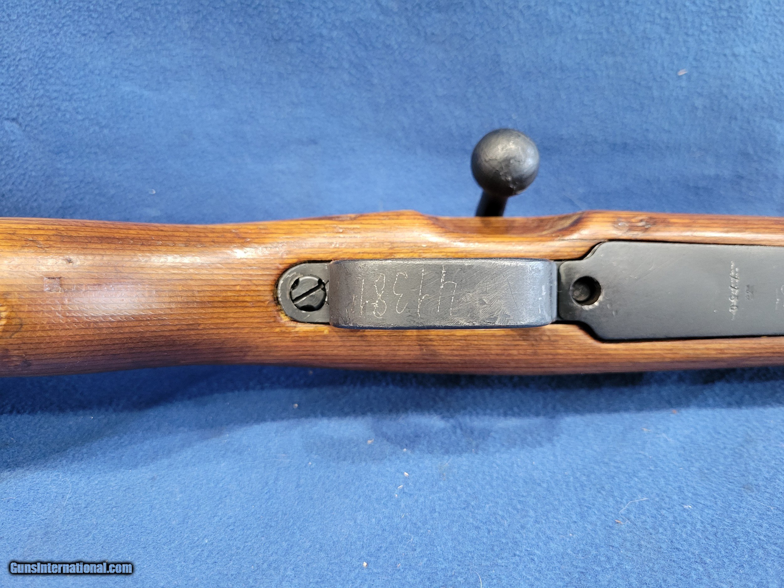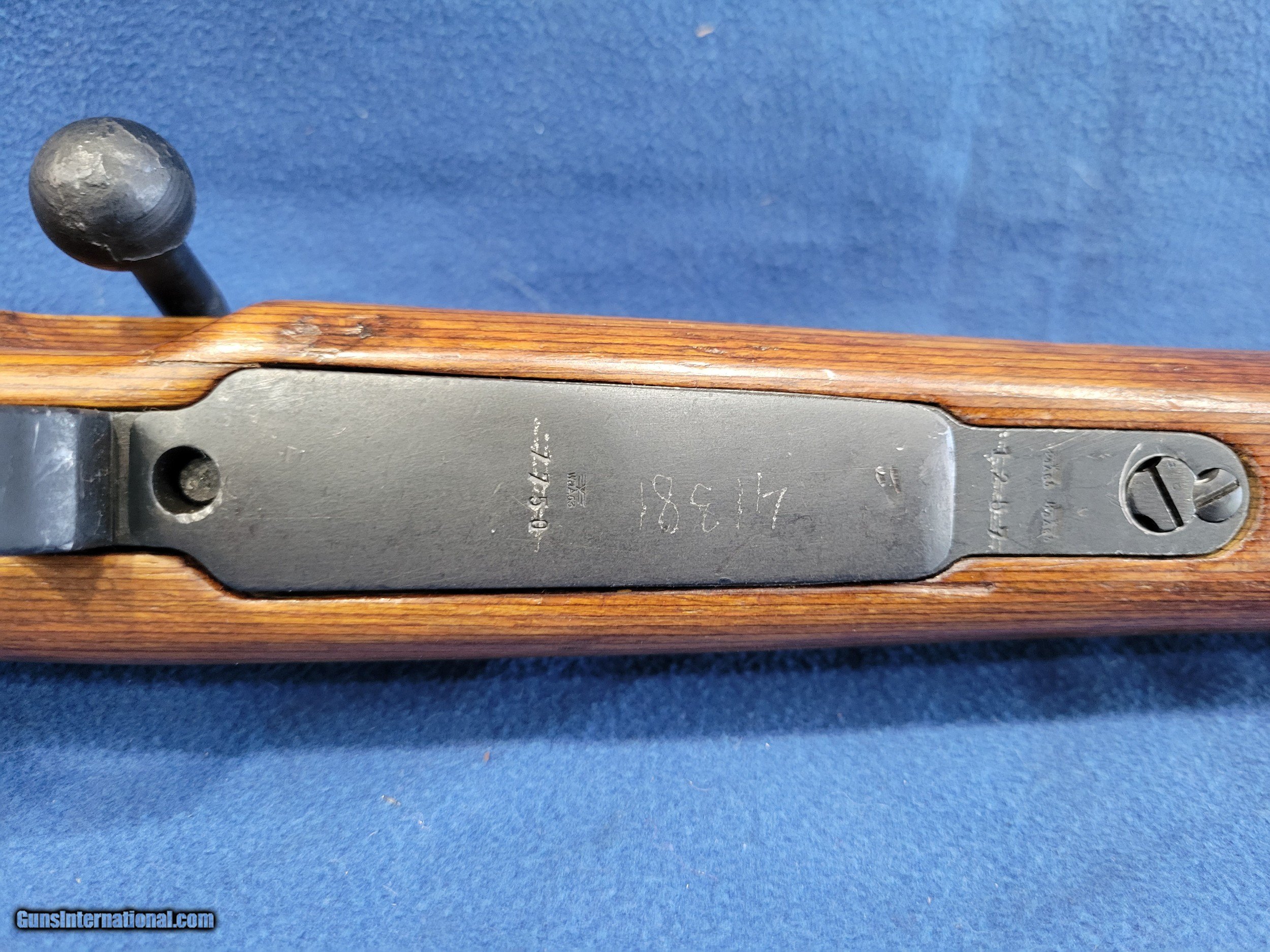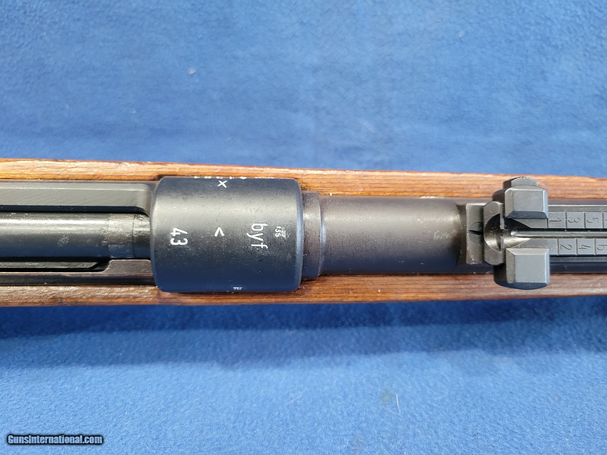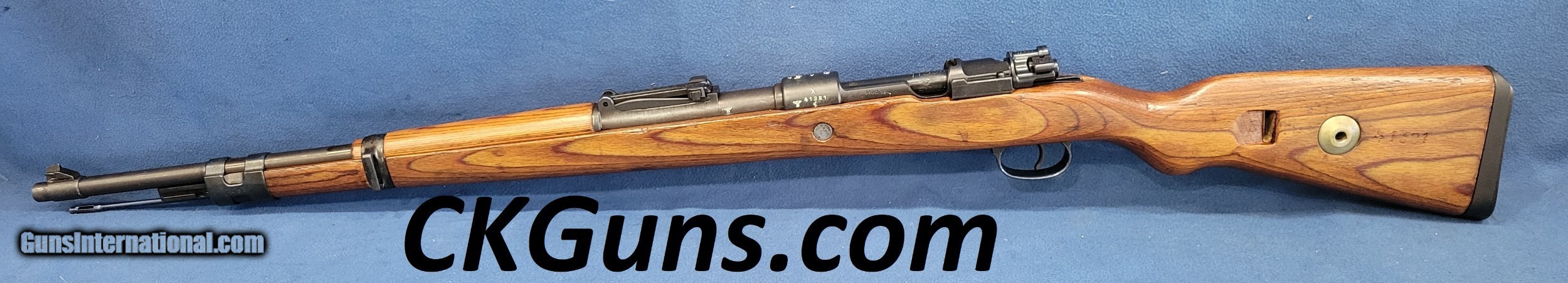 Description: NICE MAUSER (byf) K98K, CAL. 8MM, SER.41381. HERE IS A GREAT CHANCE TO OWN ONE OF THE GERMAN STANDARD ISSUE RIFLES FROM WWII. THE GUN IS IN GREAT REARSENAL SHAPE WITH VERY LITTLE FINISH LOSE THROUGHOUT. THE METAL HAS 99% OF ITS REARSENAL FINISH LEFT. THE WOOD IS A STANDARD POST/LATE-WAR STOCK WITH A LAQUER FINISH. IT HAS VERY FEW DINGS AND NO CRACKS. THE BOLT AND RECIEVER HAS BEEN ELETROPENCILED MATCHED. THE FLOOR PLATE HAS ALSO BEEN ELETROPENCILED TO MATCH THE RECEIVER. THE STOCK IS NUMBERED ON THE LEFT SIDE OF THE STOCK NEXT TO THE BUTTPAD. THE BUTTPAD IS MARKED "gqm/43/eagle/waa286". THE GUN IS IMPORT MARKED ON THE BOTTOM OF THE BARREL. THE BOLT HAS A FEW PATCHES OF PITS BUT HAVE BEEN FINISHED OVER. THE BORE HAS STRONG AND BRIGHT RIFLING WITH SCATTERED FROST. A GREAT RIFLE WHERE YOU WON'T HAVE TO SELL THE FARM TO GET. PRICED AT.............. $995. To purchase this firearm or if you want to request more information contact us at: Email ckguns[at]ymail[dot]com Phone 201-512-0002 Cell 201-575-6838 FAX 201-215-4759 We accept most major credit cards. Prices shown are Discounted 3% for Cash or Check. The buyer must be familiar with all the laws governing the purchase and the ownership of firearms in their own city and state. The Yankee Armorer, Inc is not responsible for any failure to comply with or observe these laws. The Yankee Armorer, Inc will only ship after full payment and receipt of all required documents. Shipping: Add $35.00 for handguns, $45.00 for long guns. New Jersey buyers are subject to a 7% sales tax. The Yankee Armorer, Inc offers a 3 day inspection period with full refund upon return of intact firearm and in the original condition. The Yankee Armorer, Inc offers a no interest lay away program - 25% down; 25% in 30 days; 25% in 60 days; and full payment in 90 days. Any violation of this policy is subject to restocking and forfeiture of all payments. Any variation from this policy must be agreed to in advance. Unshipped Cancelled sales are subject to a 20% restocking fee. Be advised that all firearms sold by The Yankee Armorer, Inc. or the Gun Exchange, LLC (SELLER) are sold as collector’s items. They have not been fired or tested for safety and must be examined by a license gunsmith prior to use. By purchasing any item from the (SELLER), you are agreeing to hold the (SELLER) free from any damages or lawsuits of any nature. Any item left for transfer or storage will be charged to $25.00 per month, per item from the day of its receipt. Any variation from this policy must be agreed to in advance. Store hours 10:00 am to 5:00 pm Tuesday -Saturday. It's always best to call for appointment. Store 201-512-0002, cell 201-575-6838. SOLD |