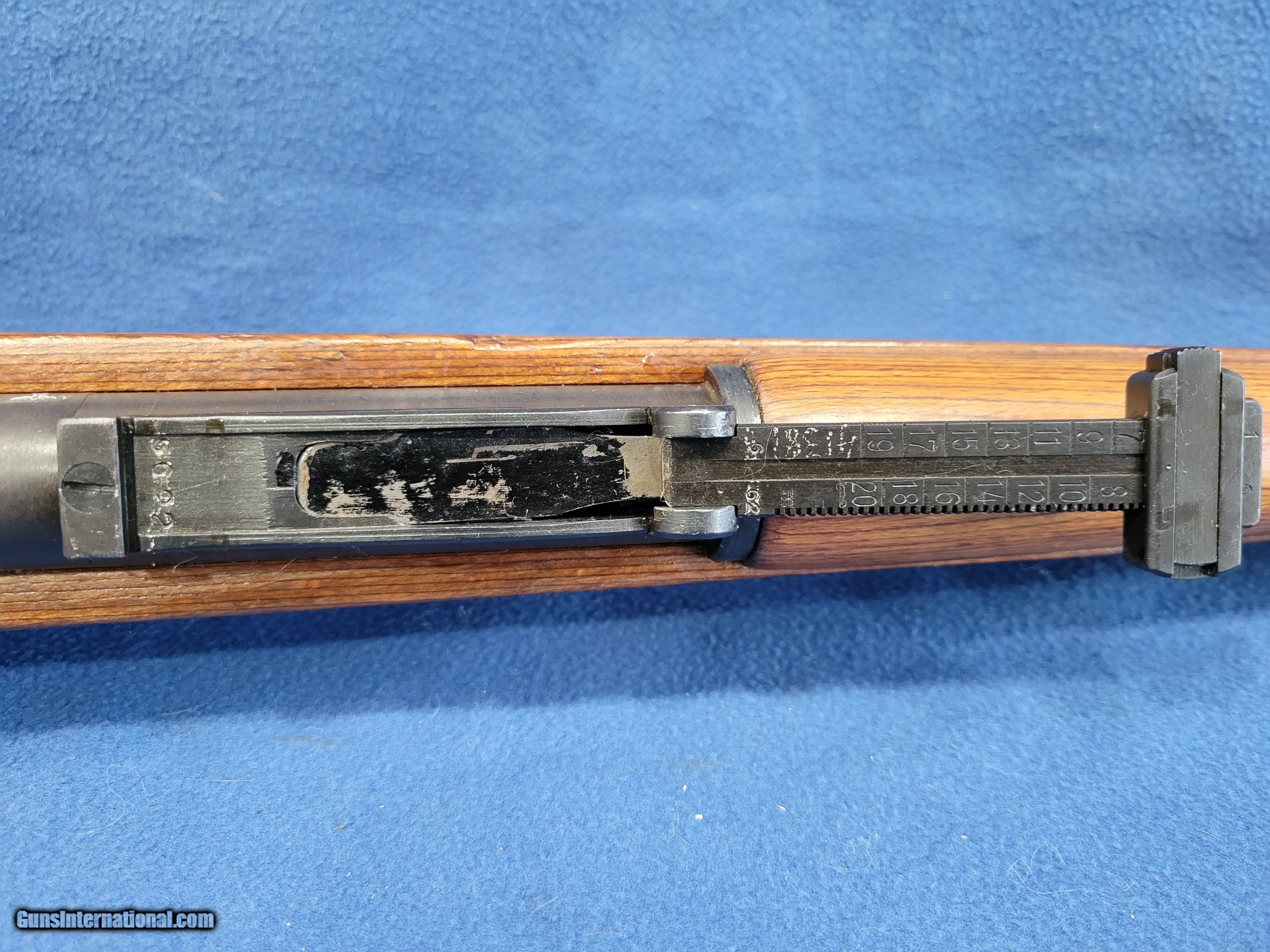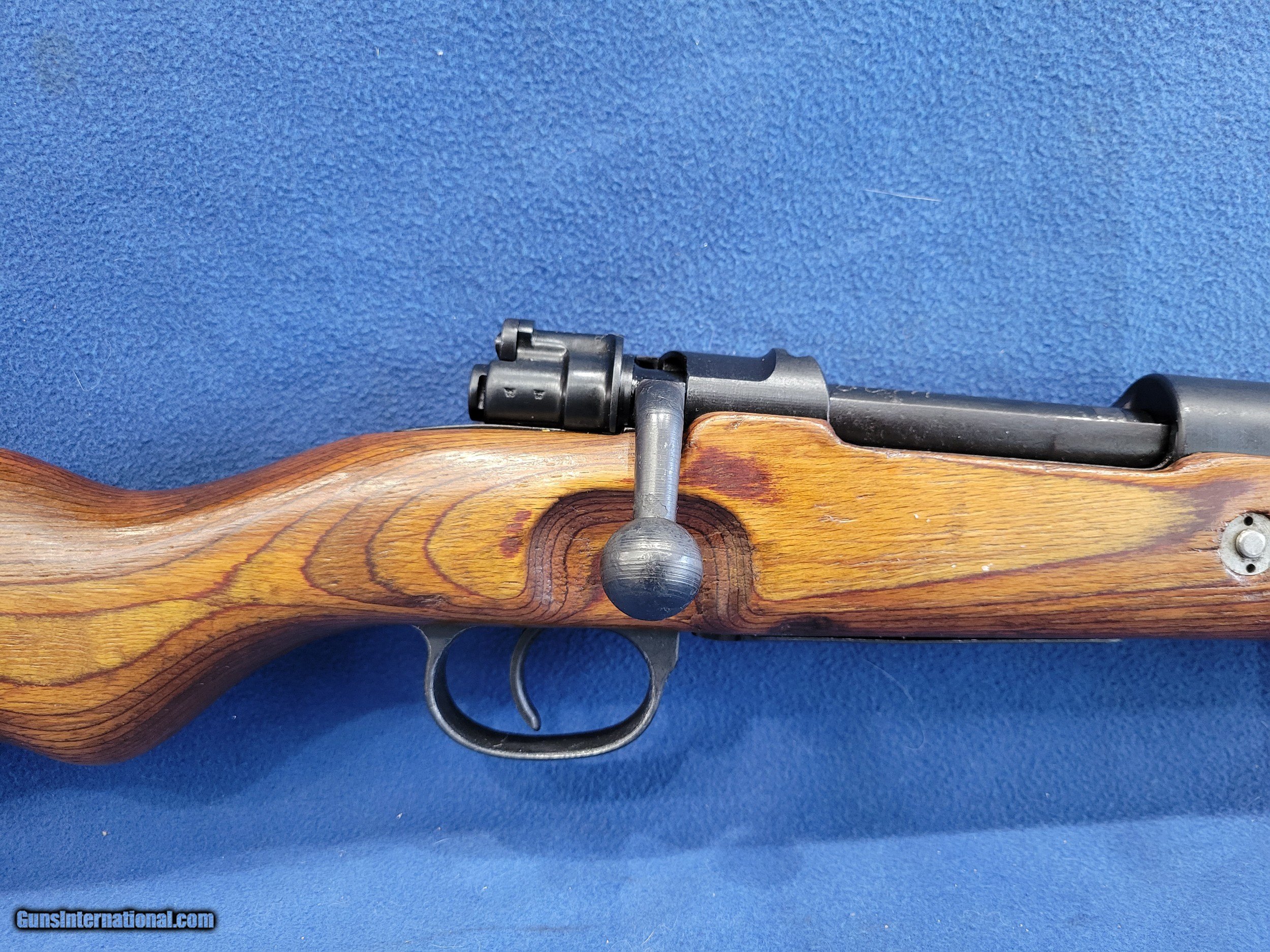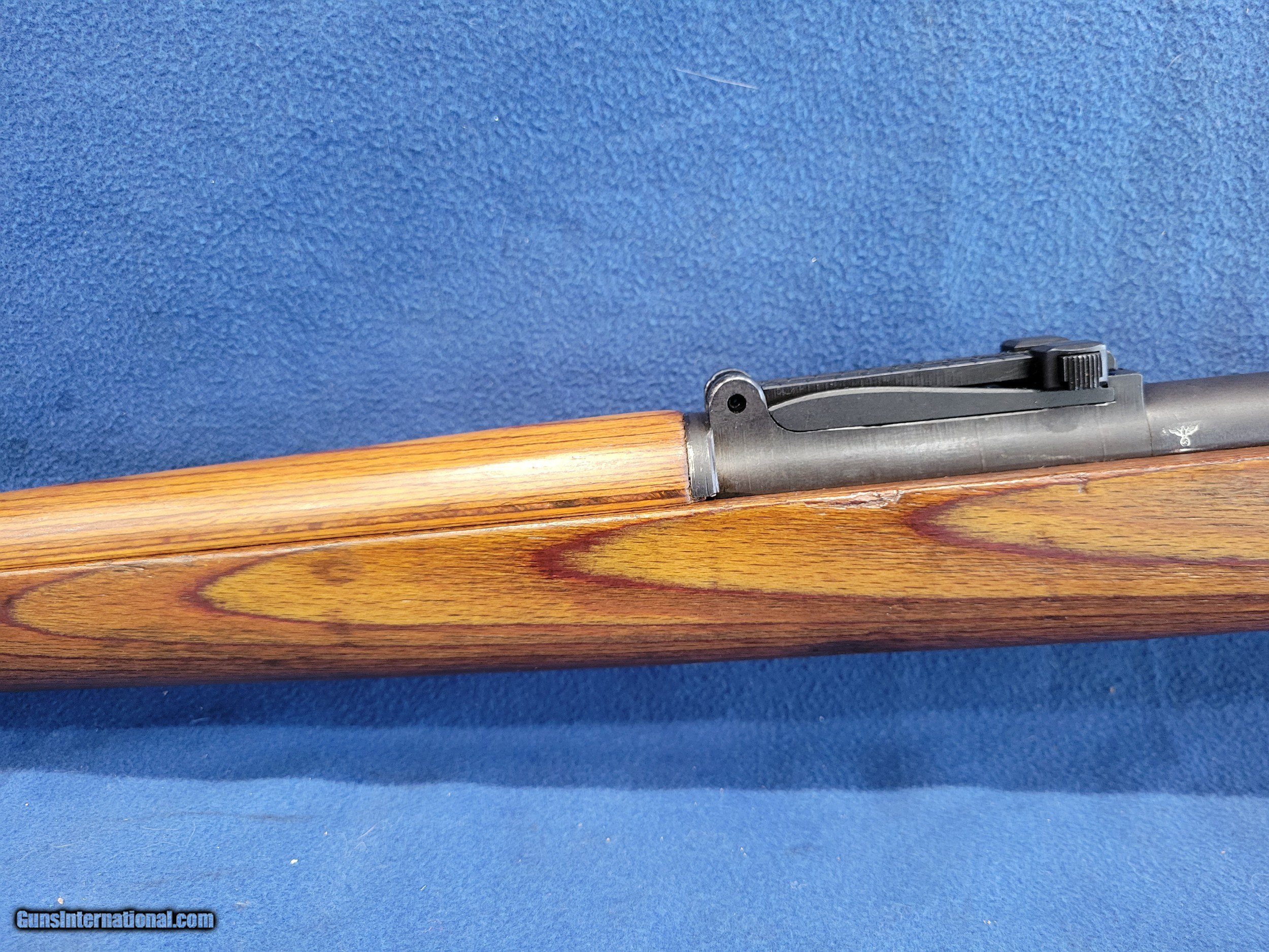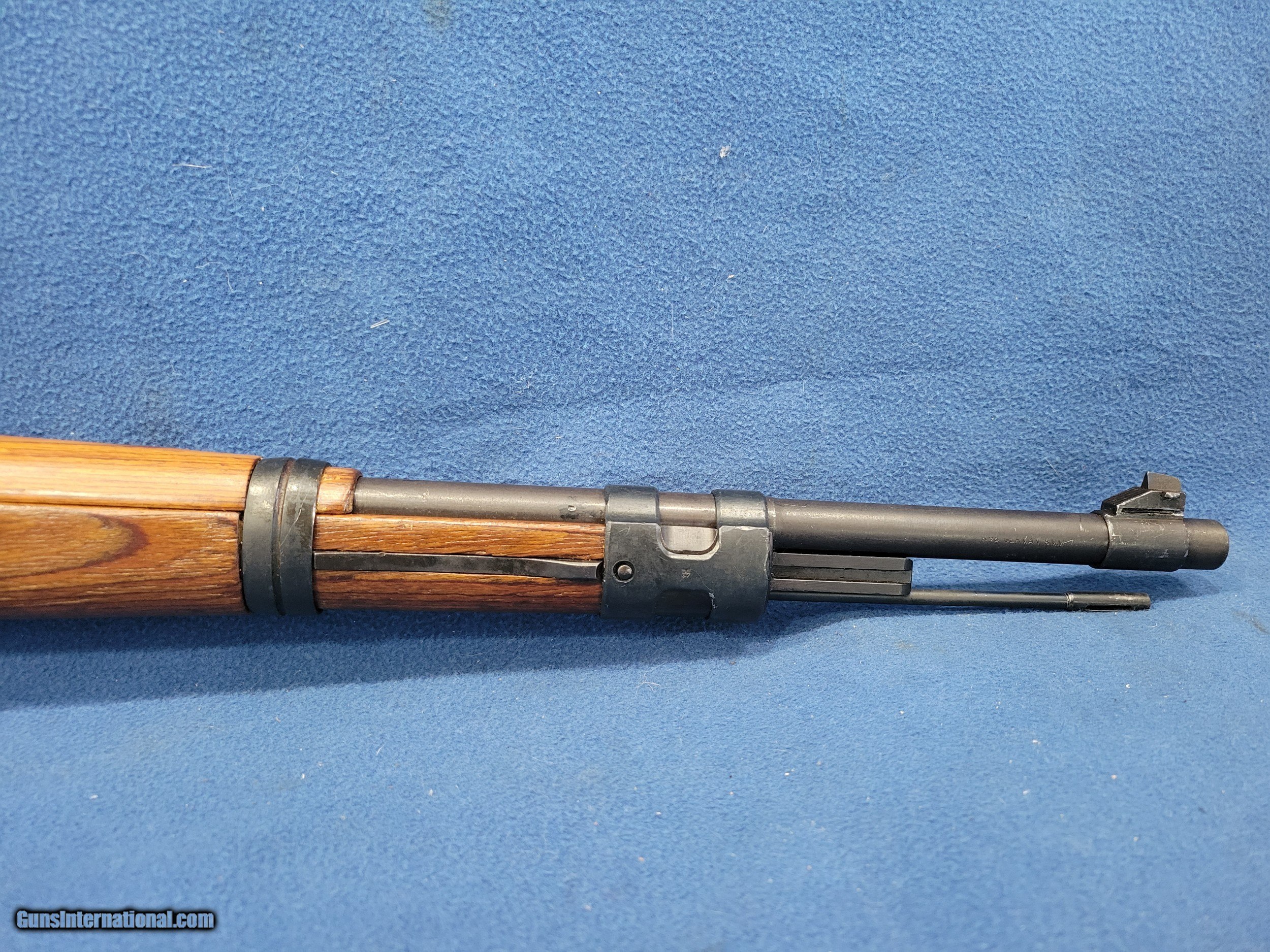 Description: NICE MAUSER (byf) K98K, CAL. 8MM, SER.41381. HERE IS A GREAT CHANCE TO OWN ONE OF THE GERMAN STANDARD ISSUE RIFLES FROM WWII. THE GUN IS IN GREAT REARSENAL SHAPE WITH VERY LITTLE FINISH LOSE THROUGHOUT. THE METAL HAS 99% OF ITS REARSENAL FINISH LEFT. THE WOOD IS A STANDARD POST/LATE-WAR STOCK WITH A LAQUER FINISH. IT HAS VERY FEW DINGS AND NO CRACKS. THE BOLT AND RECIEVER HAS BEEN ELETROPENCILED MATCHED. THE FLOOR PLATE HAS ALSO BEEN ELETROPENCILED TO MATCH THE RECEIVER. THE STOCK IS NUMBERED ON THE LEFT SIDE OF THE STOCK NEXT TO THE BUTTPAD. THE BUTTPAD IS MARKED "gqm/43/eagle/waa286". THE GUN IS IMPORT MARKED ON THE BOTTOM OF THE BARREL. THE BOLT HAS A FEW PATCHES OF PITS BUT HAVE BEEN FINISHED OVER. THE BORE HAS STRONG AND BRIGHT RIFLING WITH SCATTERED FROST. A GREAT RIFLE WHERE YOU WON'T HAVE TO SELL THE FARM TO GET. PRICED AT.............. $995. To purchase this firearm or if you want to request more information contact us at: Email ckguns[at]ymail[dot]com Phone 201-512-0002 Cell 201-575-6838 FAX 201-215-4759 We accept most major credit cards. Prices shown are Discounted 3% for Cash or Check. The buyer must be familiar with all the laws governing the purchase and the ownership of firearms in their own city and state. The Yankee Armorer, Inc is not responsible for any failure to comply with or observe these laws. The Yankee Armorer, Inc will only ship after full payment and receipt of all required documents. Shipping: Add $35.00 for handguns, $45.00 for long guns. New Jersey buyers are subject to a 7% sales tax. The Yankee Armorer, Inc offers a 3 day inspection period with full refund upon return of intact firearm and in the original condition. The Yankee Armorer, Inc offers a no interest lay away program - 25% down; 25% in 30 days; 25% in 60 days; and full payment in 90 days. Any violation of this policy is subject to restocking and forfeiture of all payments. Any variation from this policy must be agreed to in advance. Unshipped Cancelled sales are subject to a 20% restocking fee. Be advised that all firearms sold by The Yankee Armorer, Inc. or the Gun Exchange, LLC (SELLER) are sold as collector’s items. They have not been fired or tested for safety and must be examined by a license gunsmith prior to use. By purchasing any item from the (SELLER), you are agreeing to hold the (SELLER) free from any damages or lawsuits of any nature. Any item left for transfer or storage will be charged to $25.00 per month, per item from the day of its receipt. Any variation from this policy must be agreed to in advance. Store hours 10:00 am to 5:00 pm Tuesday -Saturday. It's always best to call for appointment. Store 201-512-0002, cell 201-575-6838. SOLD |