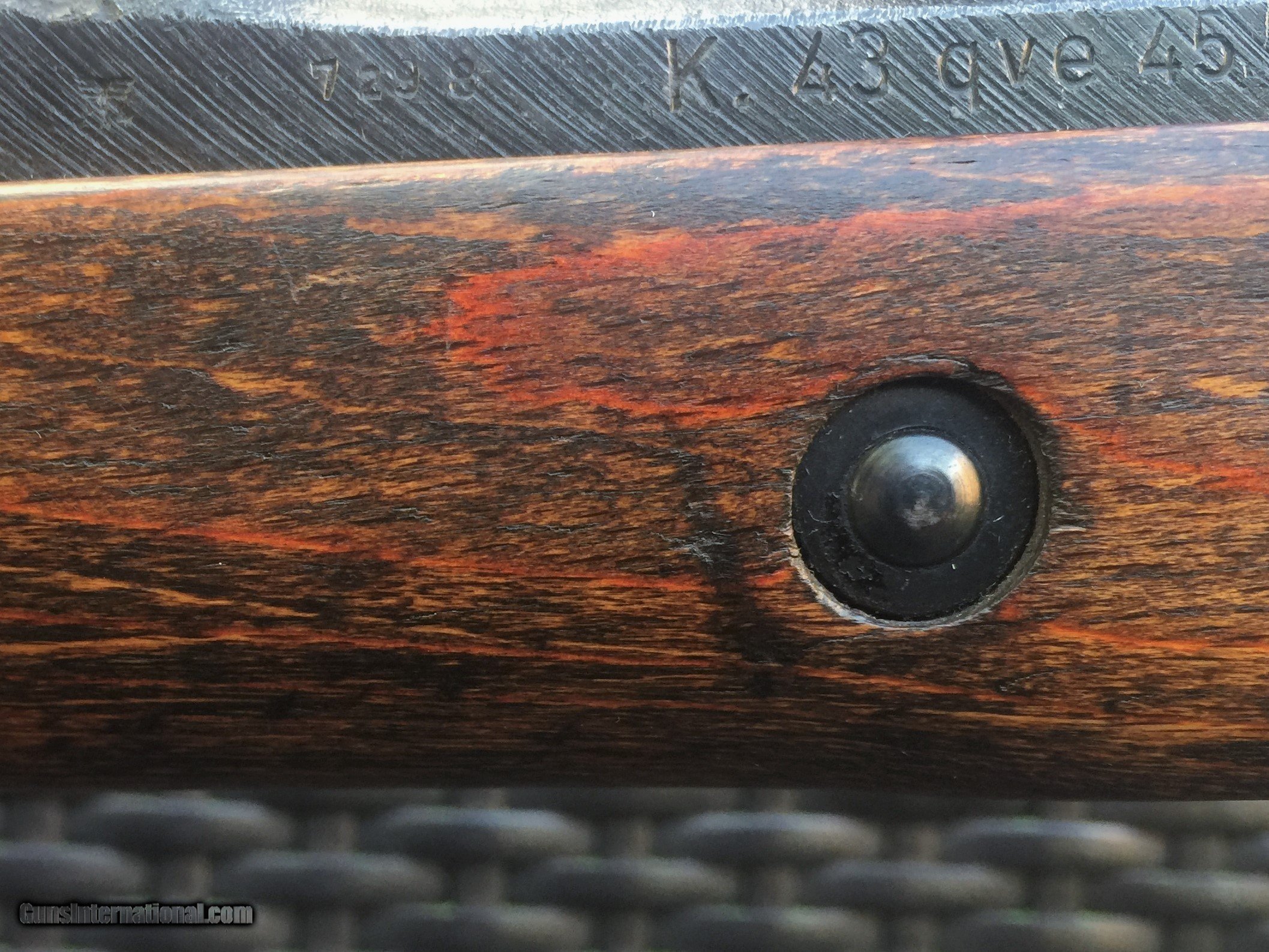 Description: Original Late WWII Nazi German Berlin Luebecker K43 marked "qve 45" in excellent condition. Original finish, all matching (receiver, bolt, stock), not import marked, excellent bore, functions fine. Comes with a sight hood. Second picture after the markings on the receiver is the serial number on the bolt. These rifles are a successor to the G41 that were unreliable in combat. K43/G43 had a simpler, sturdier design and mechanism. This made them lighter, easier to produce, more reliable, and also much tougher than the G41. They were accepted and entered into service as the G43, but later renamed K43 in April 1944. I'm not a dealer. I'm a private collector and I'm currently thinning out my collection. 3 months layaway with 25% down is available. I accept personal checks, but due to the POLICY OF MY BANK it takes 7 business days from the day of the deposit for them to clear. You can find more high quality collectible firearms in my other listings. SOLD Curio/Relic: Yes |