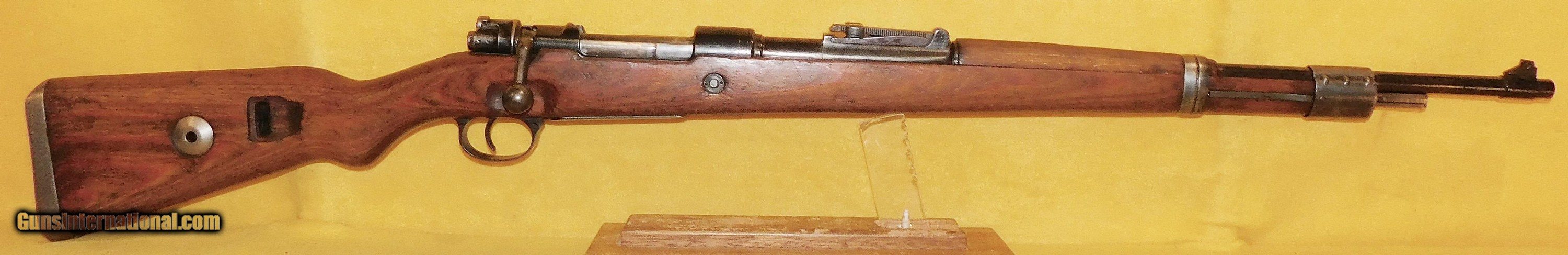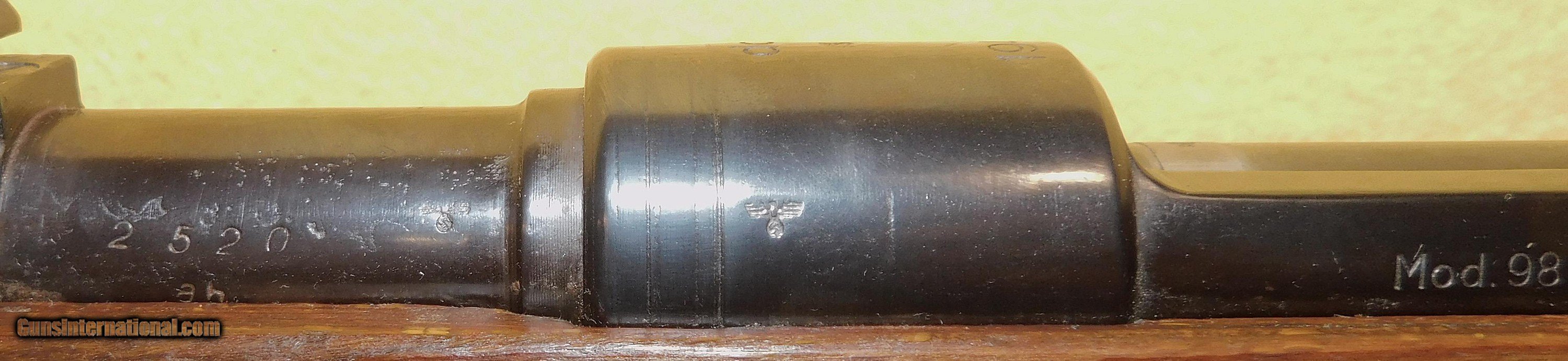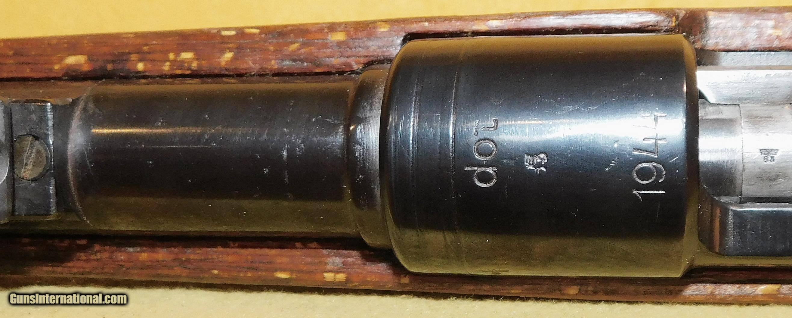 Description: WAFFEN WERKE BRUNN I K98 IN 8MM CAL., WITH 2520 BARREL. COLOR BLUE. CONDITION 80%?. SERIAL NUMBER 2520. WAFFEN WERKE BRUNN I MODEL K98 IN 8MM MAUSER CALIBER, BRIGHT BORE, RECEIVER IS MARKED (DOJ 1944) LAMINATE STOCK EXCELLENT BUT NOT SERIAL NUMBERED TO RIFLE, ALL BOLT PARTS HAVE SAME SERIAL BUT NOT TO THE RIFLE, THIS IS FINE EXAMPLE DOJ 1944 K98 SHOOTER, 80%? OVERALL CONDITION, OUR STOCK # D4476 SOLD |