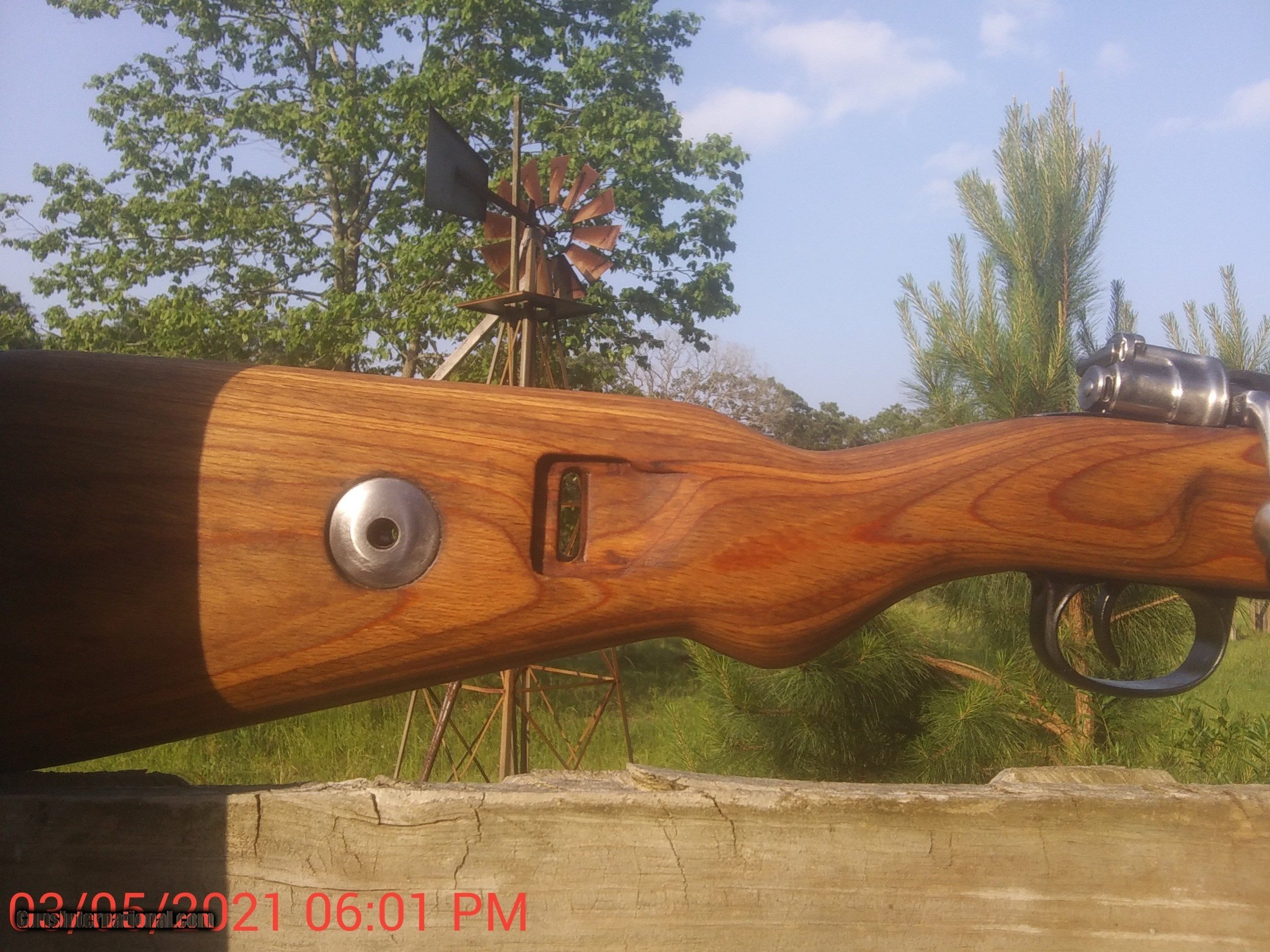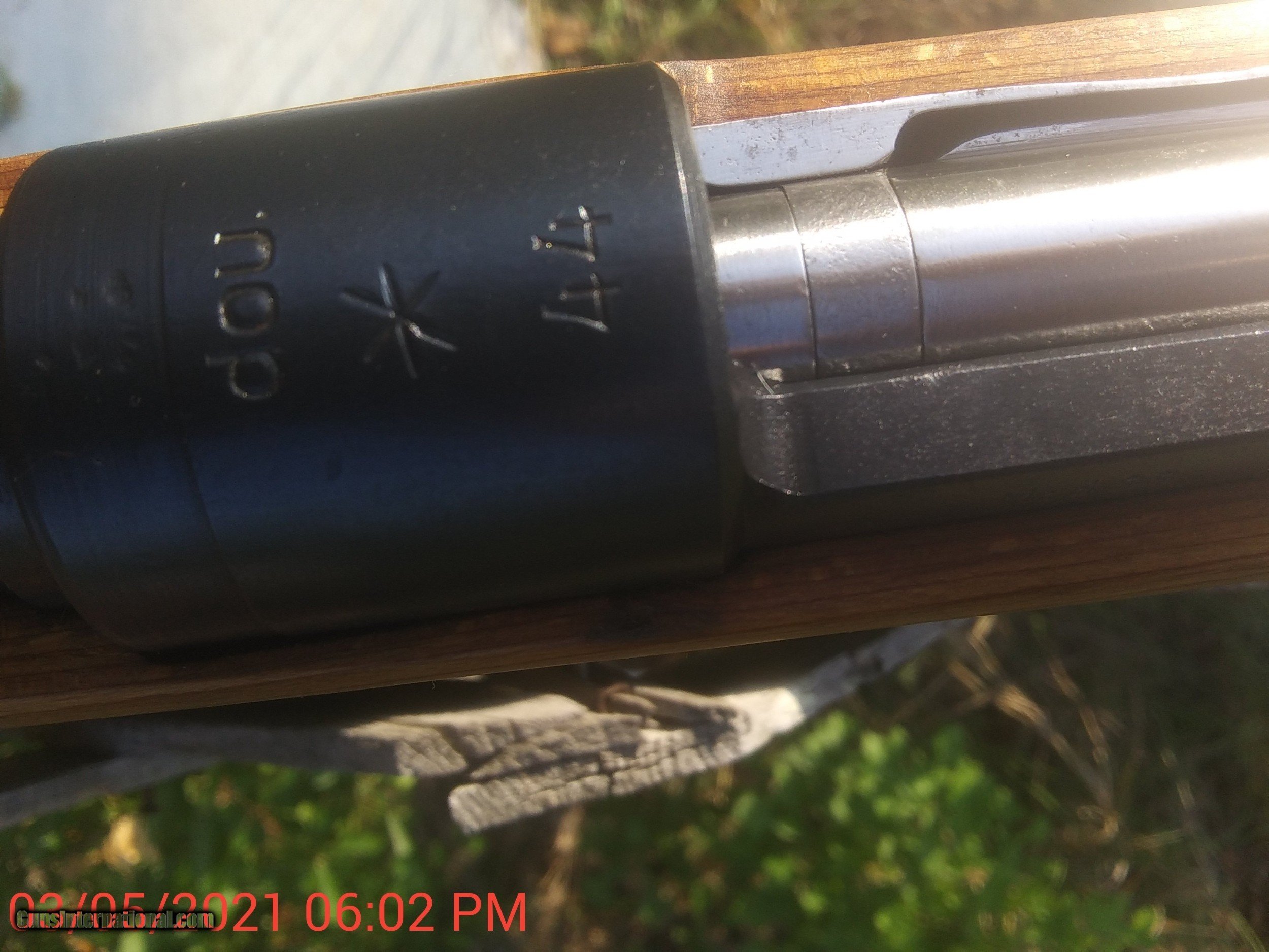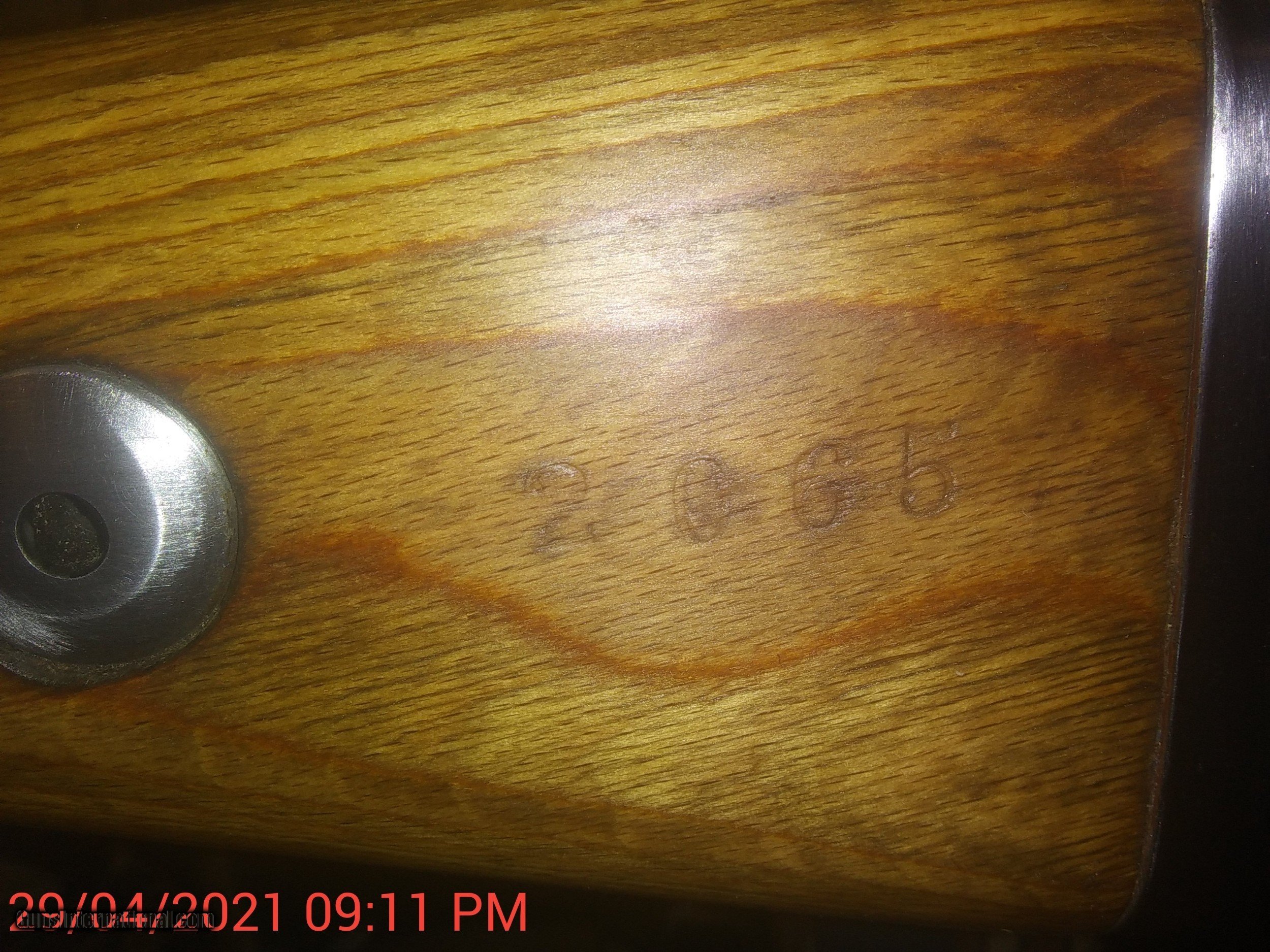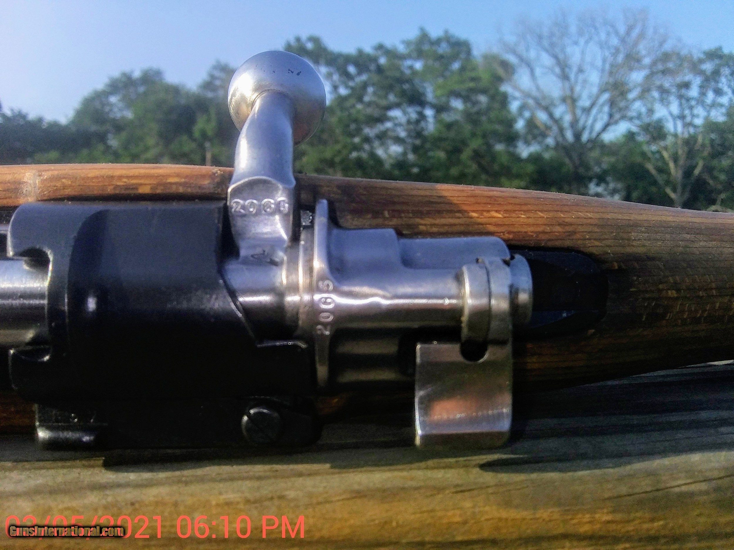 Description: Excellent Matching condition. 100% correct. Rifle is in really excellent condition. The bore is bright and the rifleing is strong. Shoots as good as it looks. Hand picked by me for my personal collection of all most every year and code of Mauser made. I collect ancient coins now. It's a Michael's Mauser select grade with original box and certificate from a German curator. Pictures speak for themselves. All though the above rifle is as described I got it mixed up with another dou Mauser. I've reduced the price to reflect this. SOLD Curio/Relic: Yes Rifle Caliber: 7.92x57mm Mauser Manufacturer: Waffenwerke Brunn AG Povaszka Bystrica Czechoslovakia Model: Mauser K98K Serial Number: 2065m Condition: Excellent Metal Condition: Excellent Wood Condition: Excellent Bore Condition: Better than Very good to excellent Manufacture Date: 1944 |
