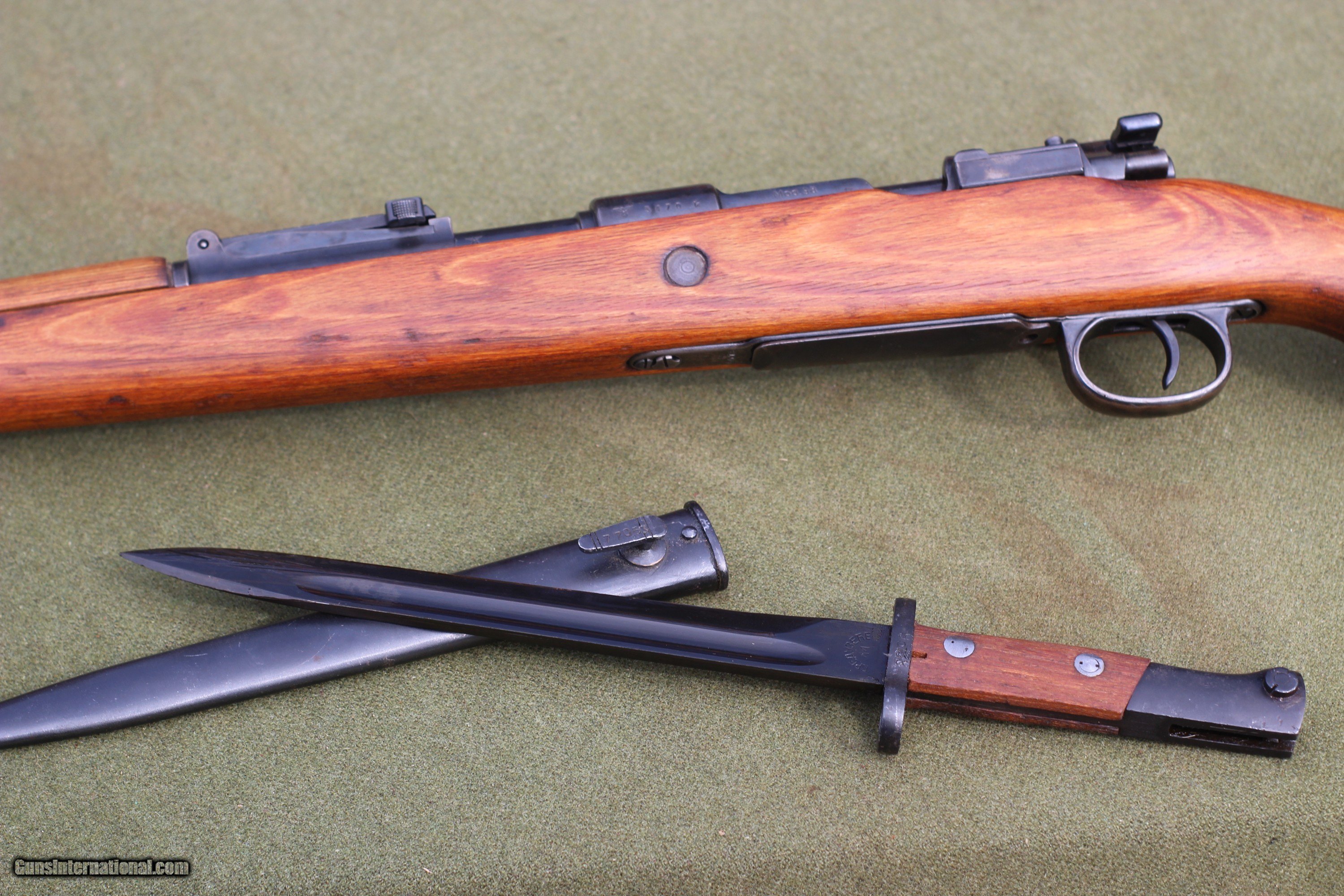 Description: Manufacuture code "BYF 43" Correct laminated stock 85% blueing With very good bore 8/10 Miss matched numbers, miss matched bolt Good example of a shooter quality all orignal Import marked With bayonett Waffenamt +$55 shipping SOLD Curio/Relic: Yes |
