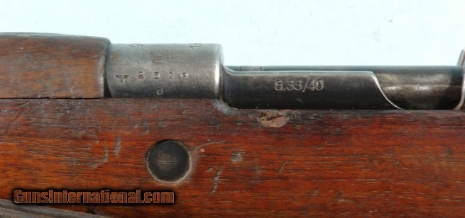 Description: WW2 WAFFEN-BRUNN G33/40 945/1940 MOUNTAIN CARBINE W/SLING. 8mm Mauser cal. all original and matching with all correct Nazi German Ordnance Waffenampt inspection stamps on metal and wood. Very good overall with original blue and patina showing moderate War use. Wood with the original finish with various minor dings. Excellent Waffenampts stamped behind stock dowel on right side of butt. Working order and very good bore. Original sling. No import marks. Scarce and desirable Mountain Carbine. SOLD Curio/Relic: Yes Rifle Caliber: 7.92x57mm Mauser |