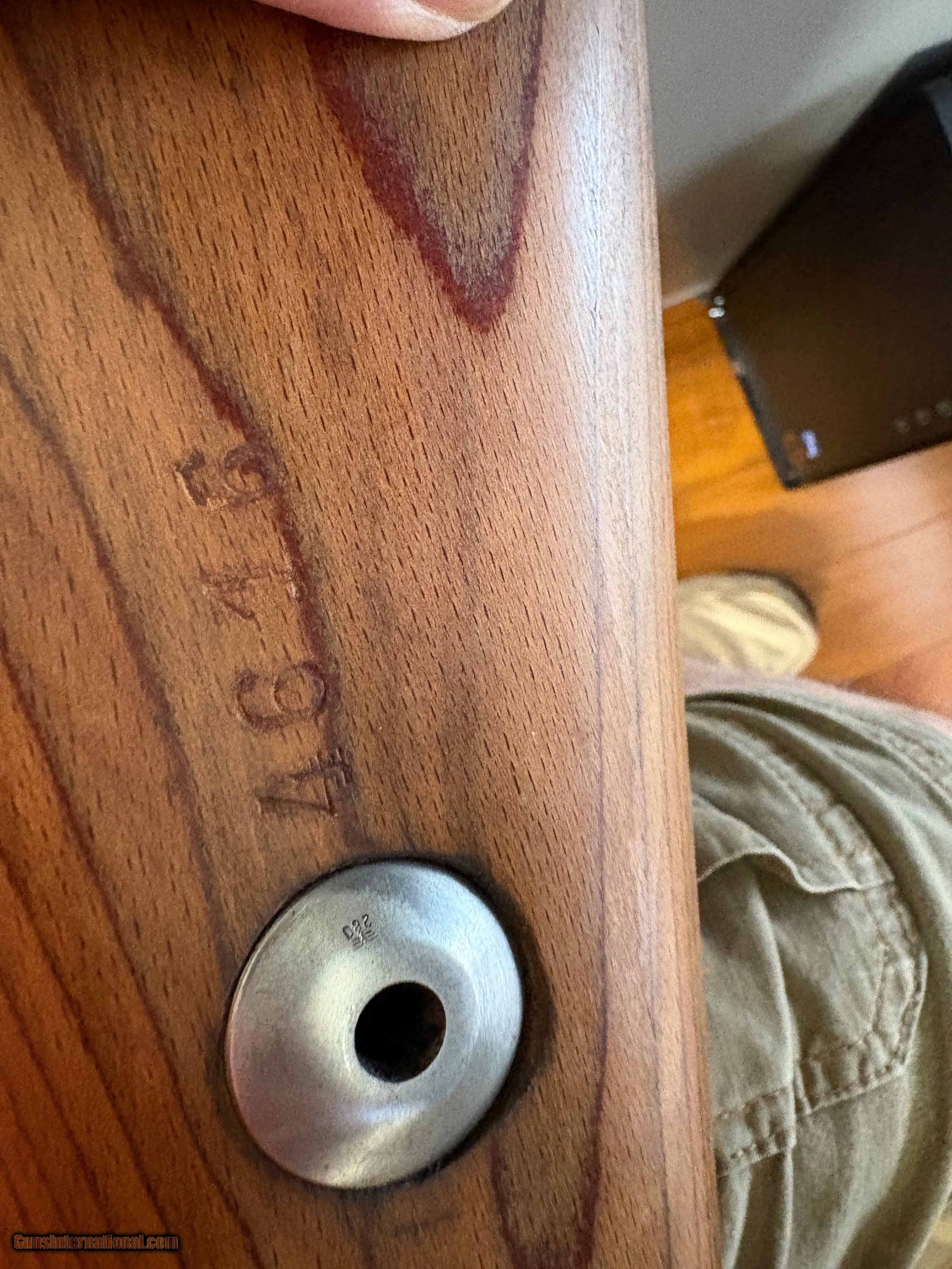 Description: MITCHELL MAUSER , WWll GERMAN K98 RIFLE . SER# 4616e , MATCHING NUMBERS BOLT AND STOCK . BORE SHOWS DESCENT RIFLE WITH LIGHT TO MODERATE PITTING THROUGHOUT.IT MAY CLEAN UP BETTER, NICE METAL FINISH. GOOD SOLID WOOD. IMPORT MARKED ON THE BARREL SIDE. EASTERN BRANCH FIREARMS ADD 50.00 SHIPPING – HANDGUNS SHIP NEXT DAY AIR ADD 50.00 SHIPPING – LONG GUNS SHIP GROUND OPTIONAL INSURANCE IS AVAILABLE AT 1.25 PER 100.00 Questions e-mail or call Glen at Eastern Branch Firearms 207-215-5021 TERMS – PLEASE READ BEFORE I DO NOT HAVE A LAYAWAY OPTION ( WE ACCEPT CREDIT CARDS ) -- I GET ALOT OF REQUEST FOR TRADES, I WOULD PERFER NOT TO DO TRADES ON MY INTERNET LISTINGS PAYMENT OPTIONS- We accept money orders, cashier’s checks , bank checks. personal checks ( with personal check - shipping hold for 10 days from check being deposited - no exceptions) . We accept all major credit cards please add 3% to the ’s cash discount price.(Shipping within the state of Florida - Florida Residents must pay sales tax) .Handguns and long guns do need to be shipped separate. PLEASE do not send payment via FED EX . USPS & UPS are fine. Thank you. We include a signed copy of our FFL with each firearm shipped. SAFTY NOTICE- Buyer is solely responsible for determining that a used gun is safe to shoot. The firearms offered have not been test fired but have been given a visual inspection only for purposes. It is a requirement that every used firearm is inspected by a qualified gunsmith before firing. By , the buyer agrees to hold seller harmless against damages, injury, or death caused by defective merchandise. RETURN POLICY- All firearms come with a 3-day non firing , non messing with ( turning srews ,taking apart,removing parts, scoping. firing, cleaning or messing with in anyway) inspection/return privilege.Inspection is based on a visual review of the gun to confirm the gun is in the condition stated. In the case of a return, buyer pays all shipping charges & if paid for with a credit card buyer absorbs the 3% credit card charges . So please ask questions BEFORE you bid. Thanks for Looking and Good Luck SOLD Curio/Relic: Yes |