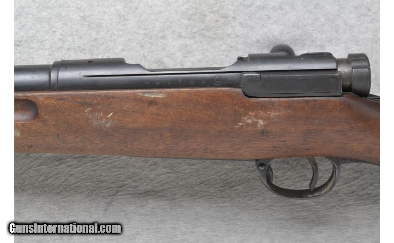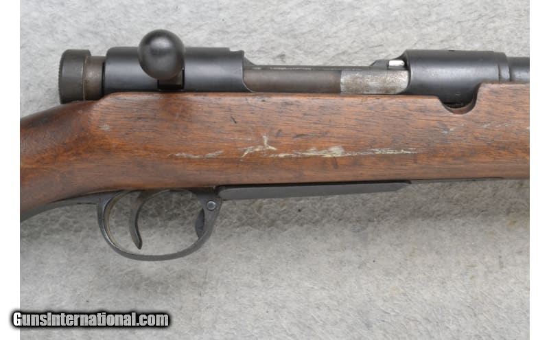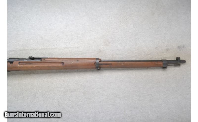 Description: This Arisaka Model 38 is a right hand bolt action rifle in 6.5x50mm Cal. It has a 31-inch barrel with a blade front sight with side protectors and numbered sliding notch middle sight. The forearm is a two-piece smooth walnut with finger grooves. The butt stock is smooth two piece walnut with a smooth metal and walnut pistol grip and metal butt plate. 6.5x50mm SOLD Chambers: 4 round internal trapdoor magazine Metal Condition: Good with handling marks and mild freckling Wood Condition: Good with handling marks Bore Condition: Good Barrels: 31 inches Stock Dimensions: LOP 13 inches Fore End: Two piece smooth walnut with finger grooves Butt Pad: Metal butt plate Weight: 8.5 lbs Sights: Blade front sight with side protectors. Numbered sliding notch middle sight Item Location: Richfield, WI |