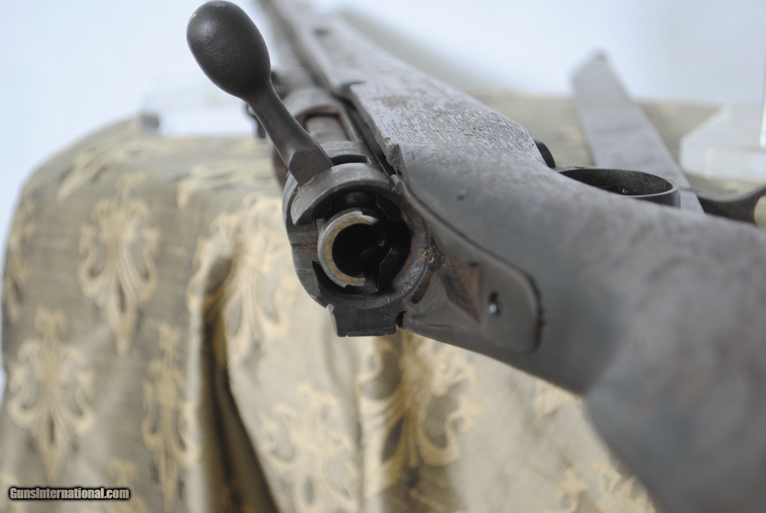 Description: Here is a Arisaka Training Rifle and Bayonet. This is the smooth bore, blank firing training rifle that can NOT be shot with live ammo as it is dangerous to so. Missing the bolt cap/safety, firing pin, trigger and handguard. Probably removed to prevent an accidental firing. Barrel is threaded just behing the ladder rear sight. Numerous Japanese markings on gun. Overall length of gun is 50". Barrel measures 31 1/2". Bayonet fits on gun and has arsenal makers marks. Weight of gun is 8 LBS 4 OZ. Shipping is $40. C&R eligible. For inquiries please call Guy - 407-721-3748 SOLD Curio/Relic: Yes |