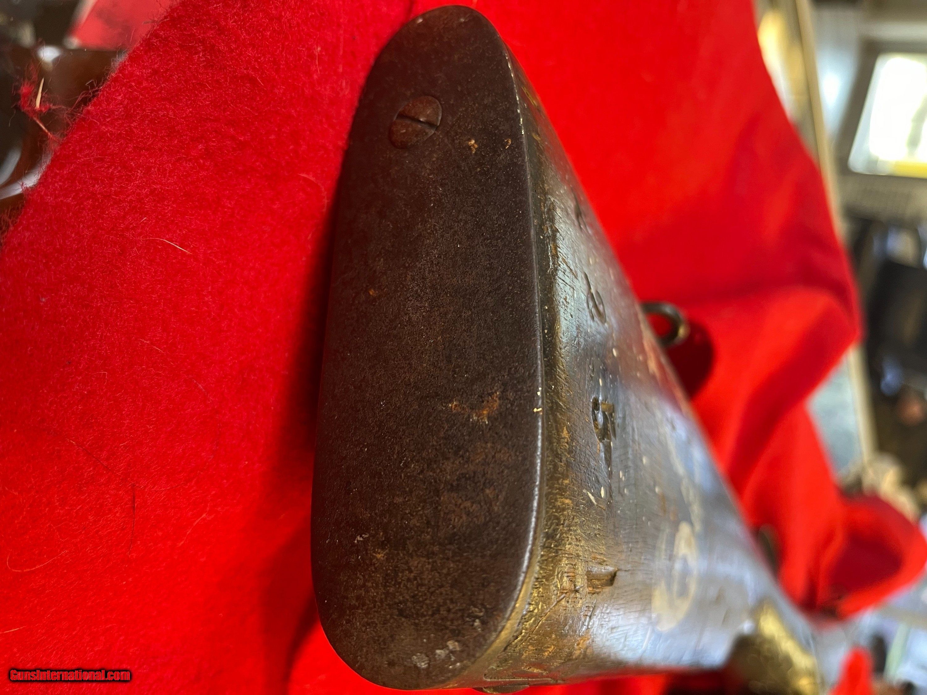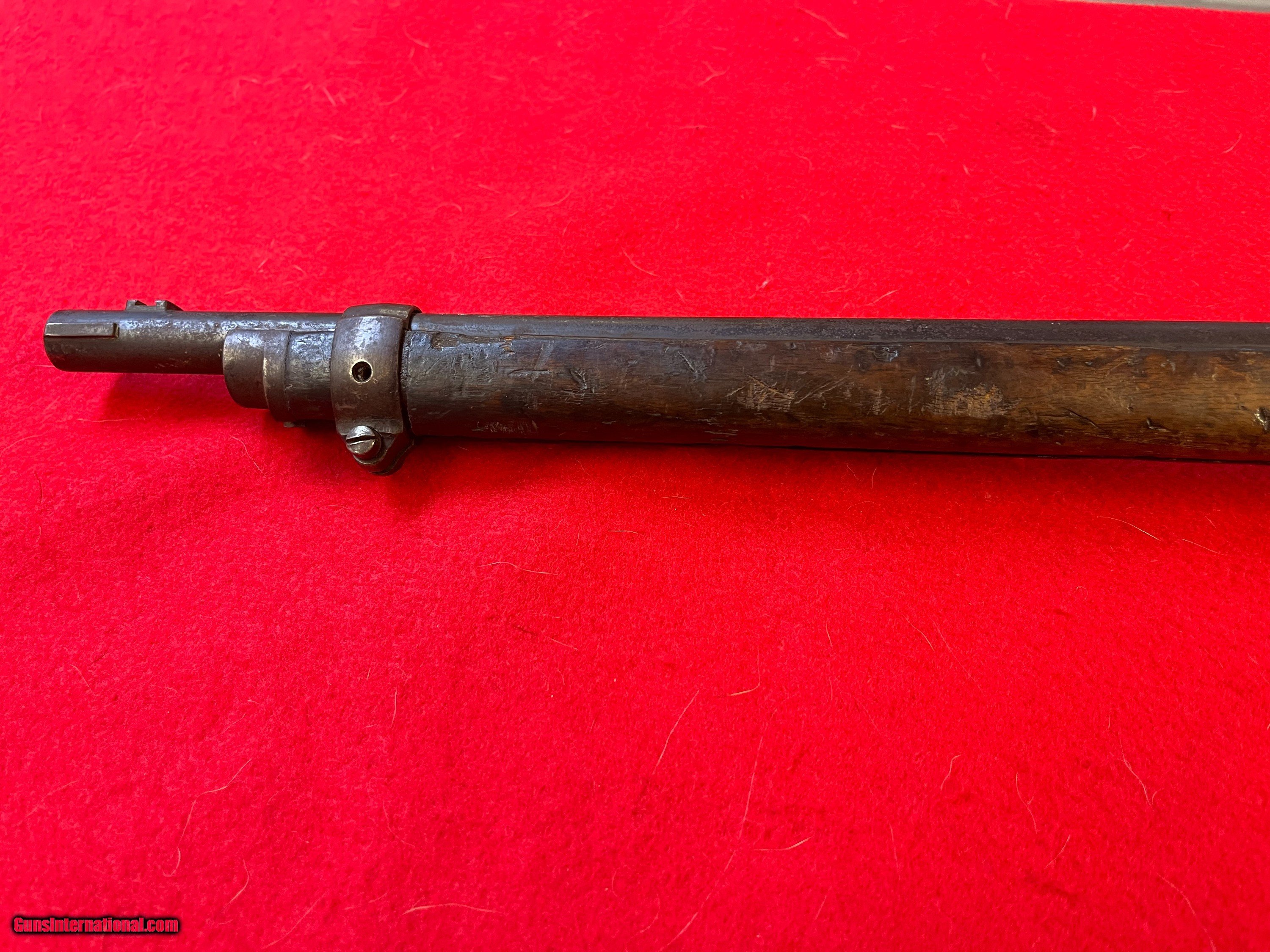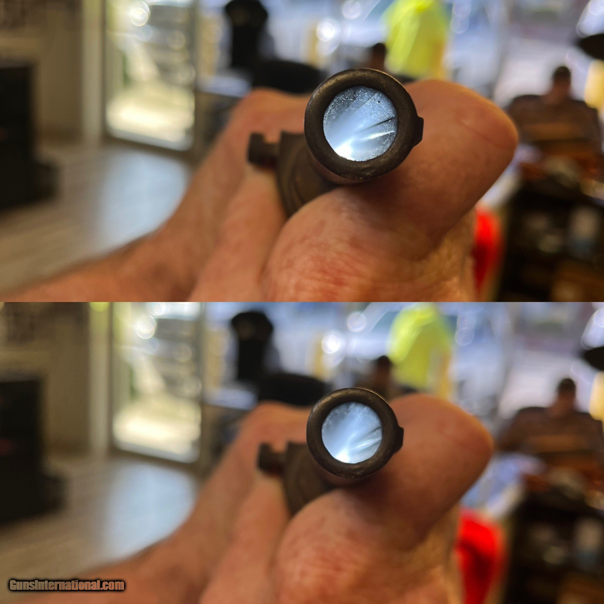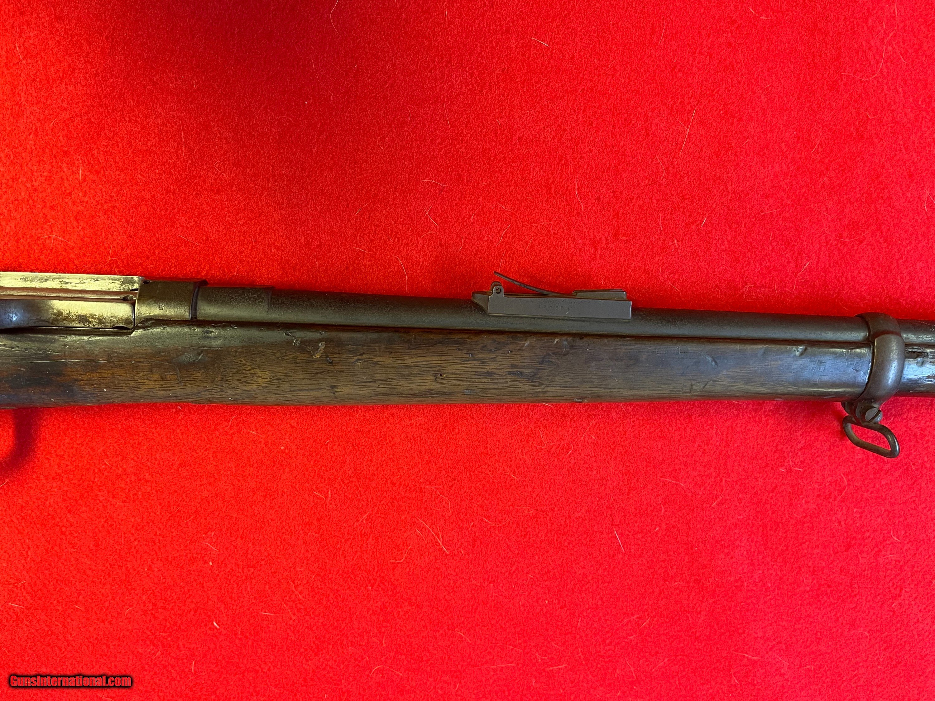 Description: Model 13 11-millimeter .(The original 11-millimeter Murata cartridge used an approximately 6-millimeter Boxer-type primer.) single-shot, bolt-action. 32" Barrel Barrel and receiver are a dark brown patina with surface oxidation visible. Rifling and bore are in amazing condition considering age. Stock shows heavy handling and usage wear. Action functions correctly Missing parts of the original sights. Cleaning rod is missing Serial number on gun and bolt are not matching. Kanji on left: Tokyo Artillery Kudo Arsenal Imerial Japanese Army Murata Rifle Kanji on right shows the gun was manufactured in 1885 SOLD Rifle Caliber: 11.15x42R Manufacturer: Japan Model: Murata Serial Number: 137384 Barrel Length: 32 Condition: used Metal Condition: patina Wood Condition: heavy usage Bore Condition: very good |