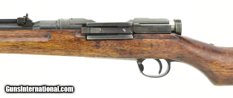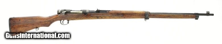 Nagoya Type 97 6.5 Japanese caliber rifle. Scarce Japanese WWII sniper rifle, made in 1937. Key features are: Type 97 marking on top of receiver, scope base on left-side of receiver, serial number and manufacturers mark moved to front of receiver so they are visible, modified stock to accommodate scope (not included) and base. Metal has approximately 90% blue. Wood is fine with added finish, no cracks or chips. Action functions correctly. Bolt is from a Type 38 rifle and mum is ground, as most were. Missing cleaning rod. This series I Type 97 were made by the Nagoya arsenal. Fewer than 23,000 Type 97 sniper rifles were manufactured and most were lost during WWII. Good ones are hard to find. Here’s your chance to add a Type 97 to your collection for a very reasonable price.