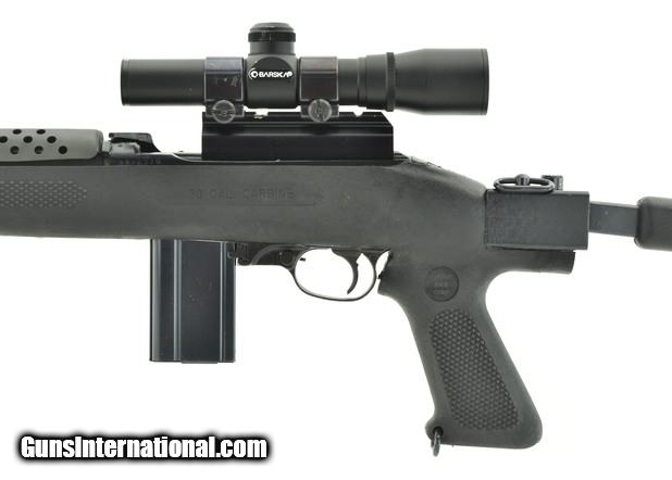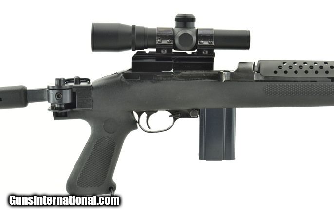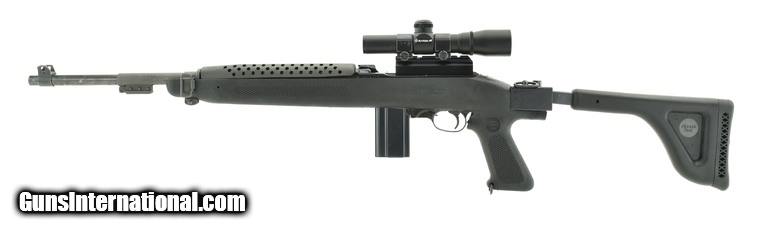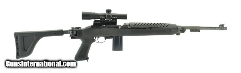 Description: Johnson M1 .30 caliber carbine. Post-war commercial M1 carbine with folding stock and scope. In very good condition.