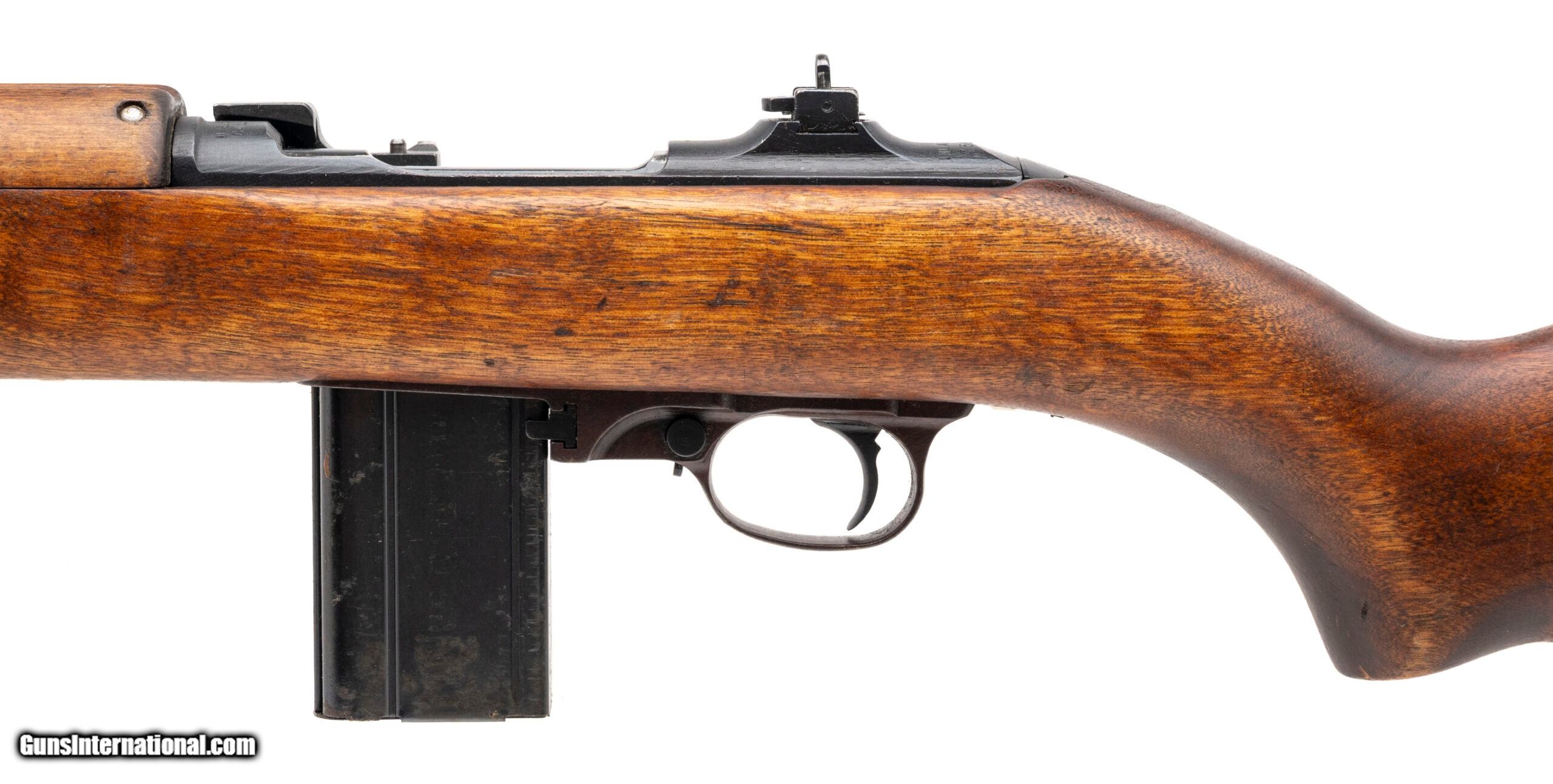 Description: "Serial number 756407. Made in June 1943 by the Inland Division of General Motors with an 18-inch barrel that has a bright bore with strong visible rifling. Equipped with a World War II production flip sight, a post war flip safety, a M2 magazine release, a World War II flat bolt, an Inland trigger group & Type 1 Barrel Band. The furniture was made during WW2 with a low wood oval cut stock made by Standard Products & a 2-rivet handguard. After WW2 this carbine was issued to the Austrian Federal Rural Police force, specifically to the state of OberoĆsterreich (Upper Austria). Overall condition is excellent although the gun was refinished. Comes with one original 15-round magazine. Price: $2,450.00 Contact Seller |
