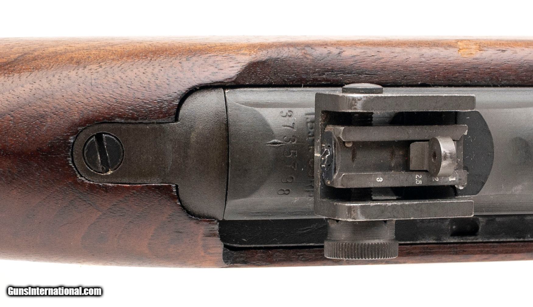 Description: "Serial number 3735798. Made in 1943 with a 18-inch Inland Division of GM barrel that has a bright bore with strong visible rifling. Although this gun was made during World War II, it went through a post-war arsenal level service life extension rebuild program that resulted in it being equipped with a milled adjustable rear sight assembly, a flip safety & a Type 3 bayonet lug barrel band. It is also equipped with a 2-rivet handguard & a World War II-production low wood oval cut stock that was made by the Trimble Nursery & Furniture Co. for National Postal Meter. A Springfield Armory post-war rebuild cartouche can be observed on the left side just above the trigger. Condition overall is very good with original factory phosphate finish across the metallic parts but some discoloration is noted on the wood. Comes with a USGI 30-round detachable box magazine. Curio/Relic: Yes Price: $1,450.00 Contact Seller |