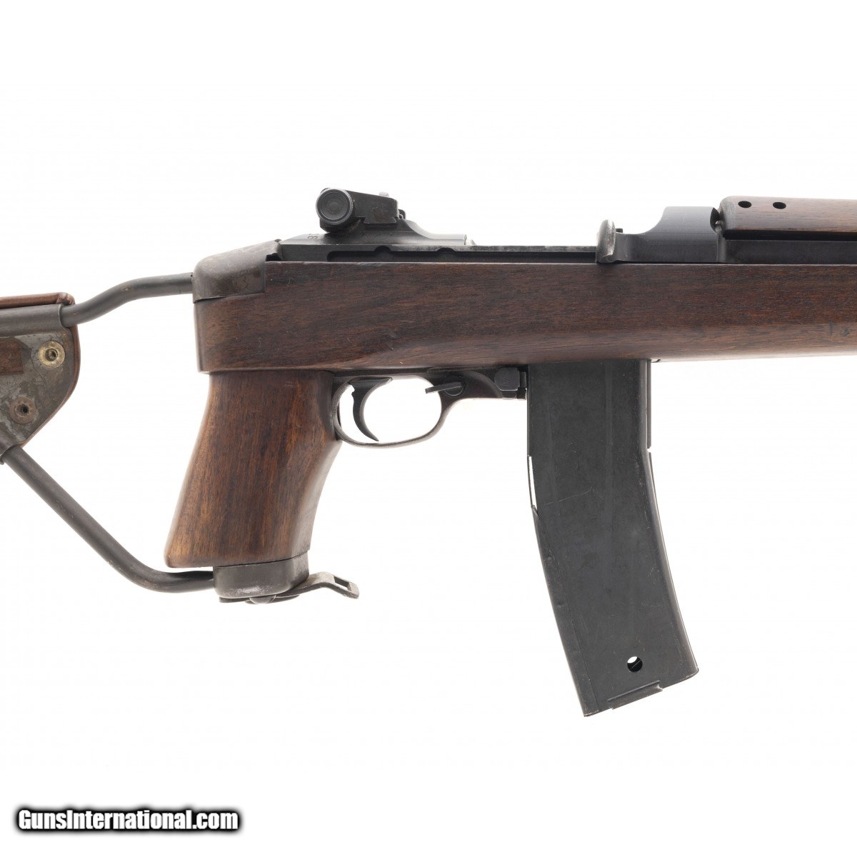WWII U.S. military Carbine. This model was manufactured in 3-1943. Bore is original and is excellent with strong rifling. Stock is a commercial paratrooper-style replacement and the condition is very good with minimal wear. Comes with a 30rd magazine. Overall condition is very good.