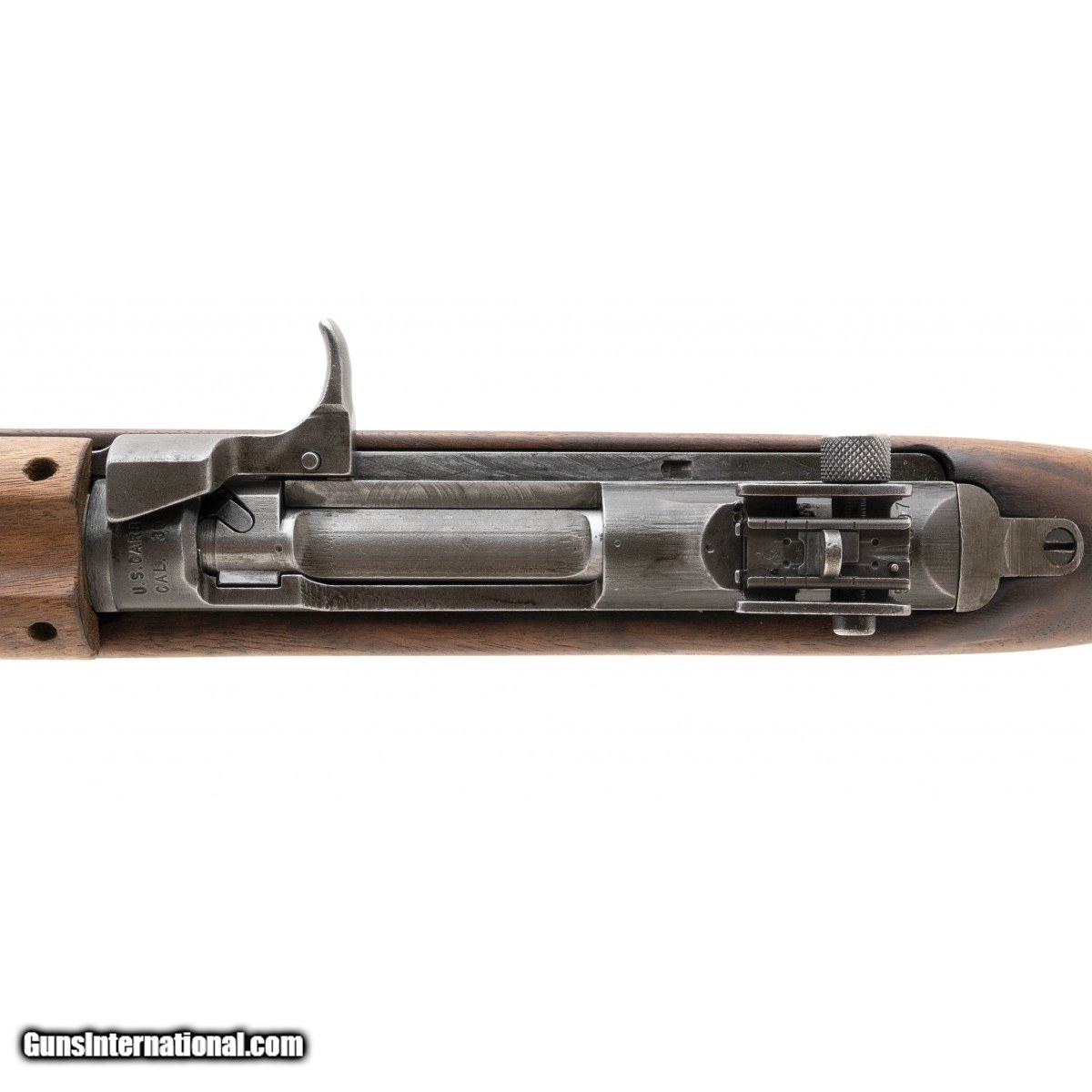 Description: " WWII U.S. military carbine made in 1944 and later arsenal refurbished. The barrel is marked Inland and dated 1944. The bore is excellent. The trigger housing are Winchester, the upper forend is marked Saginaw and the front sight is marked Underwood, the rest is original Inland parts. The stock has been sanded, the ""IO"" cartouche is still visible. Overall excellent. SOLD |