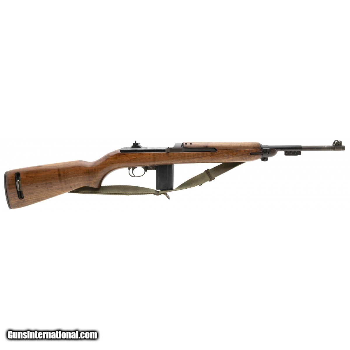 Description: " WWII U.S. military carbine made by Inland in 1944, and later arsenal refurbished. The barrel is marked Inland Division and is dated February 1944. The bore is excellent. Has the early L-type flip sight. The stock is Underwood and is marked ""MU"". The stock has been lightly sanded and varnished and has a Winchester buttplate. Overall very good condition. Comes with sling and oiler. SOLD |