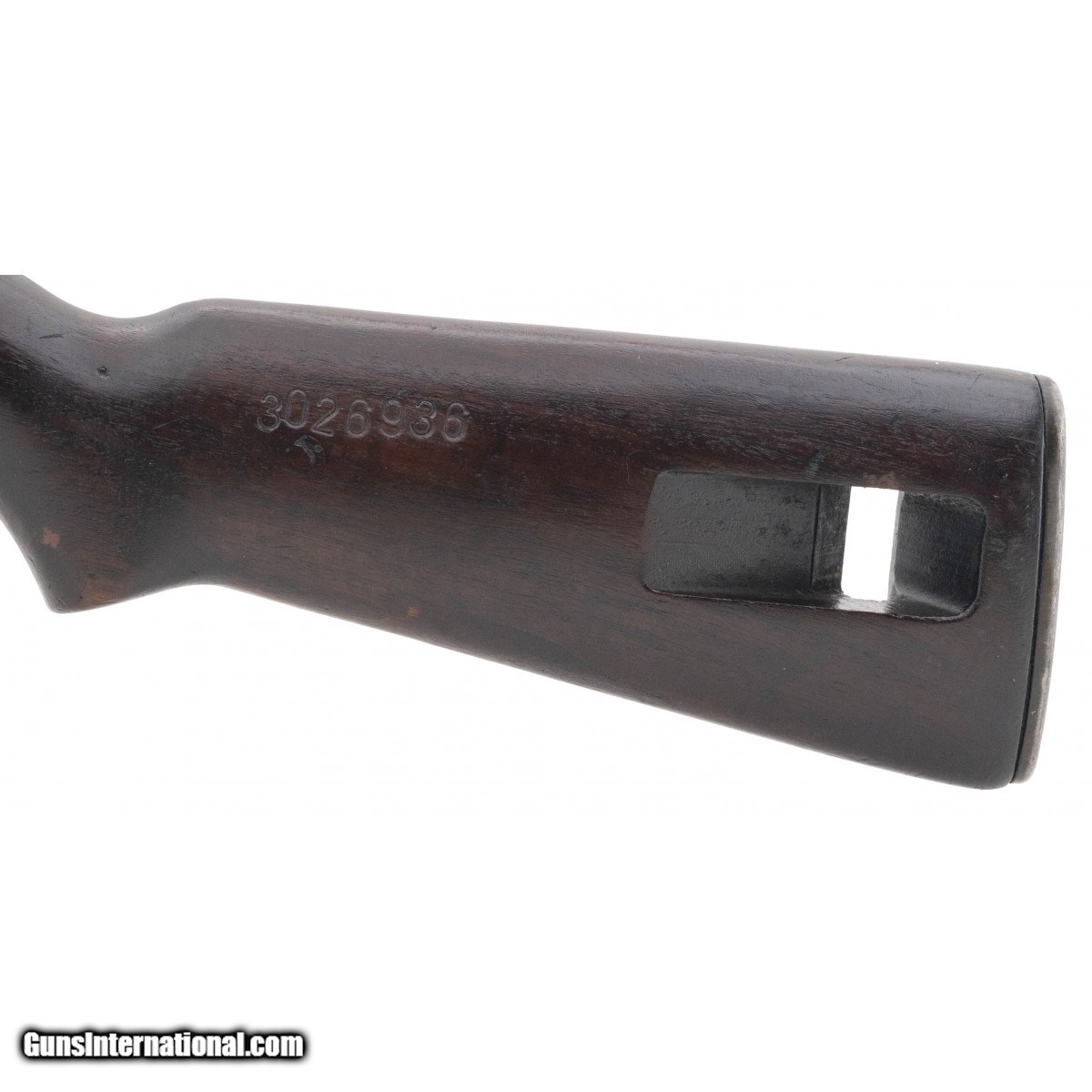 SN: 3026936. WWII U.S. military carbine made in 1943 and refurbished for Korea. At some point it was reimported, with an import mark under the barrel. The Barrel is marked Inland and dated 1943. The bore is excellent and the action works perfectly. The low wall stock is in very good condition with some ""combat wear"" and a matching serial number on the left side. Type 3 sights, flip style safety, bayonet lug. Overall excellent condition.