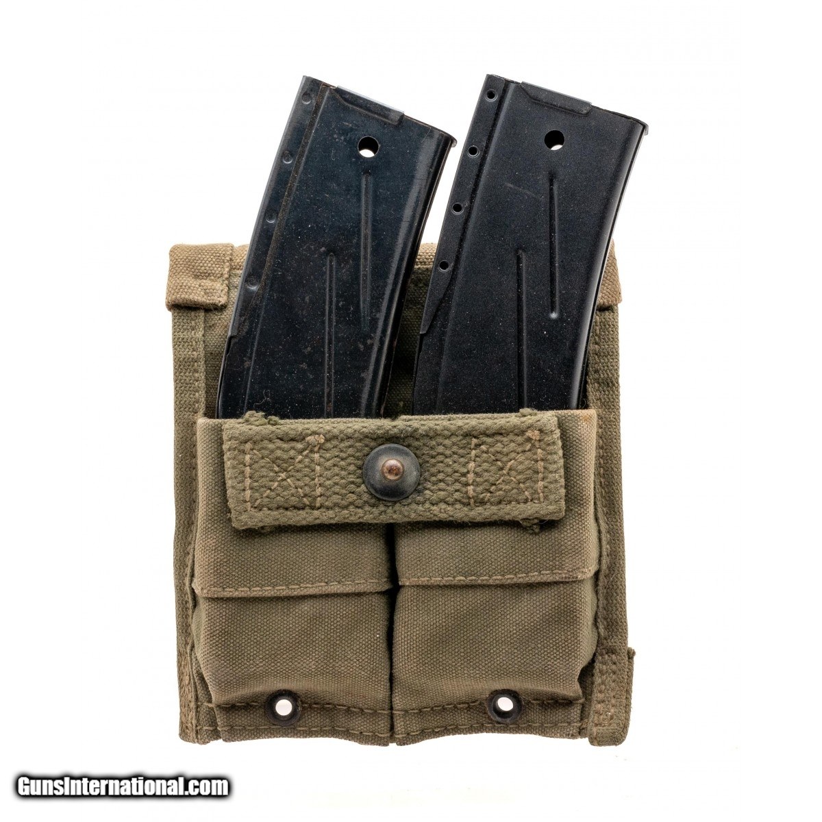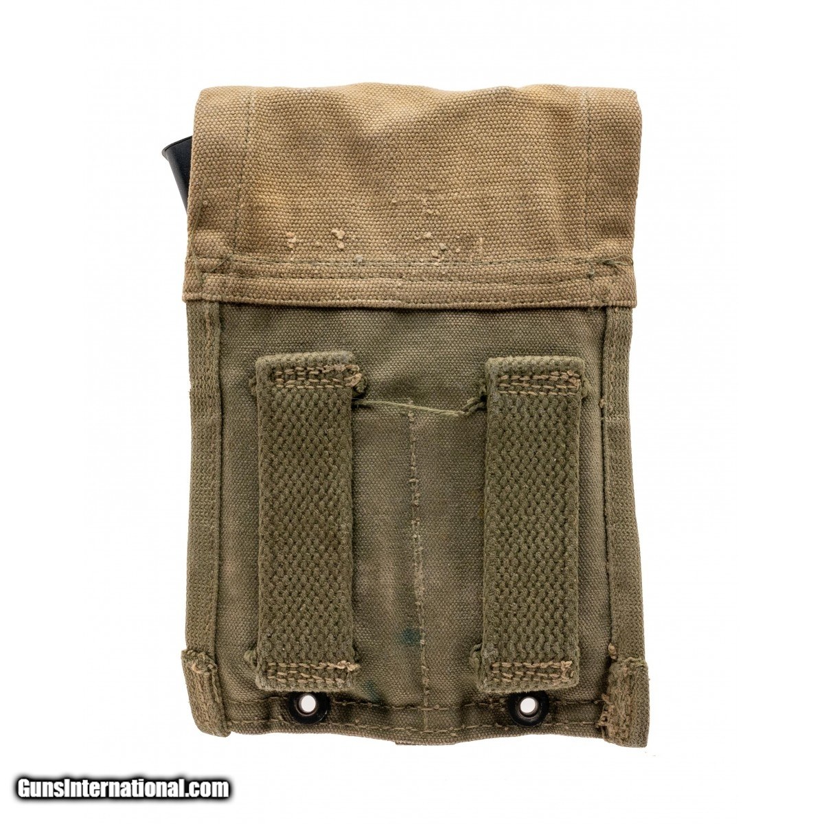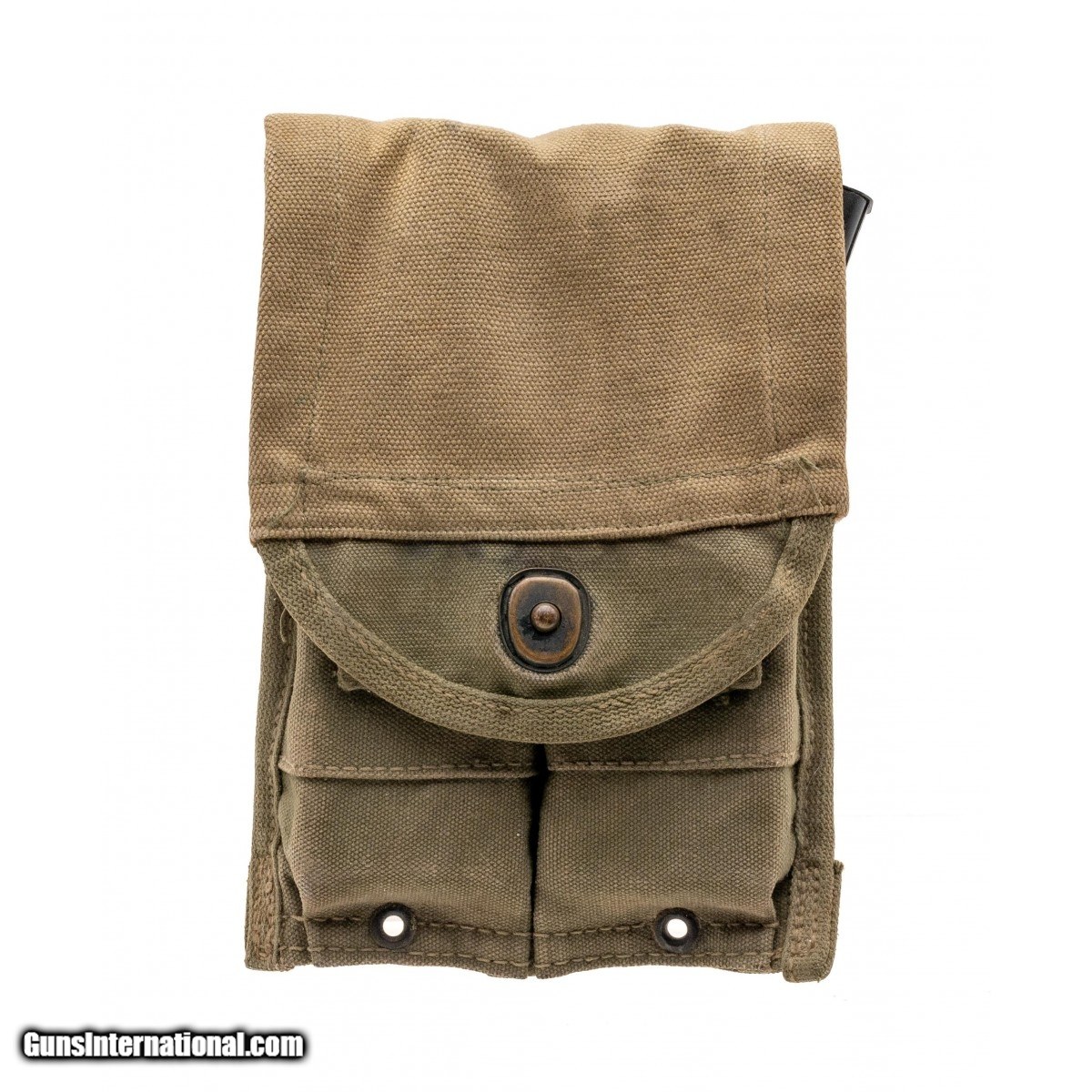 Description: " SN:5513287. Made in 1944, .30 Carbine with a 18"" barrel. Bore is in excellent condition. WWII Carbine With low wall oval cut stock, type 3 reproduction rear sight and type 3 barrel band. Overall condition is very good. Comes with 8 magazine ammo pouch and bayonet. Consignment. SOLD |