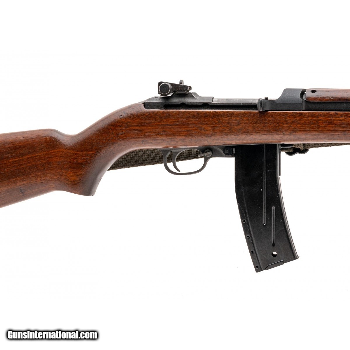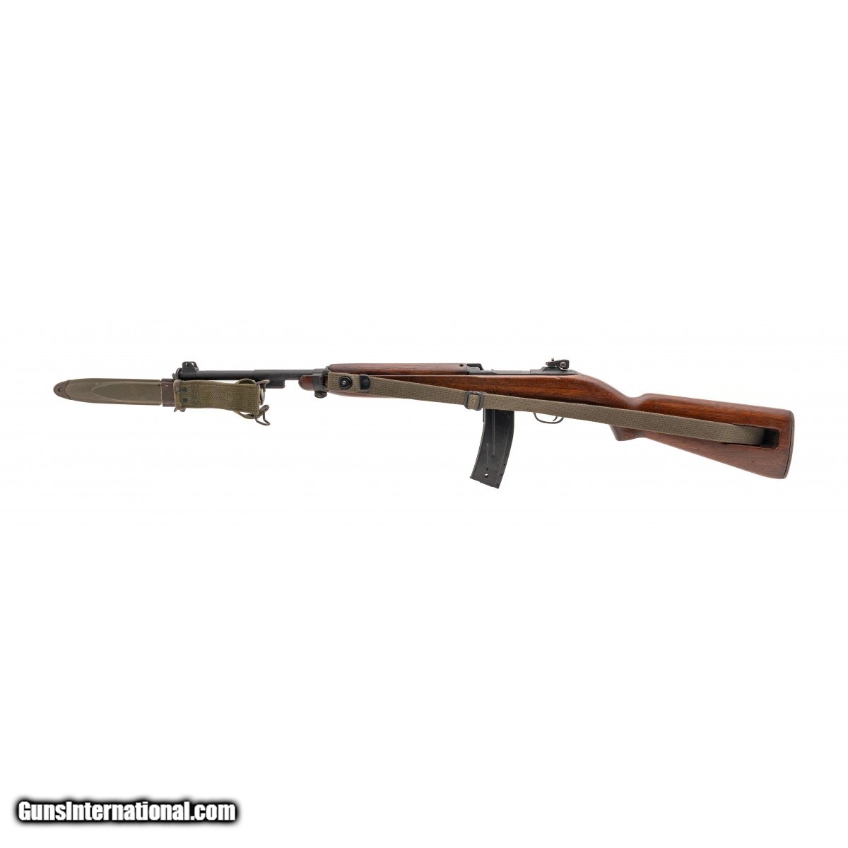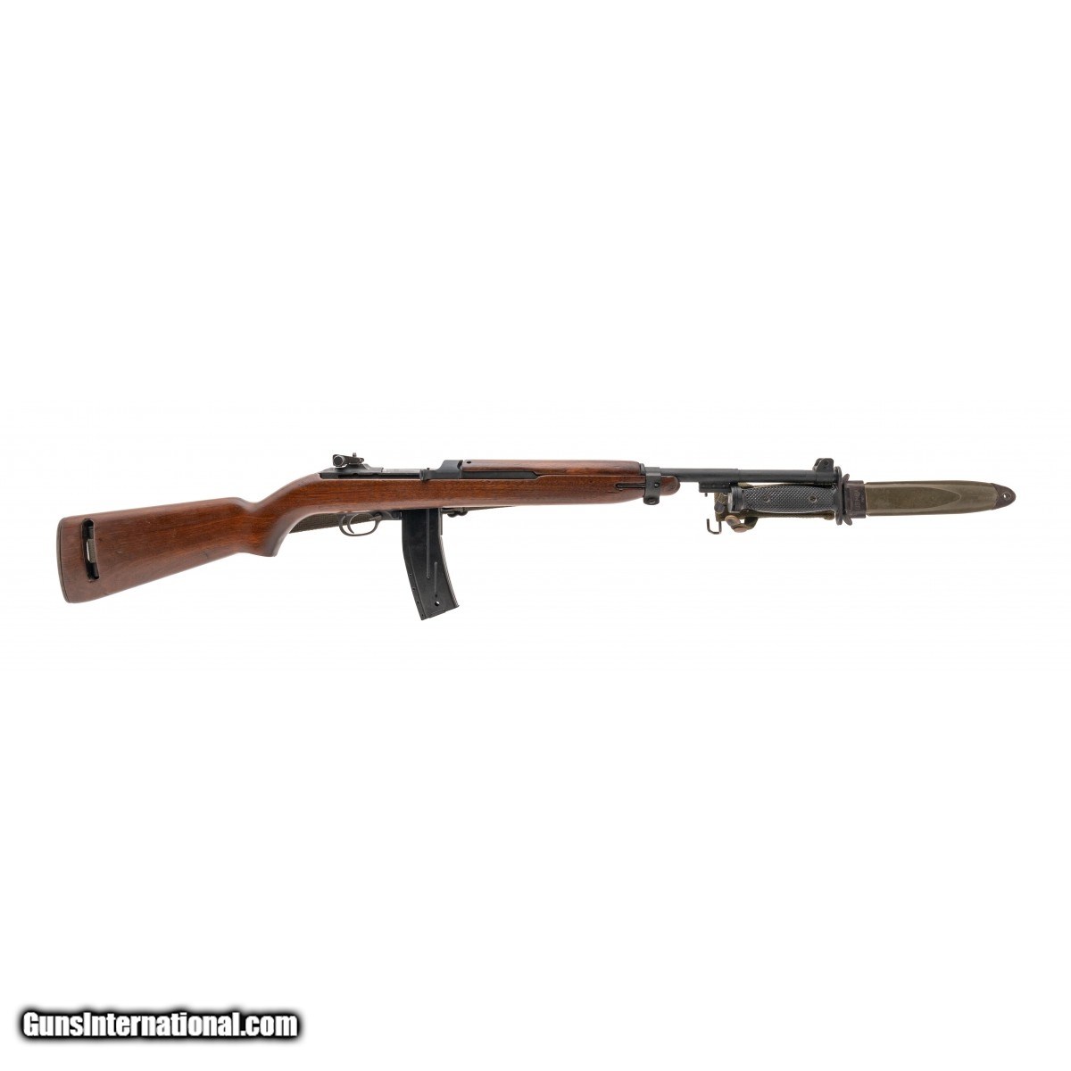 SN:5513287. Made in 1944, .30 Carbine with a 18"" barrel. Bore is in excellent condition. WWII Carbine With low wall oval cut stock, type 3 reproduction rear sight and type 3 barrel band. Overall condition is very good. Comes with 8 magazine ammo pouch and bayonet. Consignment.