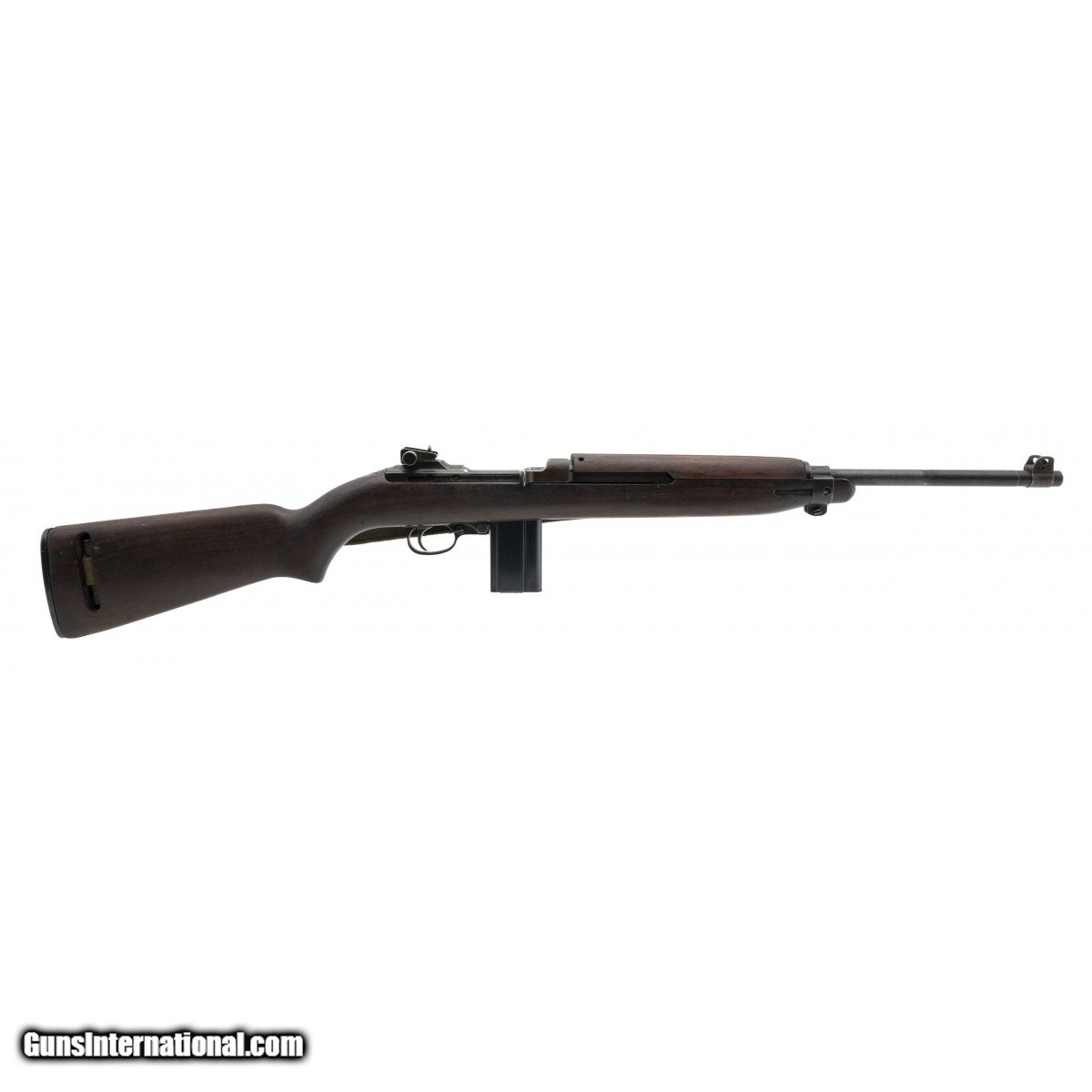 SN: 661339. Made in 1943. .30 carbine with a 18"" ""5-52"" dated barrel. Bore is bright with strong rifling. WWII M1 carbine with adjustable stamped construction rear sight and type 2 barrel band. Parkerized finish is thinning around the barrel with areas beginning to transition to a brown patina. Type 3 stock is in good condition with expected handling wear noted. Action functions properly. Overall good condition.