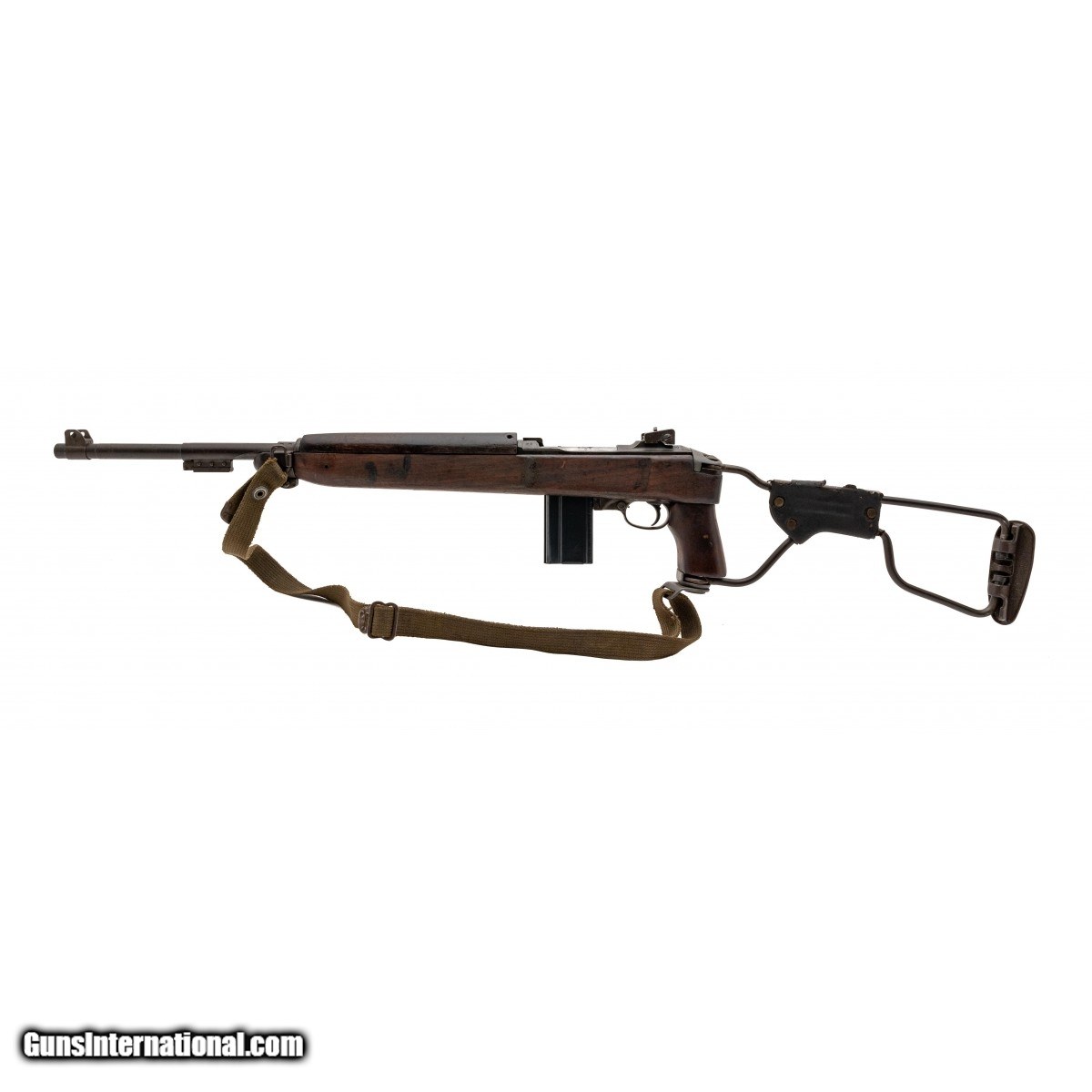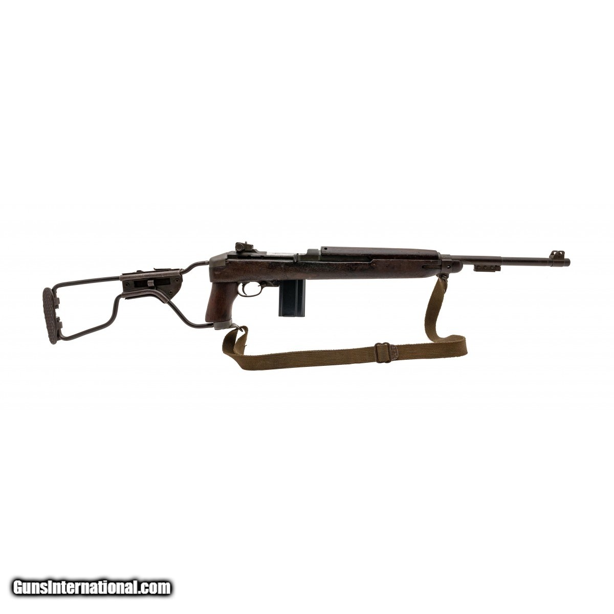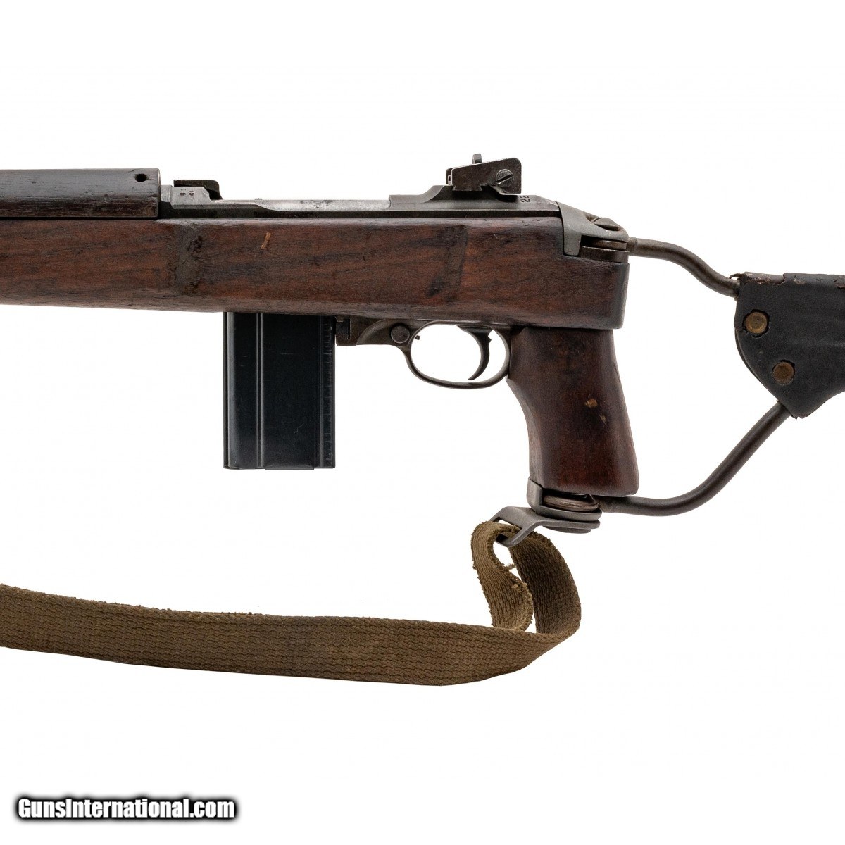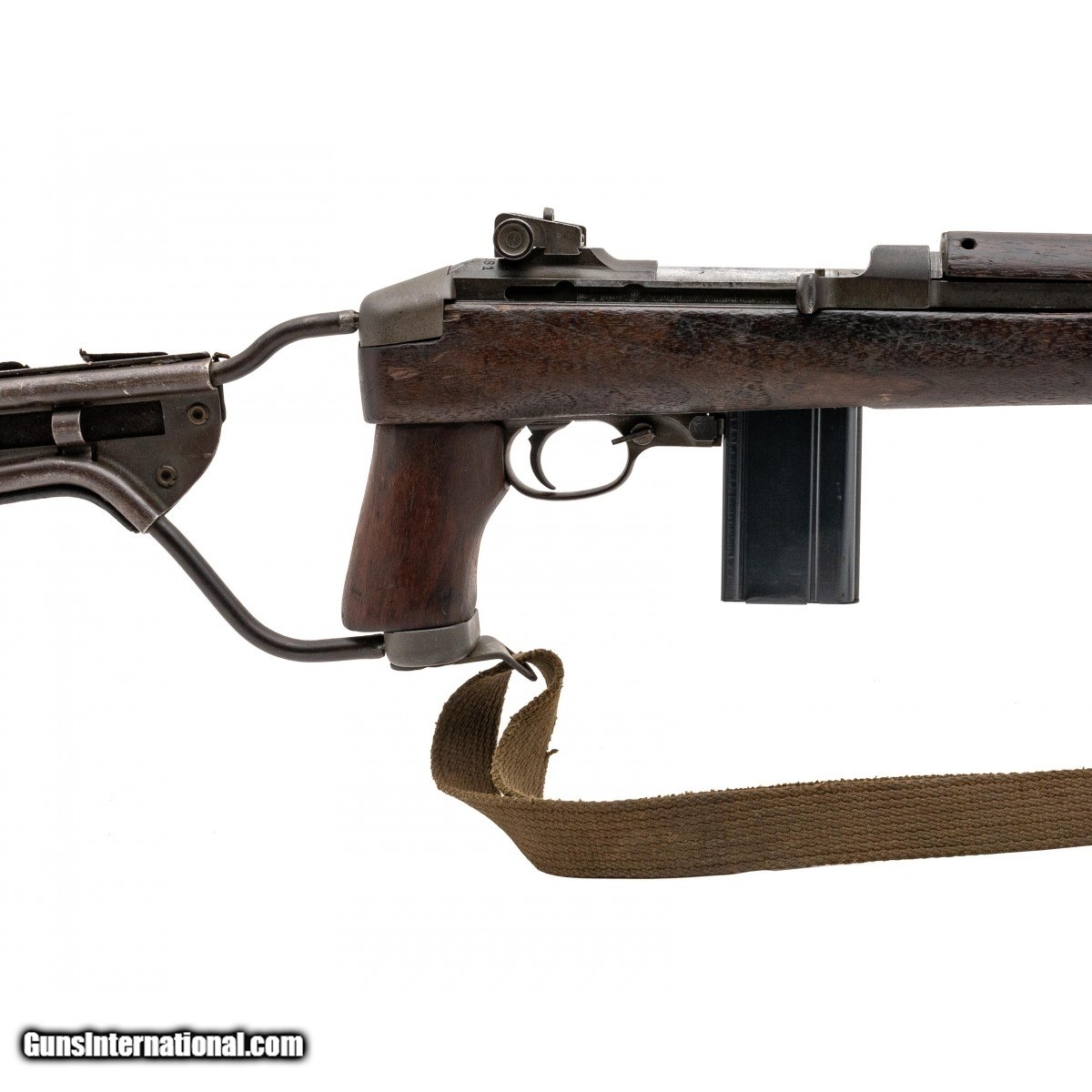 SN:228681. Made in 1943. .30 carbine with a 18"" 1943 dated barrel. Bore is in very good condition with light frosting but rifling remains strong . WWII military first run Paratrooper carbine. Metal is in very good condition with spot of gray patina. Two piece Paratrooper folding stock is in good condition. Has type 3 barrel band and type 2 rear sight. Overall condition is good. (CONSIGNMENT)