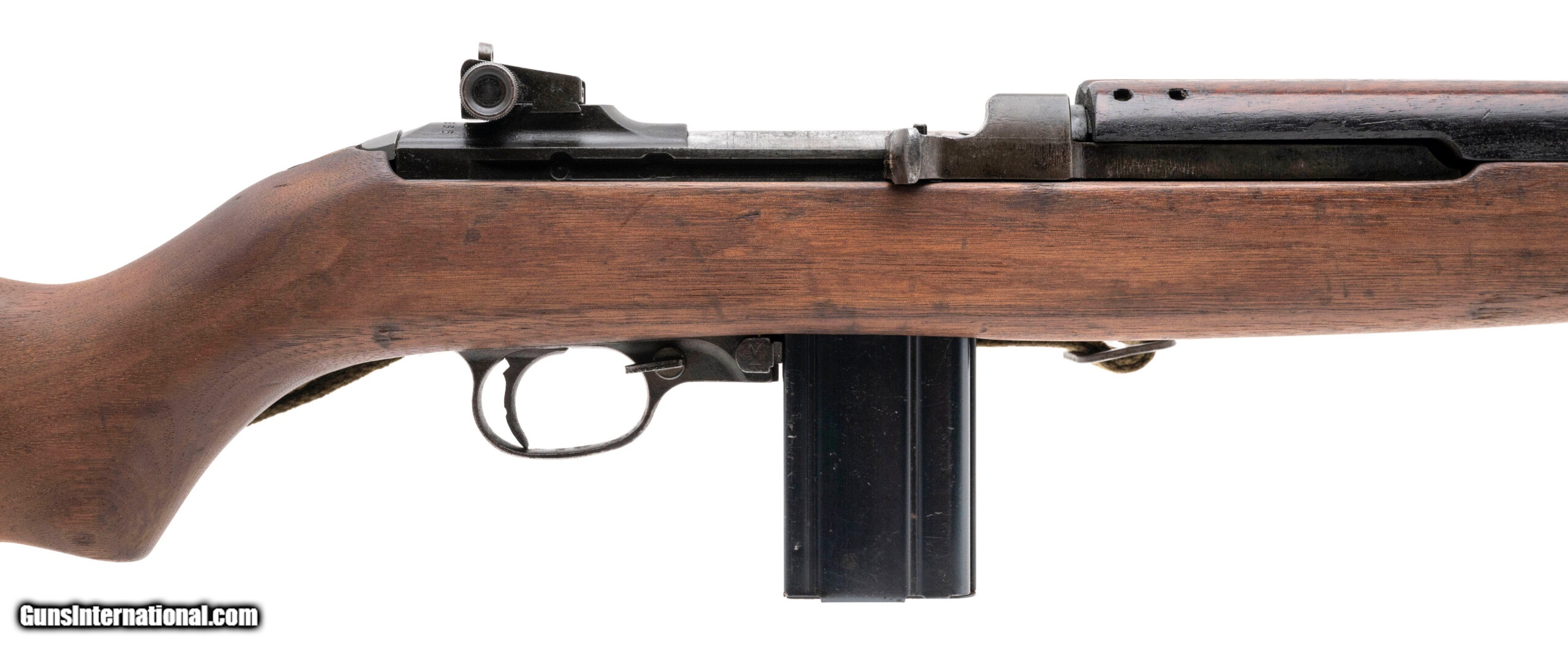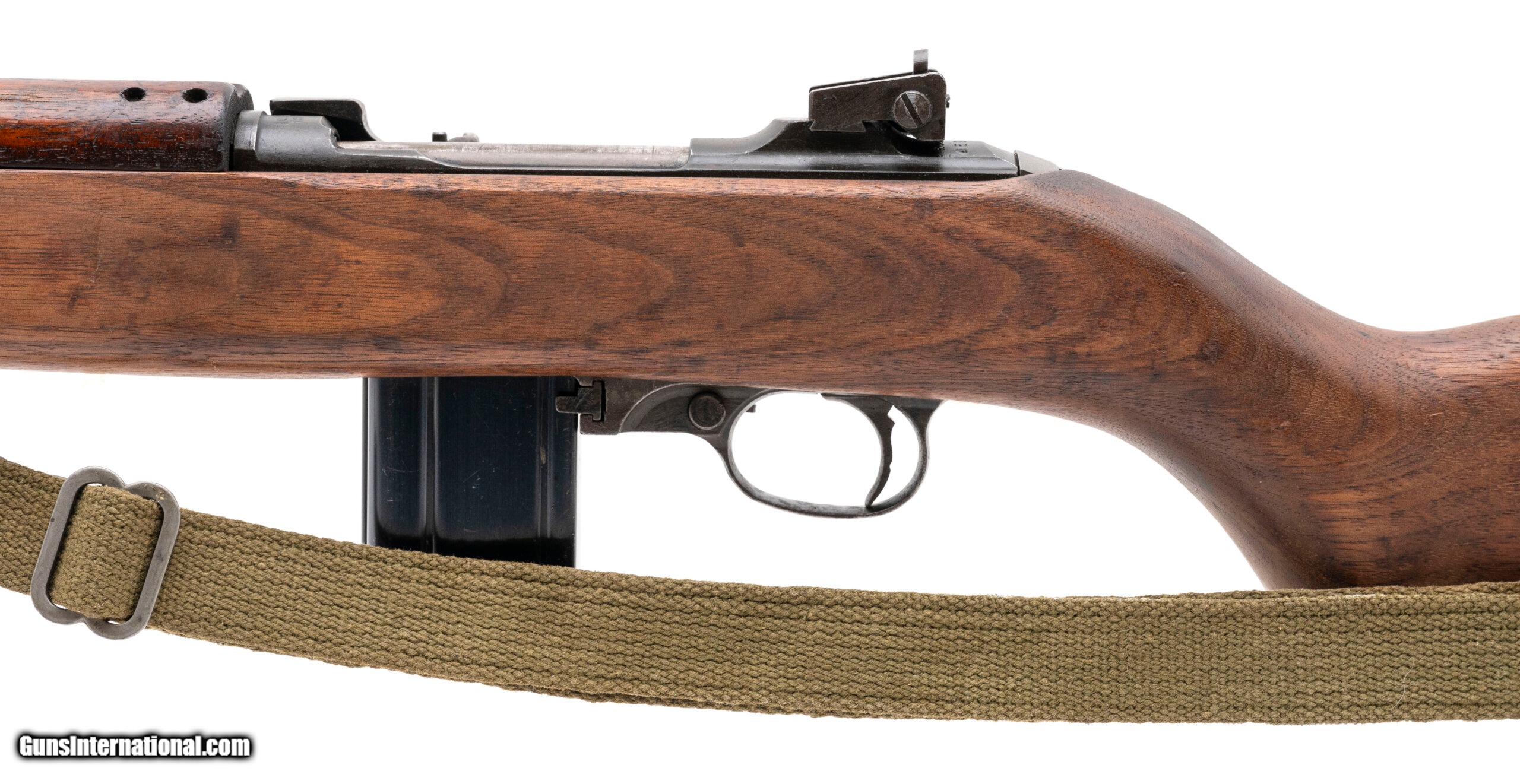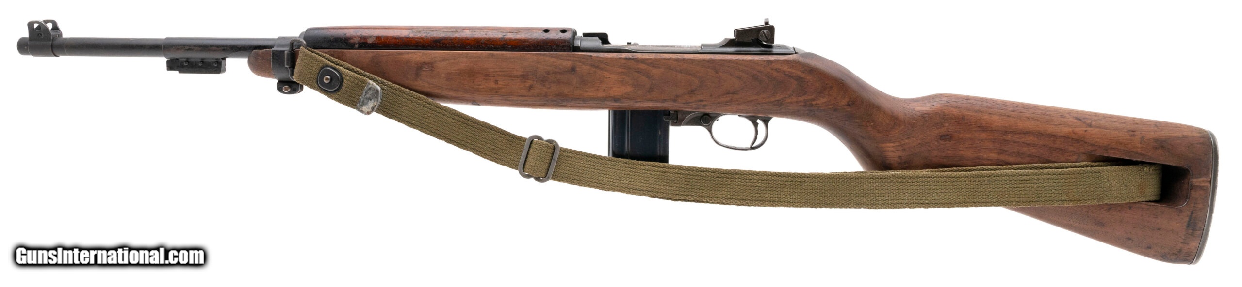 Description: "Serial No. 4596686, made circa late 1943-early 1944, .30 Carbine, 18" round barrel marked “INLAND MFG. DIV/GENERAL MOTORS/11-43". Bore is bright and shiny with strong rifling visible. Inland Div Type C front band has been added, barrel band is marked “JI". Rear type B milled sight is marked “SA". Stock is in overall good condition with no cartouches noted. Action is smooth and functions correctly. Comes with sling and oiler.CONSIGNMENT SOLD Curio/Relic: Yes |