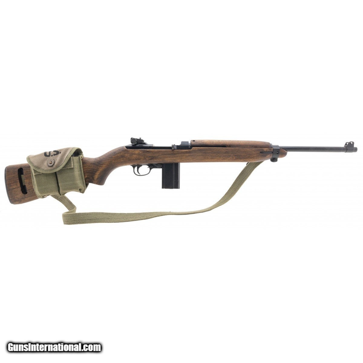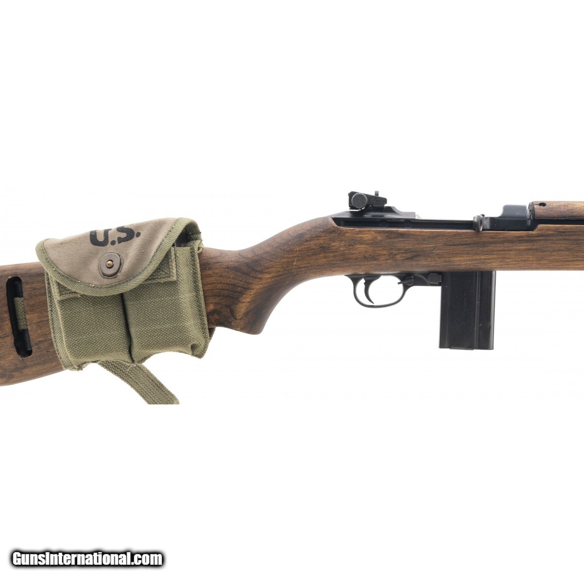 SN: 32118035. WWII U.S. military carbine made by Saginaw Steer Gear in 1943. The barrel is stamped ""Underwood 10-2"". The bore is excellent. Has Highwall oval cut stock in very good condition. TYpe 2 barrel band , stamped adjustable rear sight and flip safety. Overall very good plus condition. Comes with sling and oiler and buttstock mag pouch.