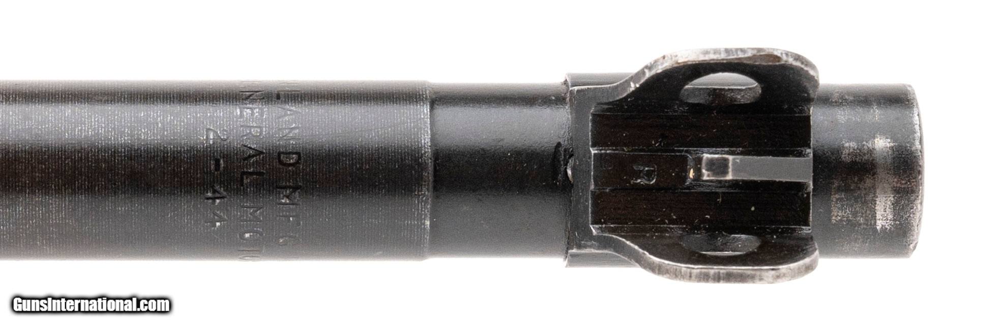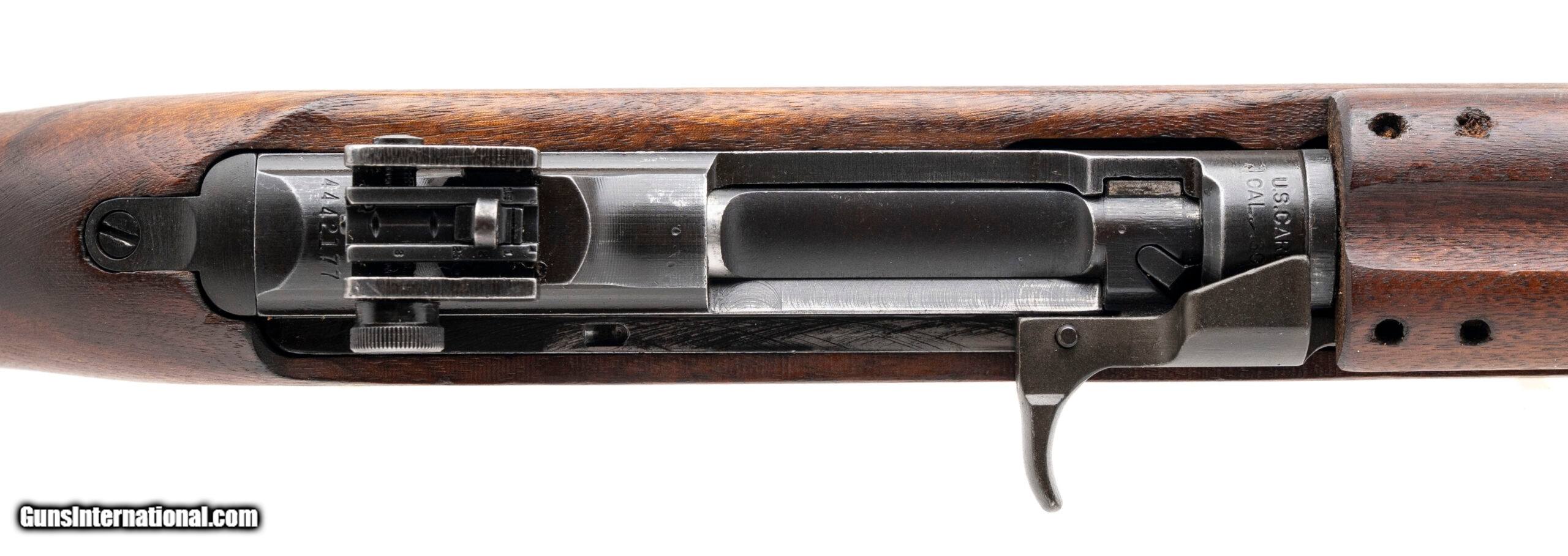 Description: "Serial No. 4442177, made late 1943, .30 Carbine, 18" round barrel marked “INLAND MFG / GENERAL MOTORS / 2-44", indicating an Inland-produced replacement barrel. Receiver was produced by Union Switch & Signal under the rarely seen ""UN-QUALITY"" subcontractor designation, making this one of the scarcer receiver variations in the M1 Carbine production family. Fitted with a bayonet lug barrel band marked “jm", the rifle retains its flat bolt, and features a Type II milled adjustable rear sight, which is unmarked correct for many postwar upgrades. The low wood potbelly stock is in excellent condition, and bears a distinct “FAT / 75" cartouche, denoting production or refurbishment by Fabbrica Armi Terni (FAT) in 1975 for postwar use by the Italian Carabinieri. Overall condition is excellent, showing minimal wear and clean metal surfaces. This carbine combines a rare U.S. wartime receiver with a postwar European stock. Action is smooth and functions correctly. Comes with box and cmp paperwork Consignment SOLD Curio/Relic: Yes |