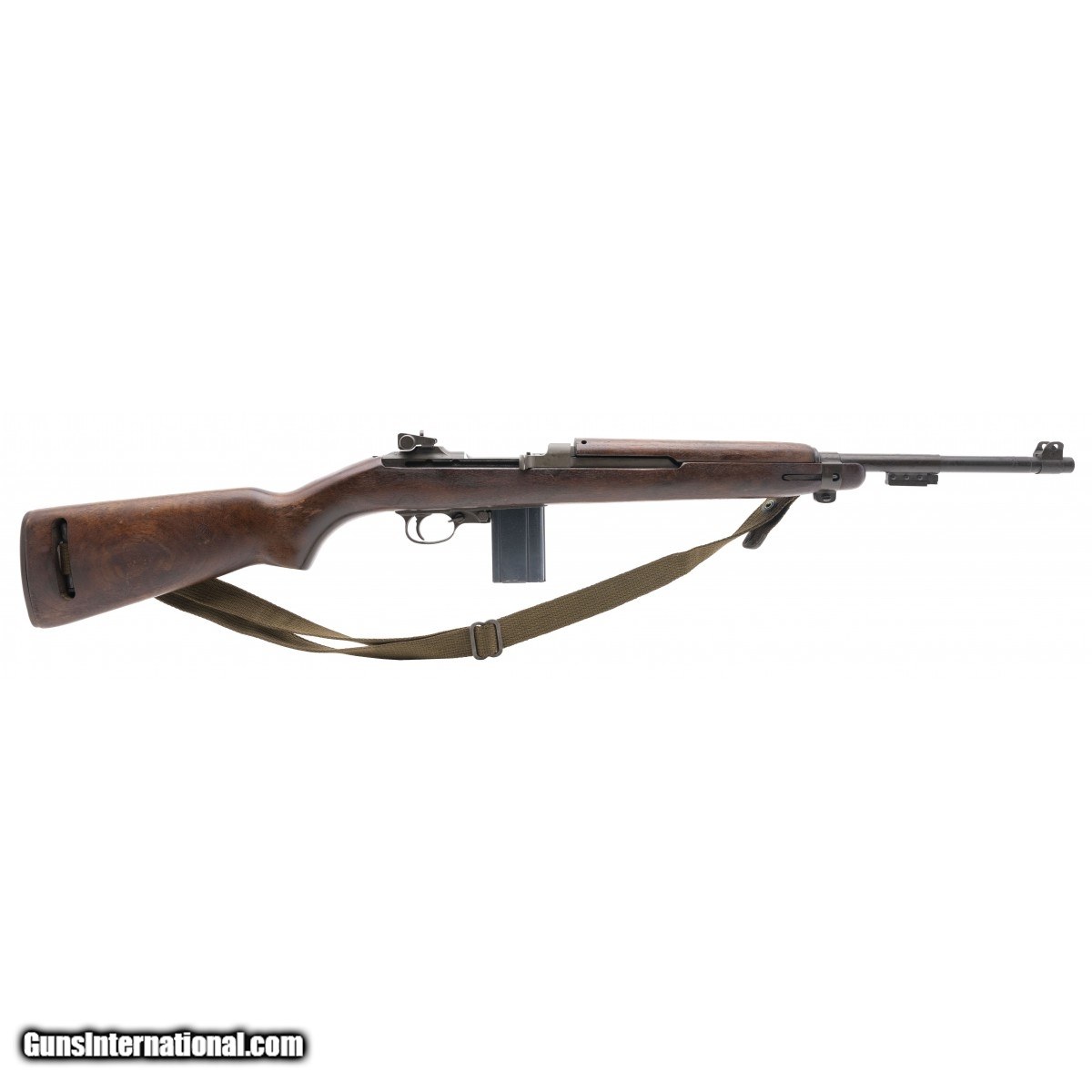 Serial No. 5294110, circa mid 1944, .30 carbine, 18"" round barrel marked ""INLAND MFG. DIV/GENERAL MOTORS/6-44"" Bore is bright and shiny with strong rifling noted. Post War Type 3 barrel band with bayonet lug is marked ""JM"". Type C stamped rear sight is marked ""I.R.C.O."" Low wood cut stock has expected nicks, dings and scratches, ordnance escutcheon is stamped on the right side. Action is smooth and functions correctly, comes with oiler and sling which is splitting . Consignment