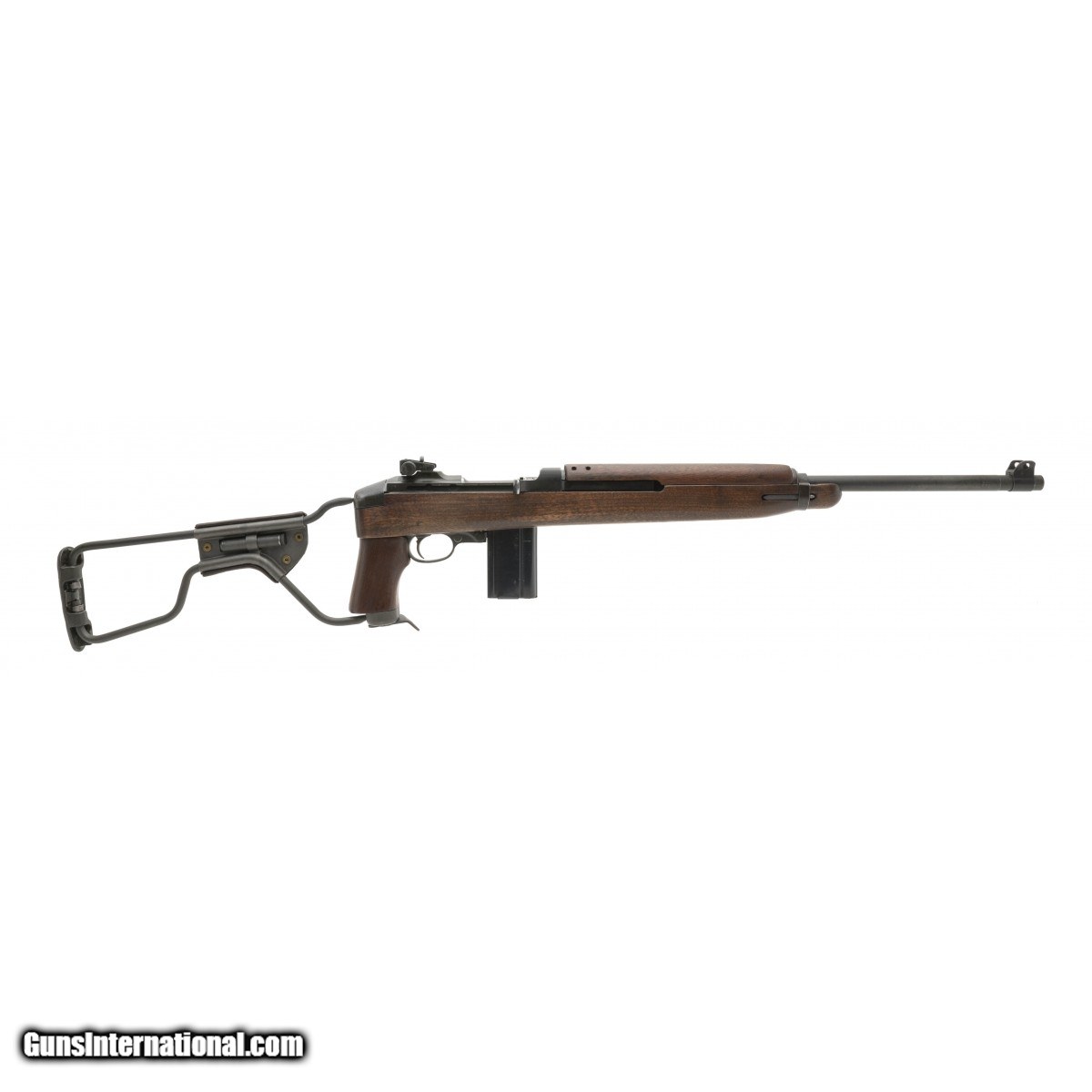 Description: " This Korean War era Inland M1A1 U.S. paratrooper carbine has a barrel date of 11-43 ( November 1943). It was most likely assembled at the Rock Issland Arsenal during the Korean War. The original Inland 30 carbine caliber barrel has an excellent bore with bright, strong rifling. The trigger group, operating rod, and bolt are Inland. The gun retains approx. 98% of its parkerized finish. The MIA! stock is fine with a amall almost unnoticable pepair at the top left in the bolt face area. The 4-rivet handguard is fine. The only stock marking is RI over 3 on he butt of the pistol grip. The buttplate has the expected numbers and letter cast in it. The rivets on the cheekpiece are correct and the oiler is present. The front band is an unmarked type 1. The rear sight is a Type III by the I.R. CO. which is correct for an Inland. The rifle is equipped with an Inland AI marked magazine. The action functions correctly. This fine Korean War era Inland M1A1 paratrooper carbine is ready for your collection. SOLD Curio/Relic: Yes |