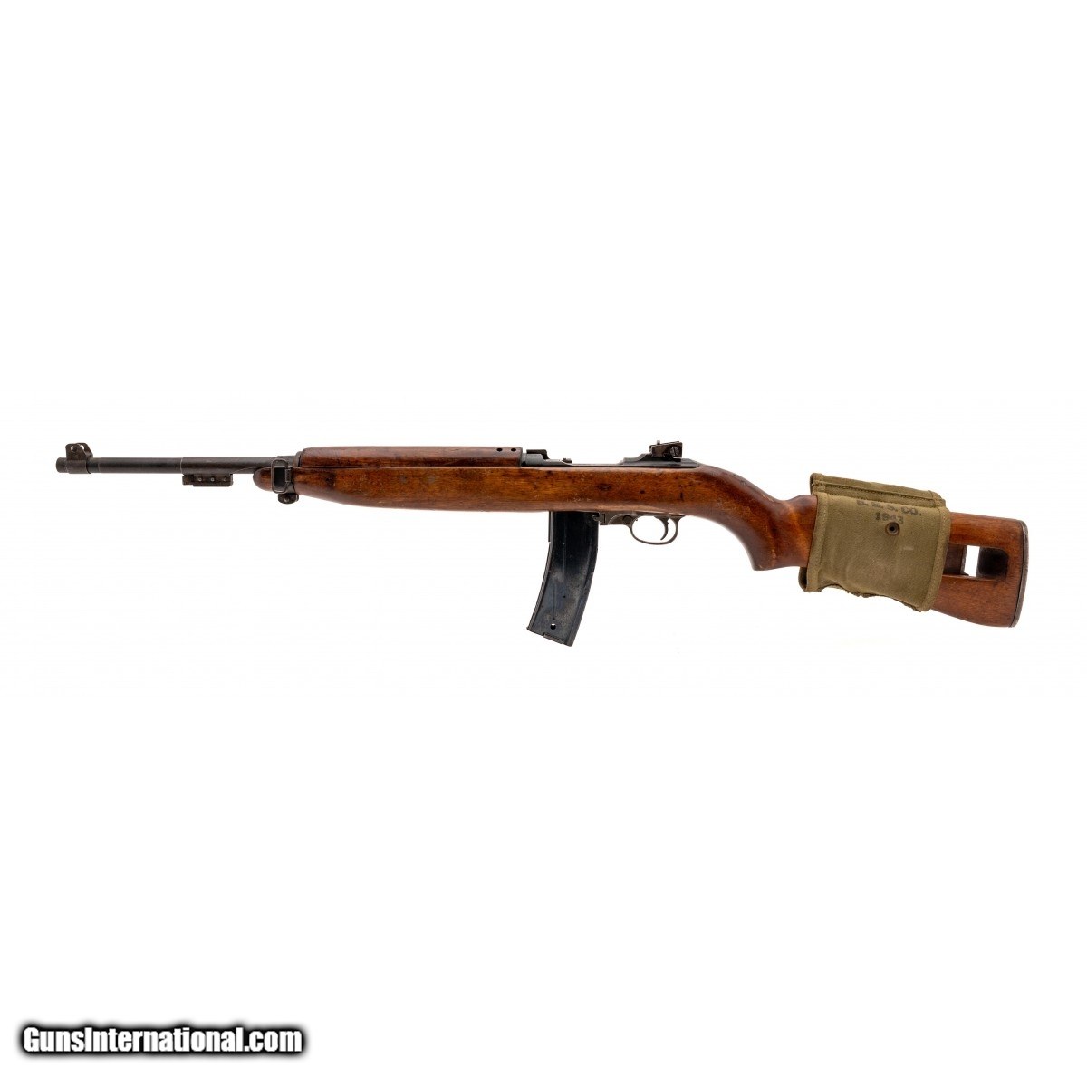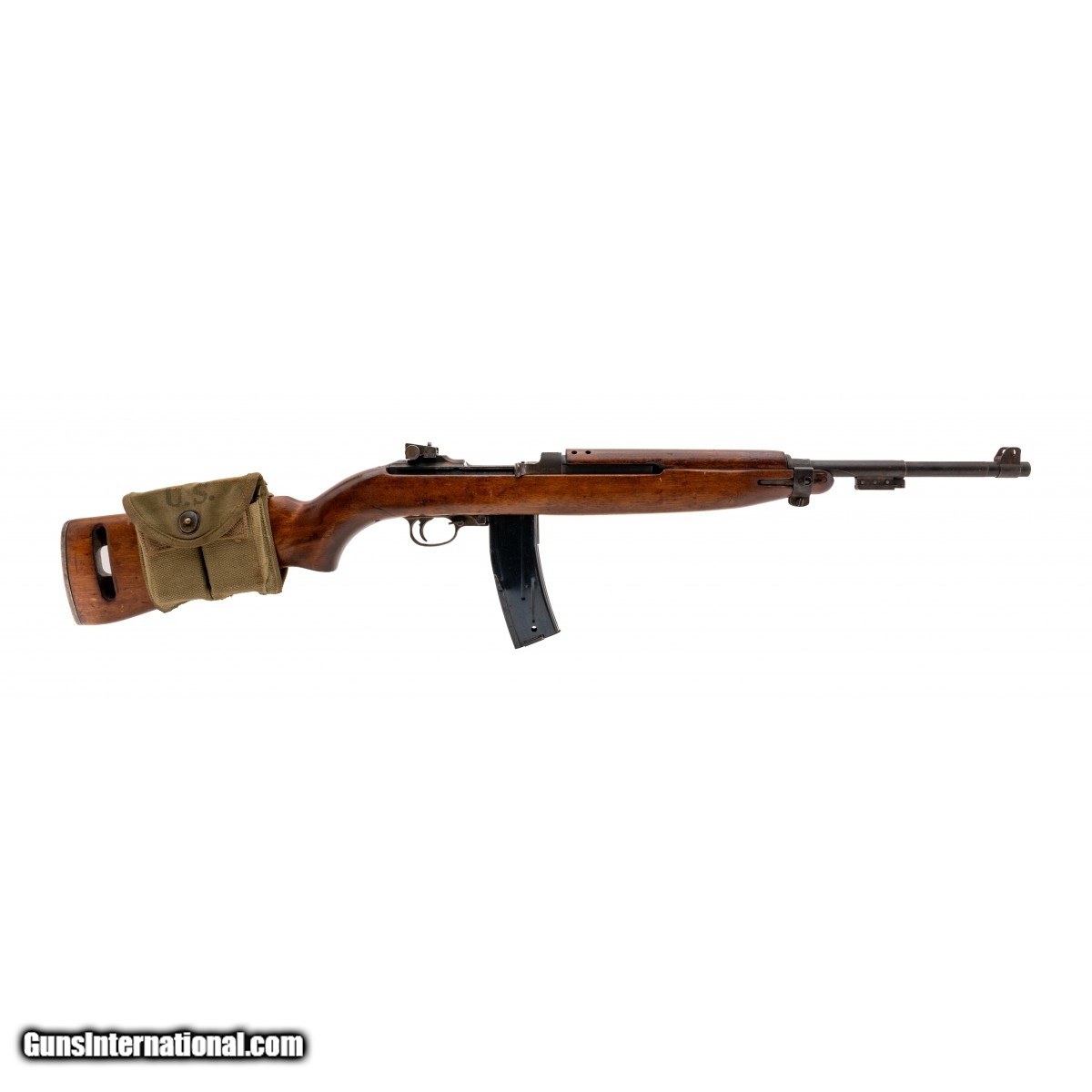 SN:1373390. Made in 1942, .30 Carbine with a 18"" barrel. Bore is in excellent condition. WWII carbine with low wall oval cut stock, type 3 barrel band and type 2 rear sight. Overall condition is very good. Comes with ammo pouch.