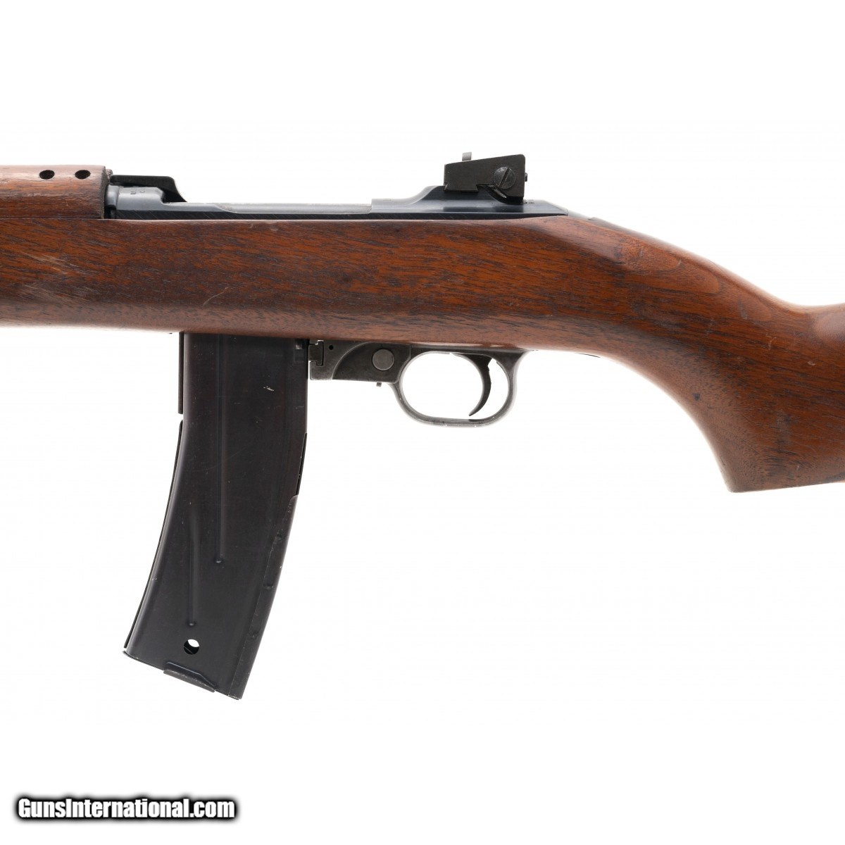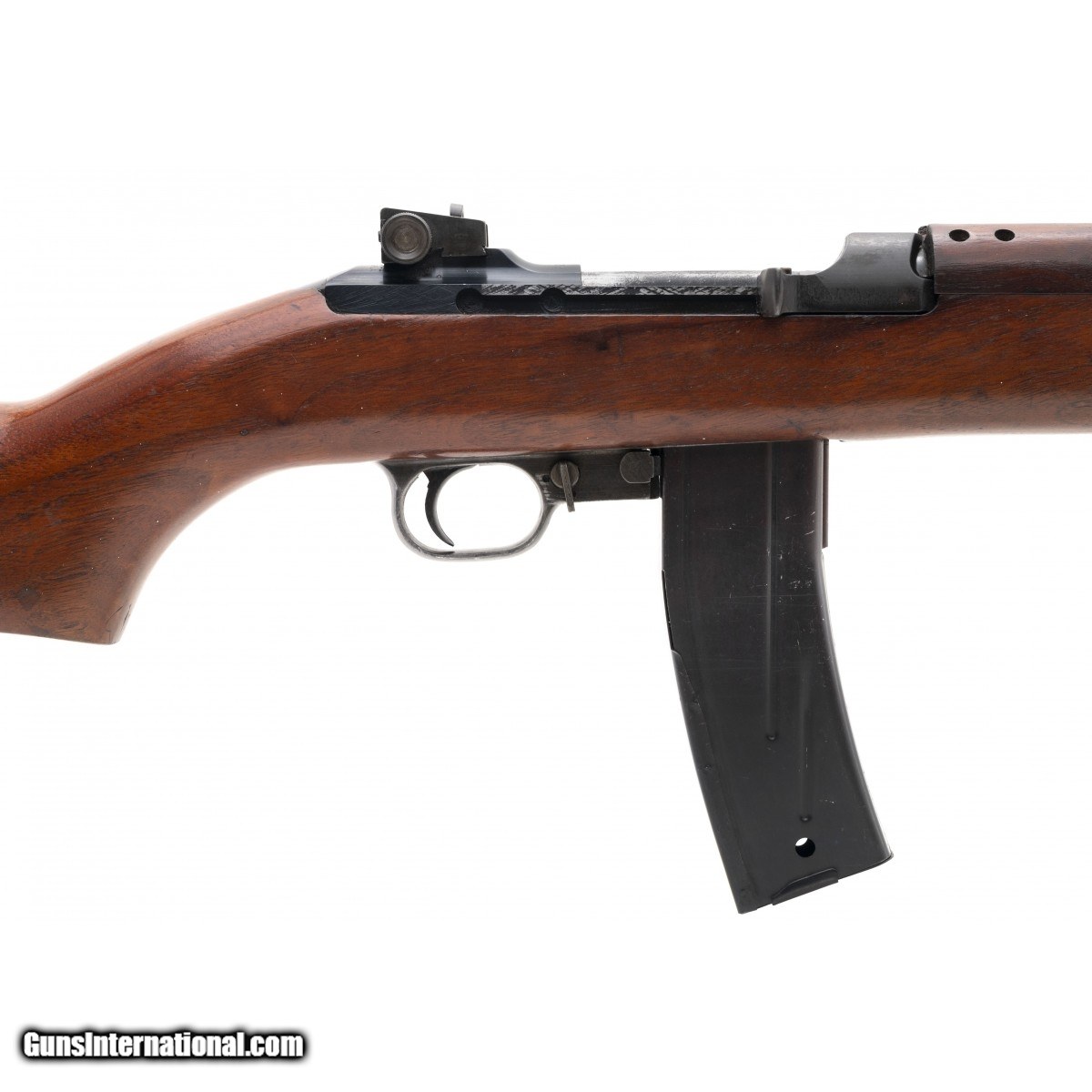 Description: " SN 16322 - Universal M1 Carbine with switch safety, Type 3 bayonet lug barrel band, & milled adjustable rear sight assembly. Comes with one 30-round magazine. Overall very good condition with an excellent bore. SOLD Curio/Relic: Yes |