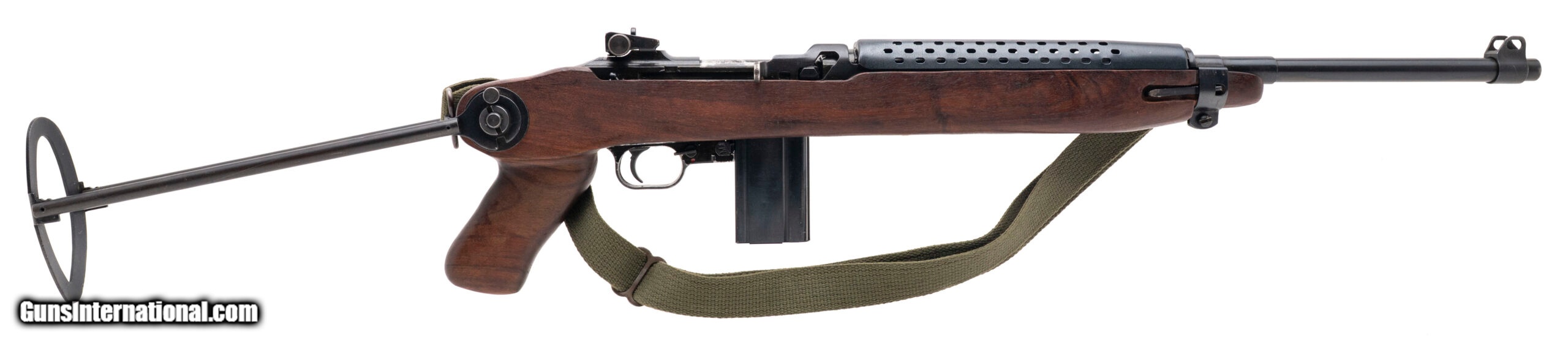 Description: "Serial No. 314230, circa 1980’s, .30 carbine, 18" round barrel. Bore is bright and shiny with strong rifling noted. Carbine has the folding paratrooper stock and is in very good condition overall. Action is smooth and functions correctly. SOLD |