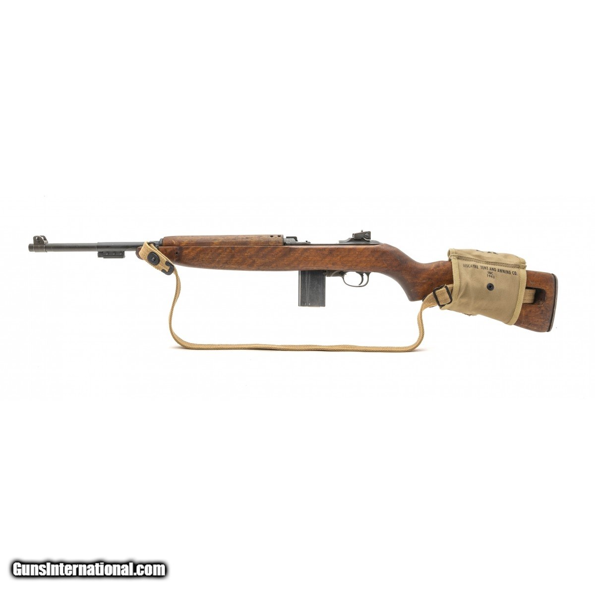Description: " WWII U.S. military carbine manufactured by Winchester in 1944. The bore is excellent, shiny with strong rifling. This carbine was arsenal refurbished for Korea. The barrel is marked Underwood with a bursting bomb. The stock has been replaced. Overall very good plus condition. Comes with sling, two magazines, oiler and magazine pouch. SOLD Curio/Relic: Yes |